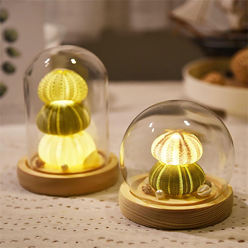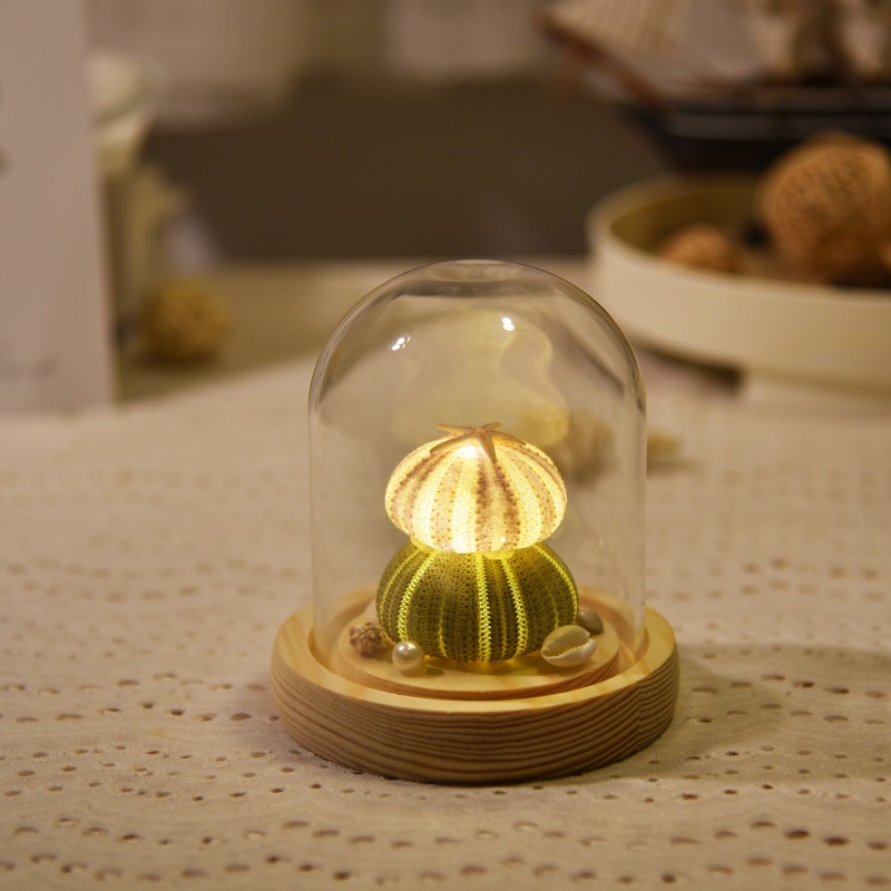手工diy发光海胆小夜灯玻璃罩贝壳手作灯罩创意七夕礼物送女友
