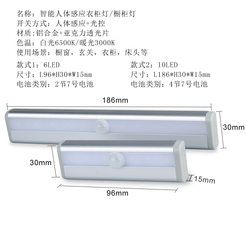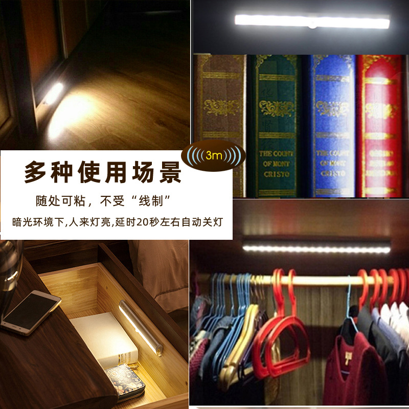 led智能人体感应灯条电池感应小夜灯充电红外感应磁吸橱柜衣柜灯