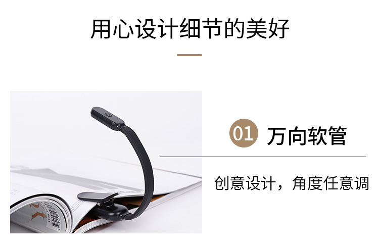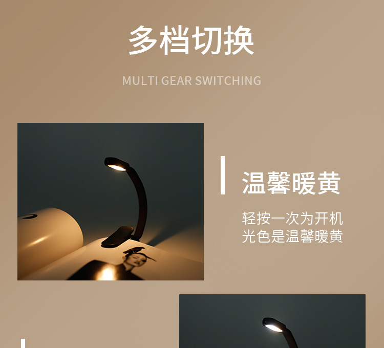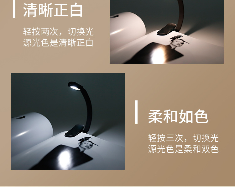厂家供货 LED无极调光折叠迷你护眼阅读夹子灯 USB充电干电池台灯