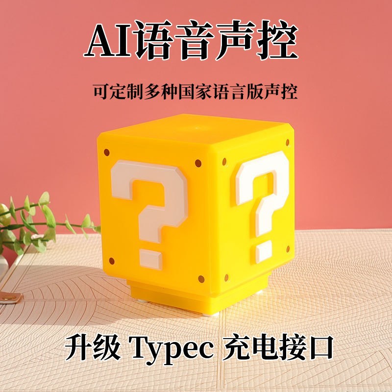 创意礼品超级玛丽问号灯发声充电款马里奥灯方块砖桌面led小夜灯