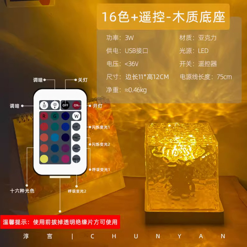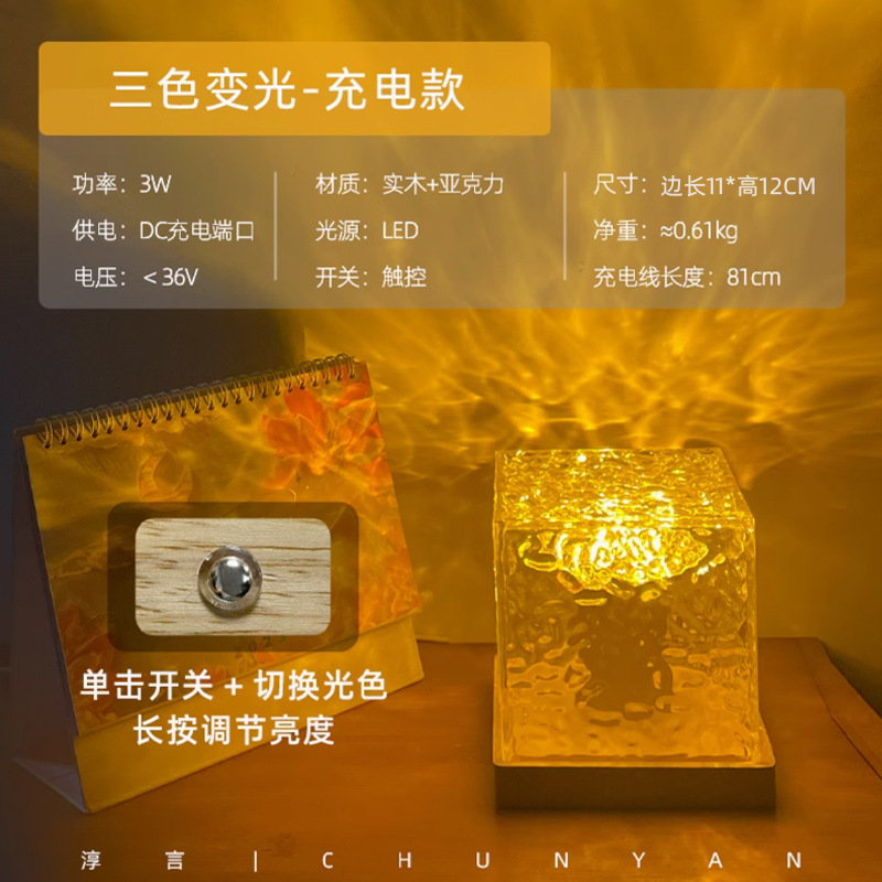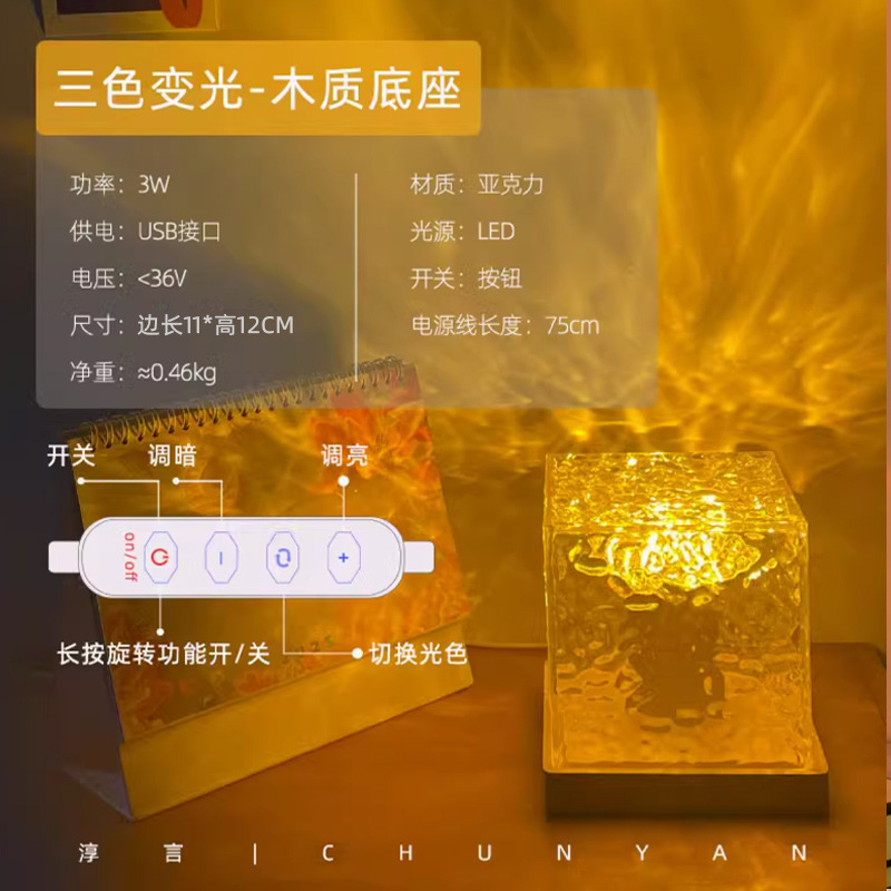 淳言网红旋转水波纹小夜灯创意床头火焰氛围灯浪漫礼物星空投影灯