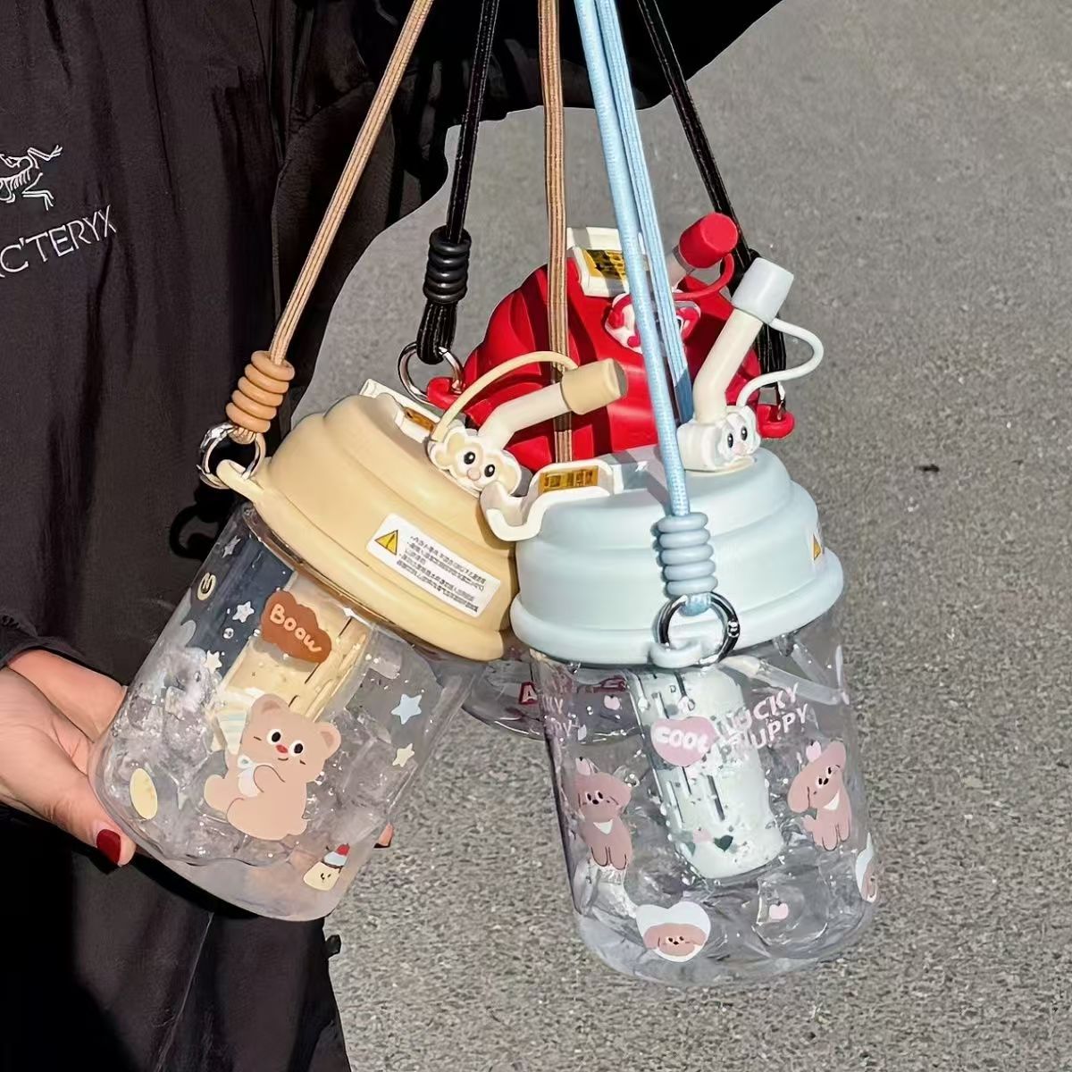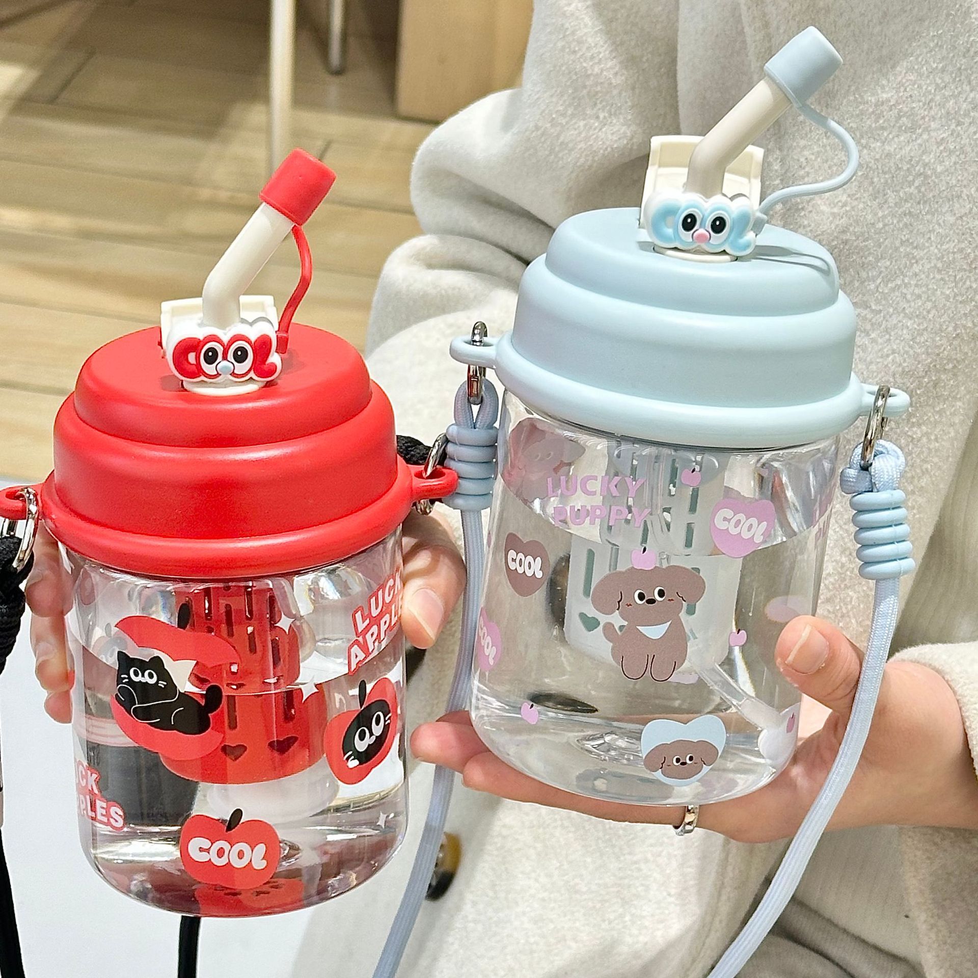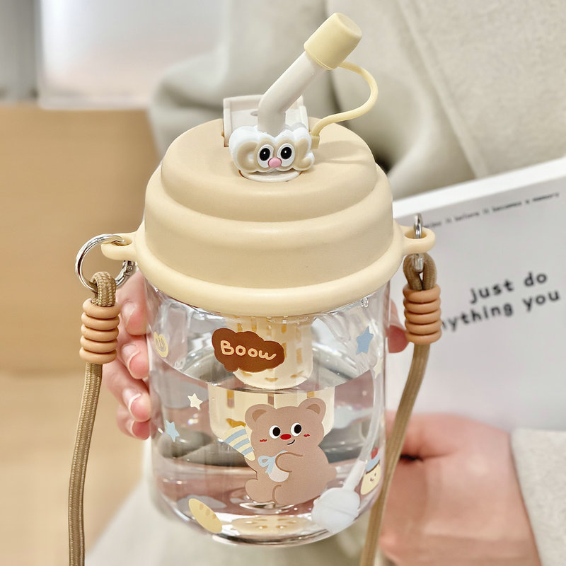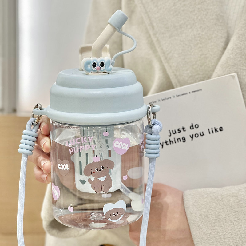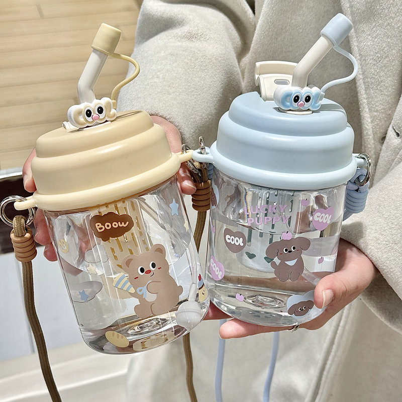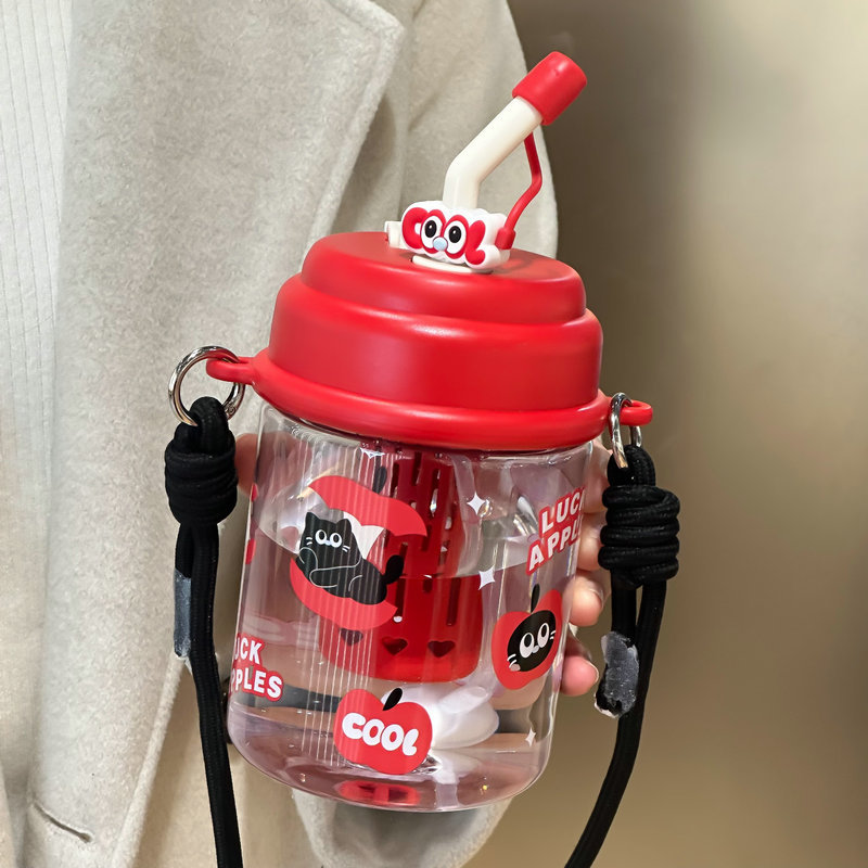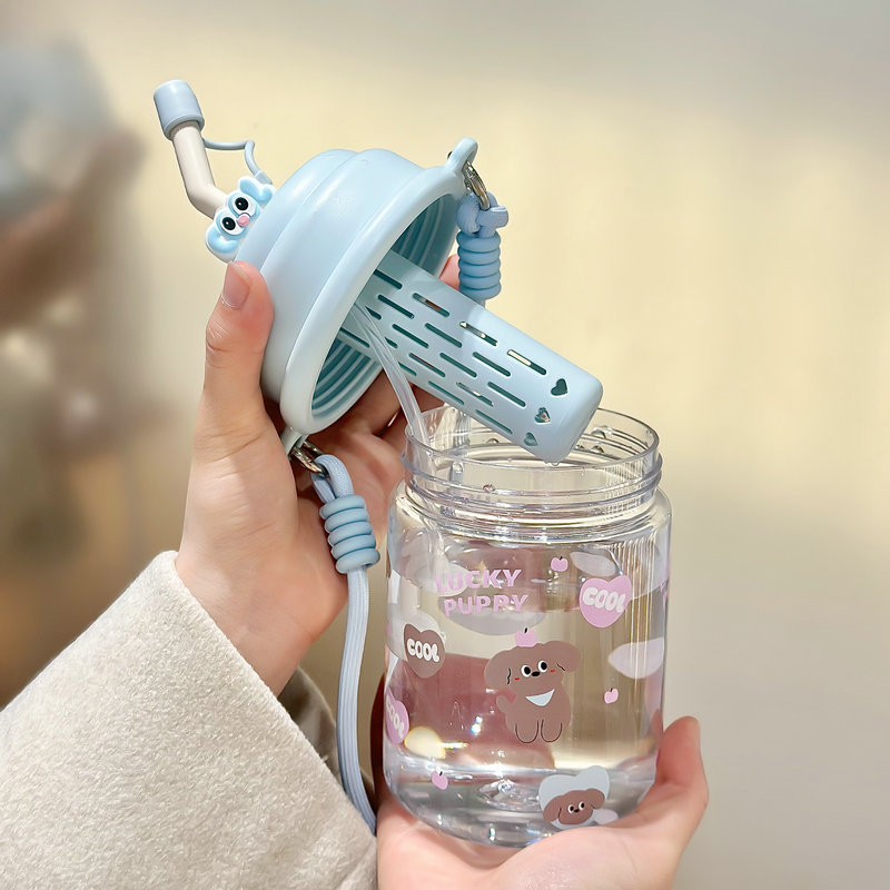 夏季水杯女生大容量ins可爱学生儿饮水杯便携双饮塑料杯童节礼物