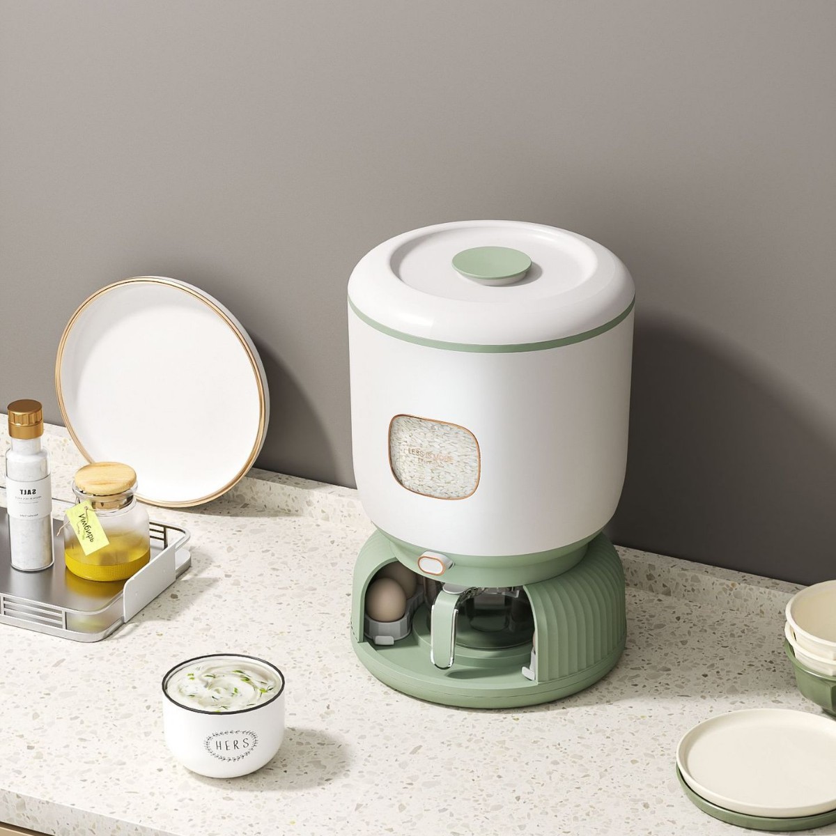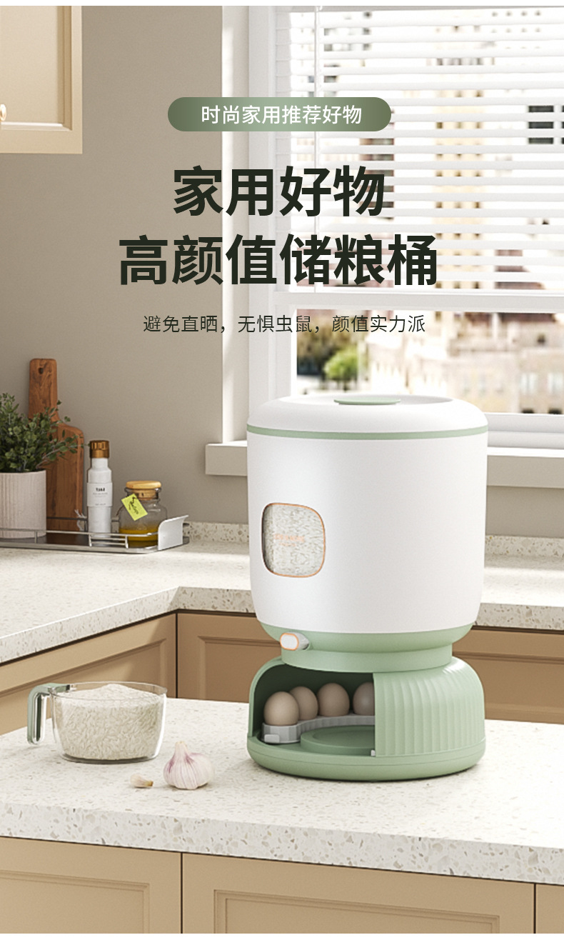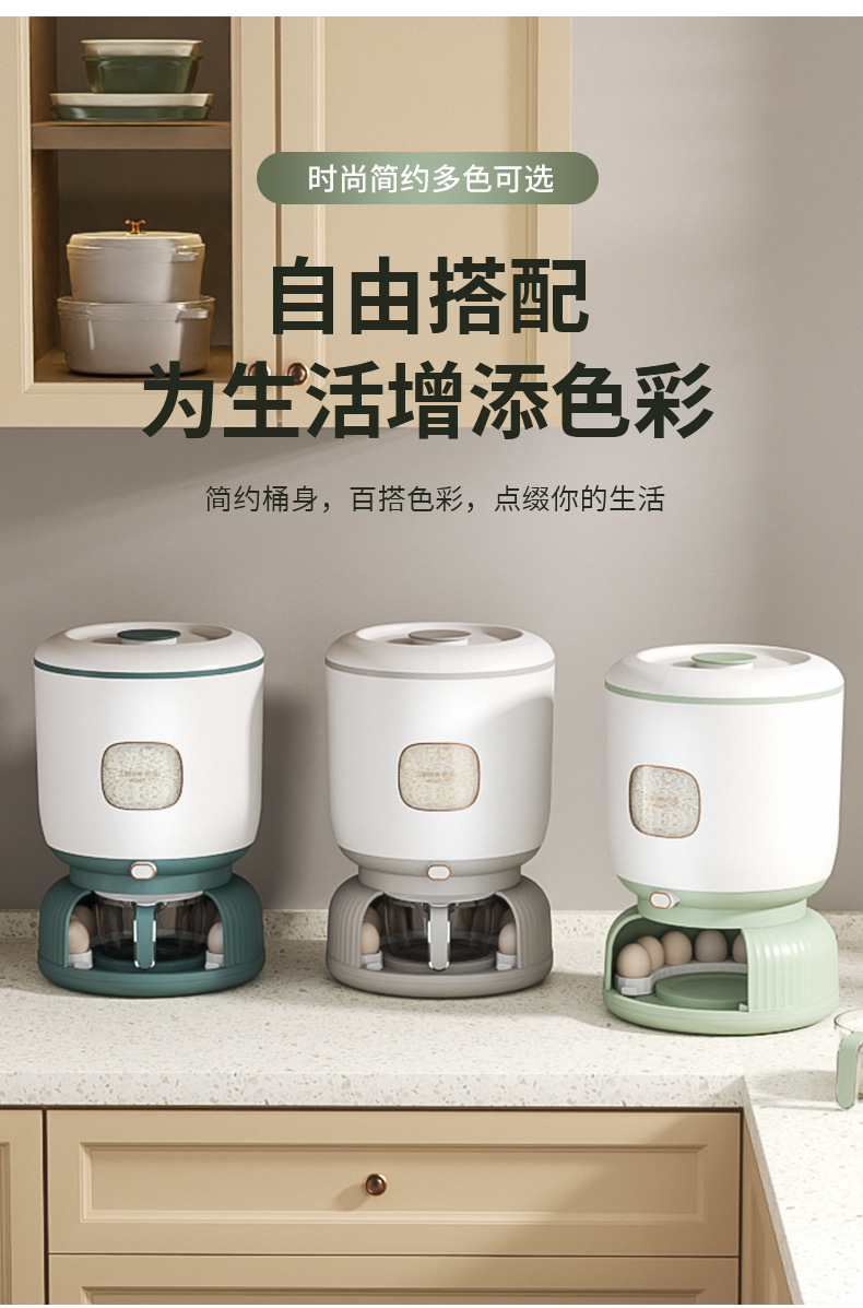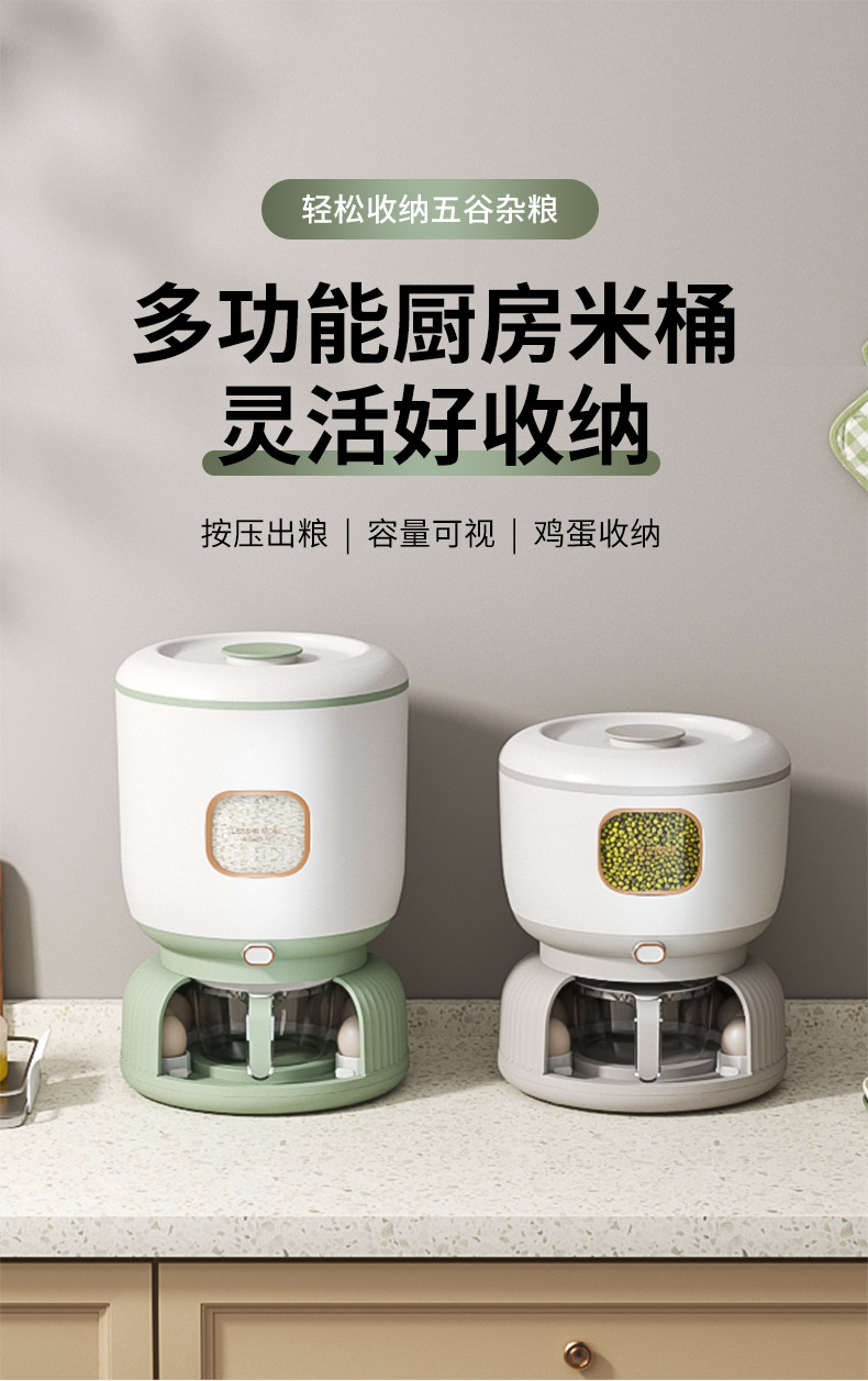 家用轻奢风大容量按压出米防虫防潮米桶杂粮收纳密封鸡蛋盒储存罐