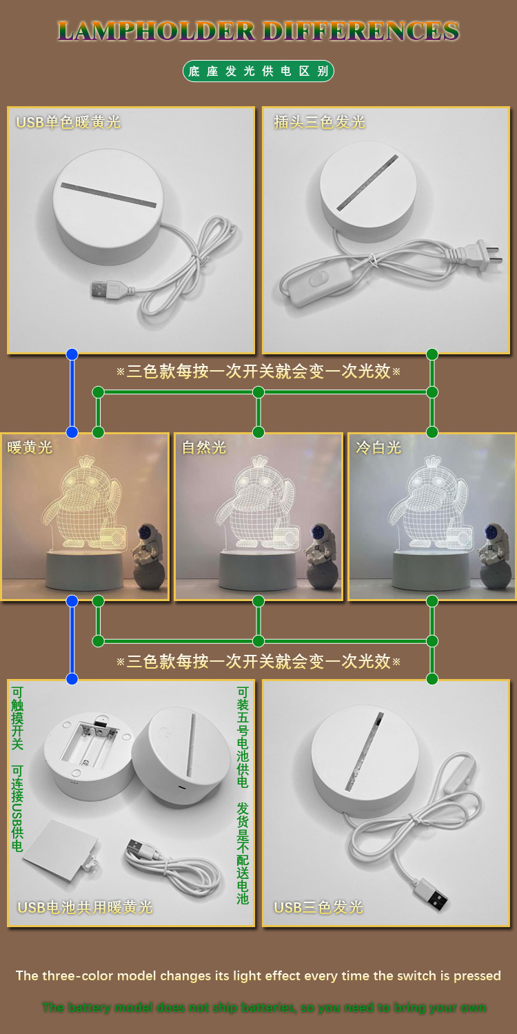 3D小夜灯卧室床头灯亚克力台灯生日礼物创意学生幼儿园儿童小礼品