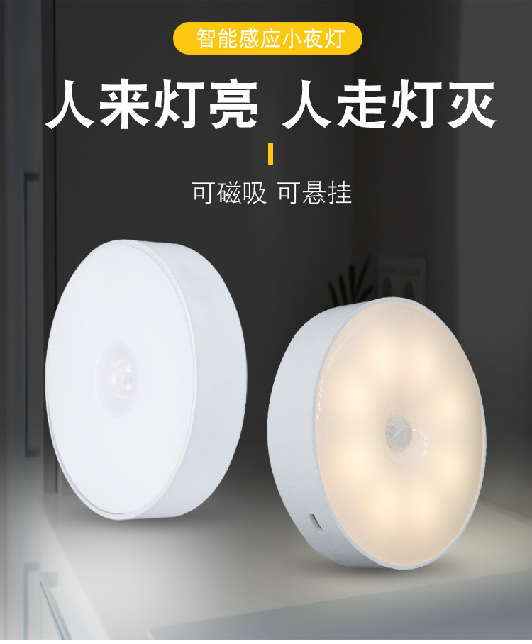 led智能小夜灯床头人体感应楼道充电家用宿舍过道灯无线家居夜灯