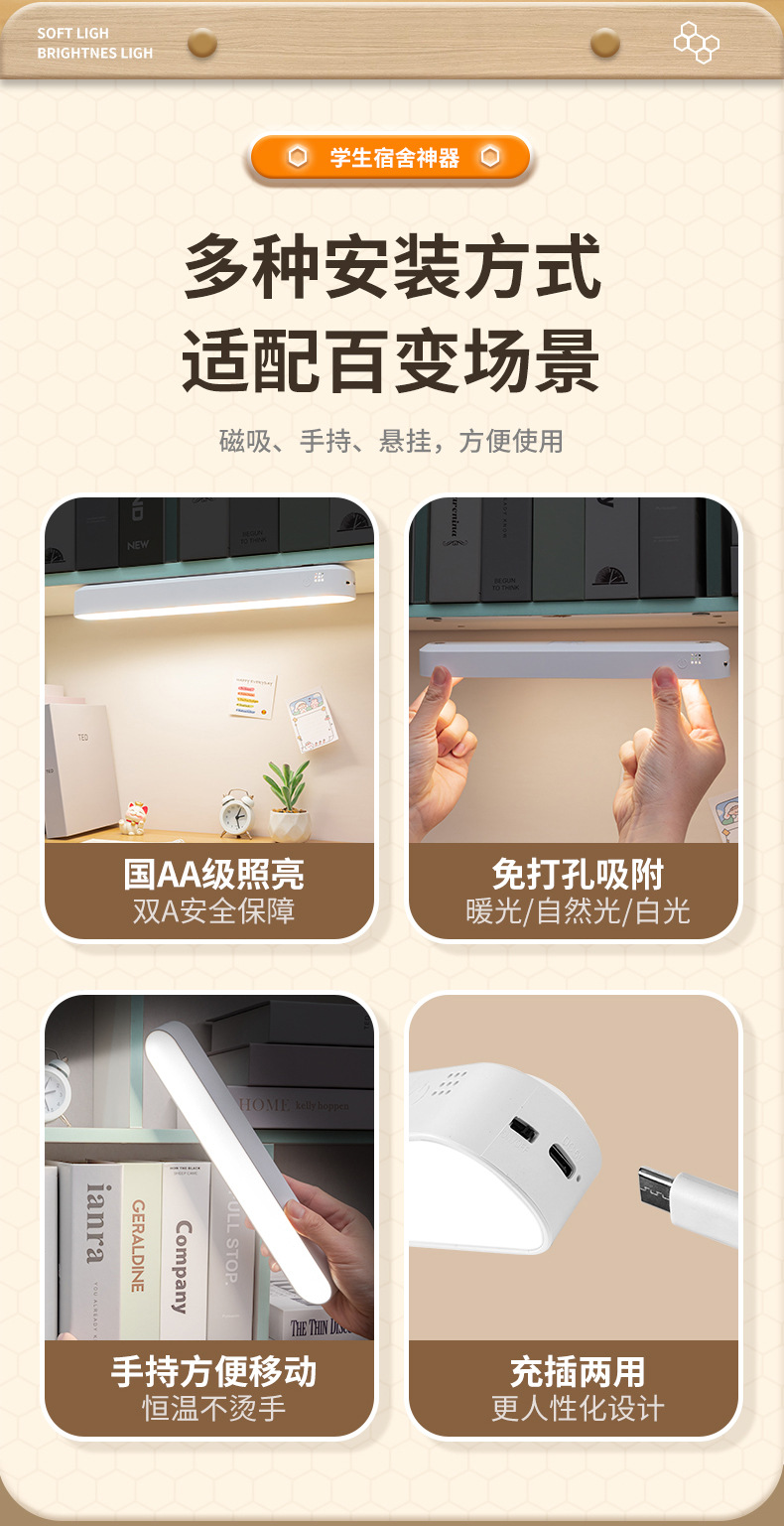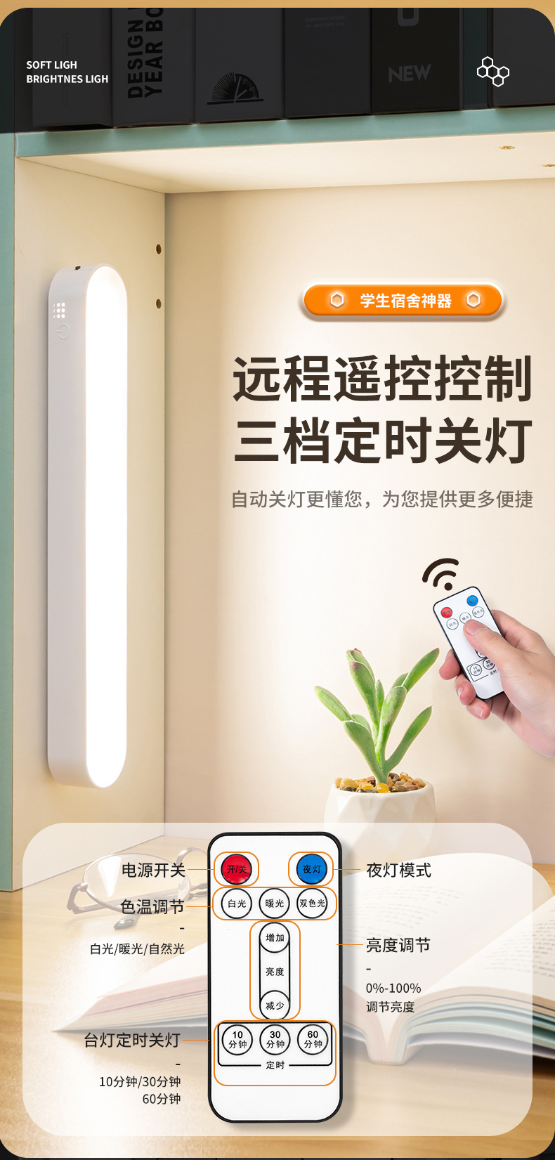 跨境台灯学习护眼LED酷毙灯大学生高中宿舍磁吸灯卧室充电床头灯