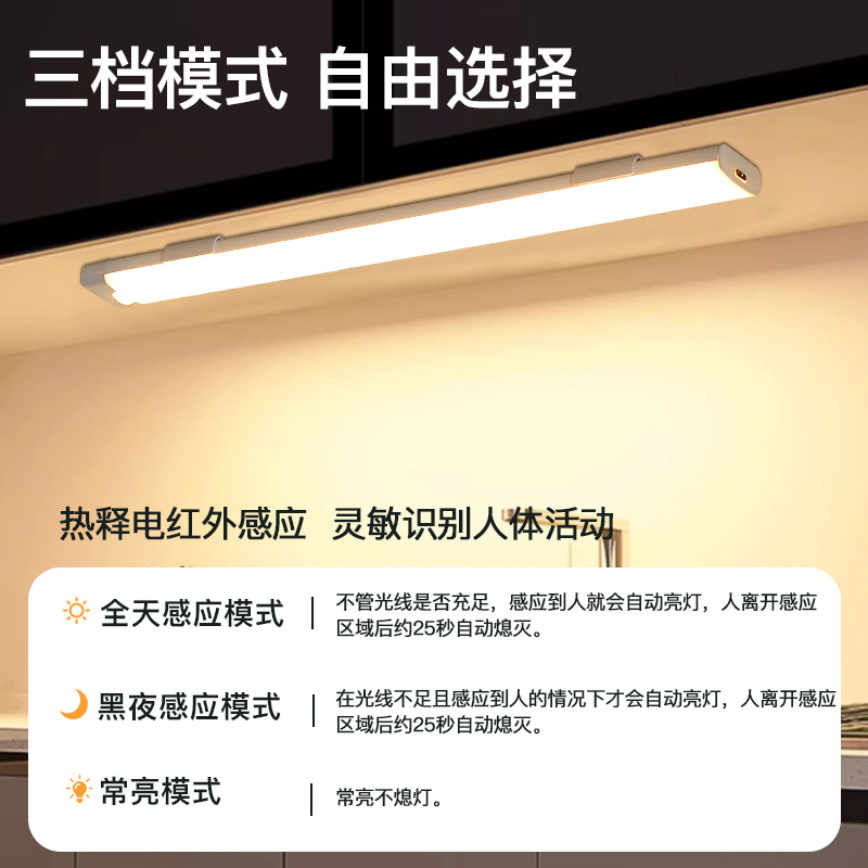 LED长条人体感应灯超薄usb充电智能灯带卫生间玄关橱柜床头小夜灯