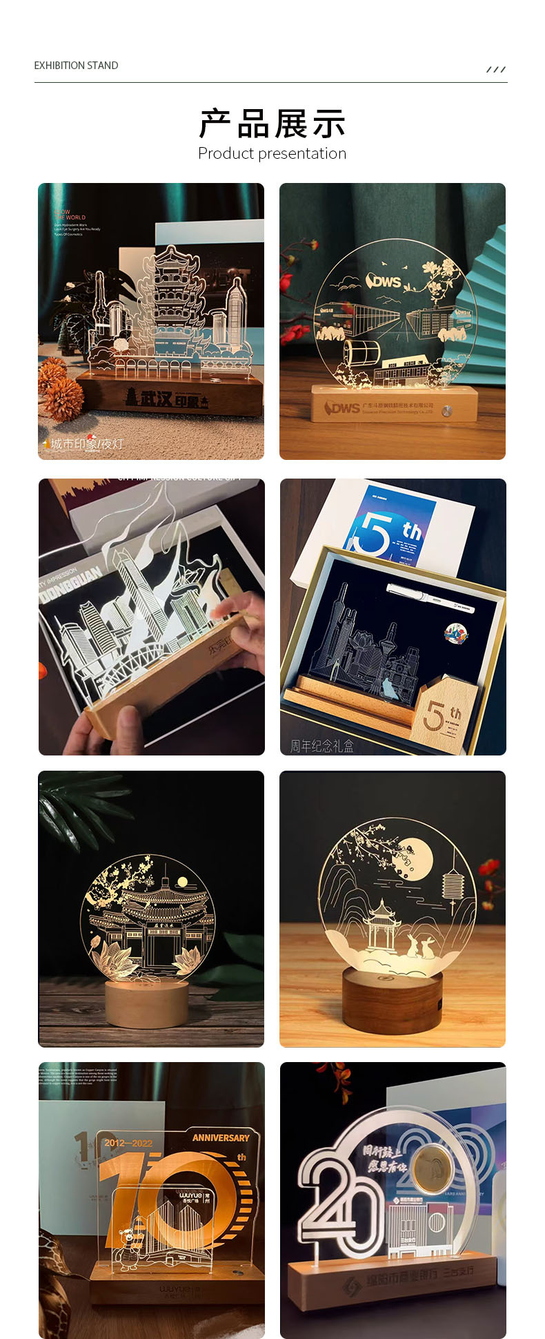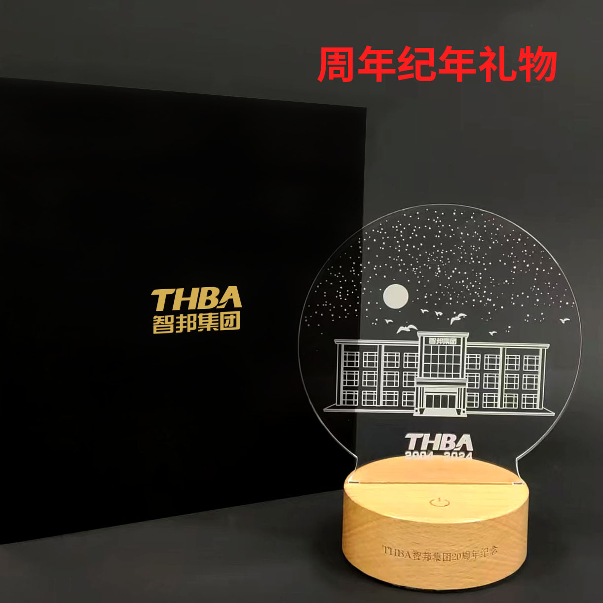 企业周年礼品亚克力小夜灯订做创意3d建筑大楼地标节日纪念台灯