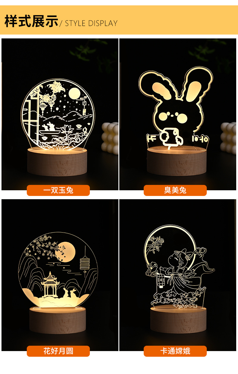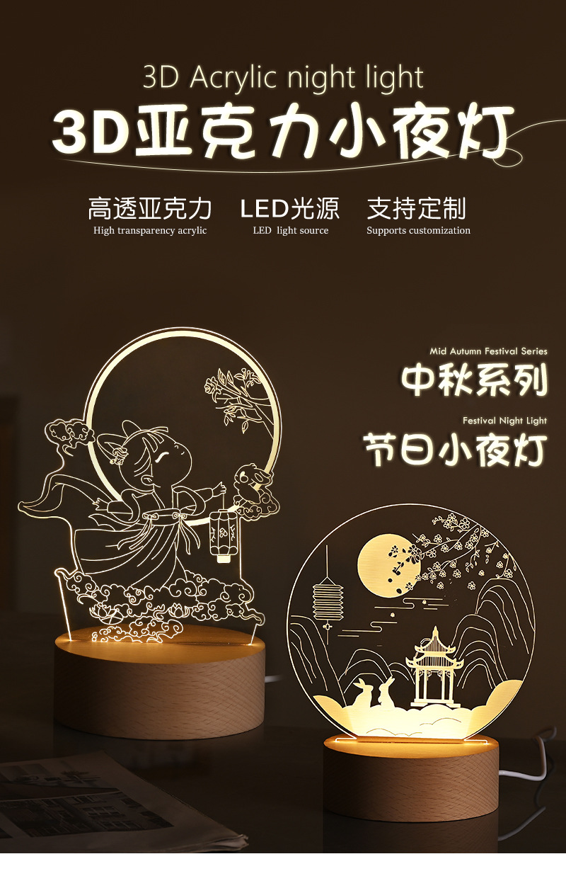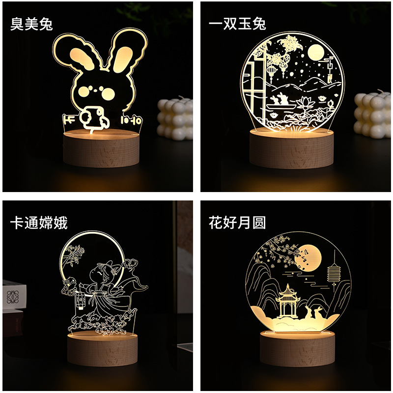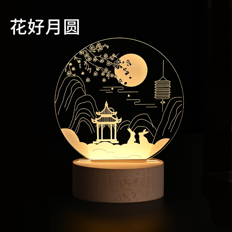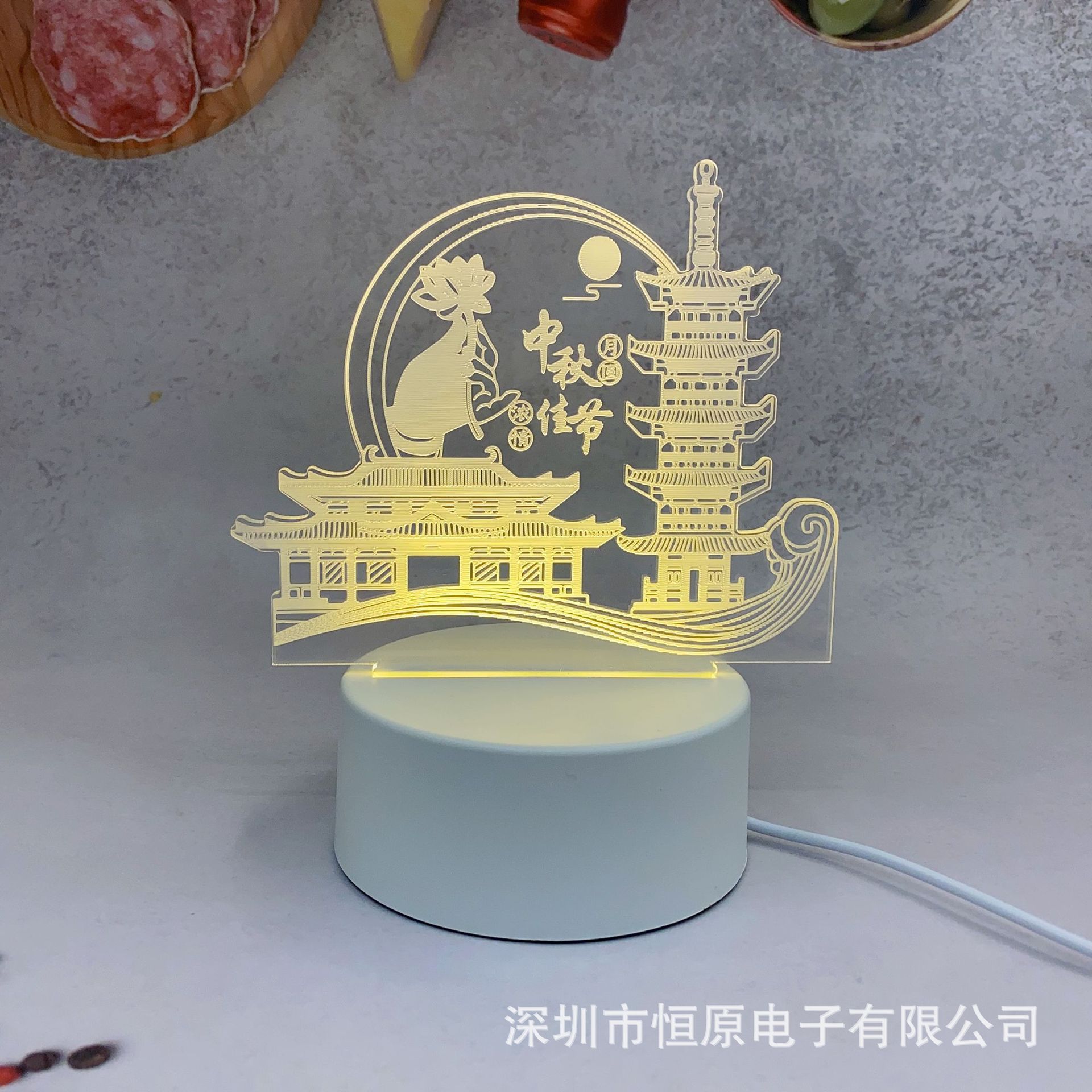 跨境小夜灯中秋节LED触摸遥控3D小夜灯亚克力摆件床头礼品氛围灯