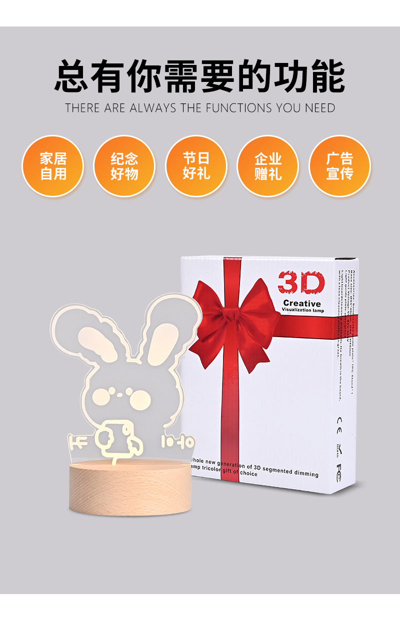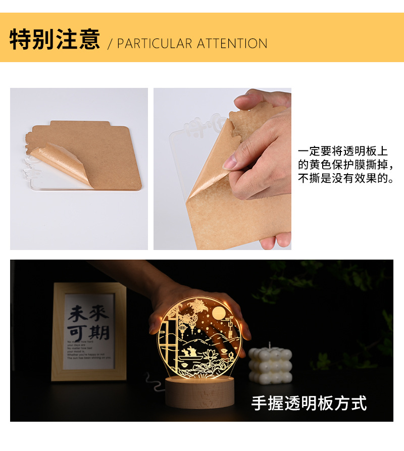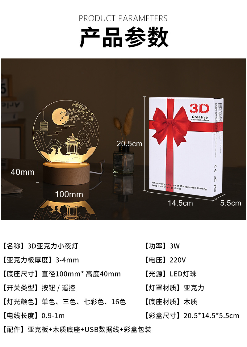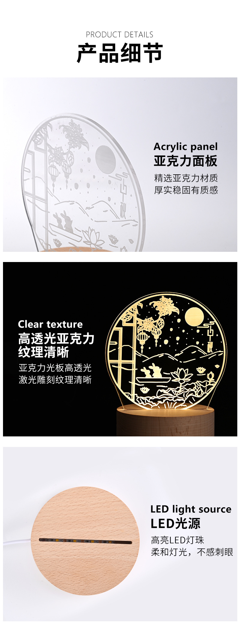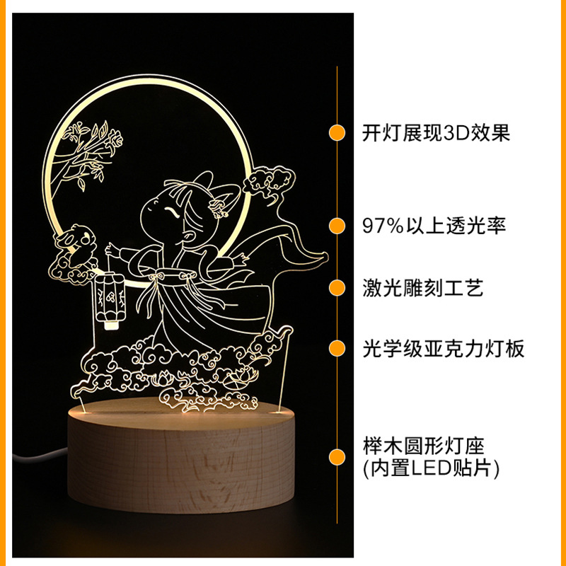 跨境小夜灯中秋节LED触摸遥控3D小夜灯亚克力摆件床头礼品氛围灯