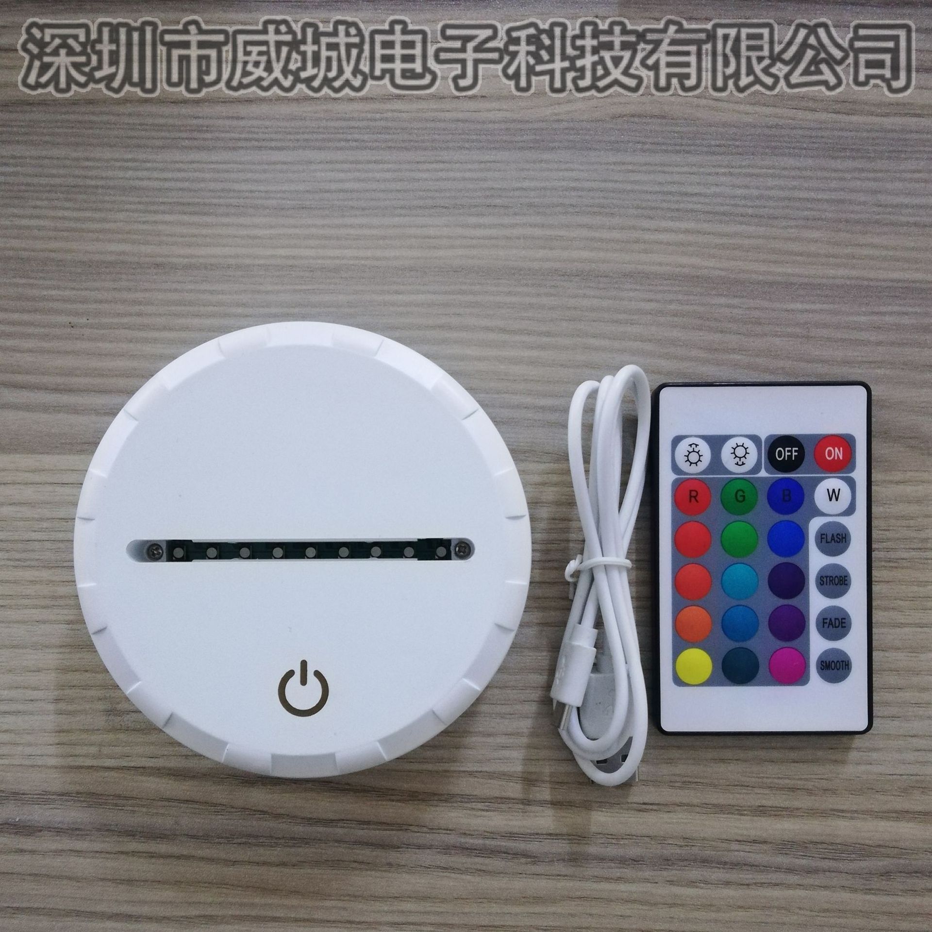 扁款3D小夜灯遥控底座创意发光摆件氛围台七彩充电LED触摸灯底