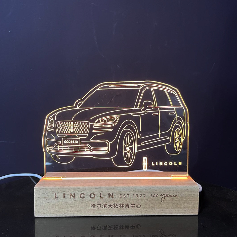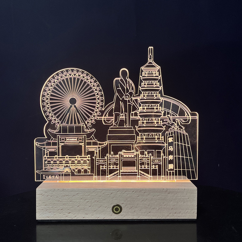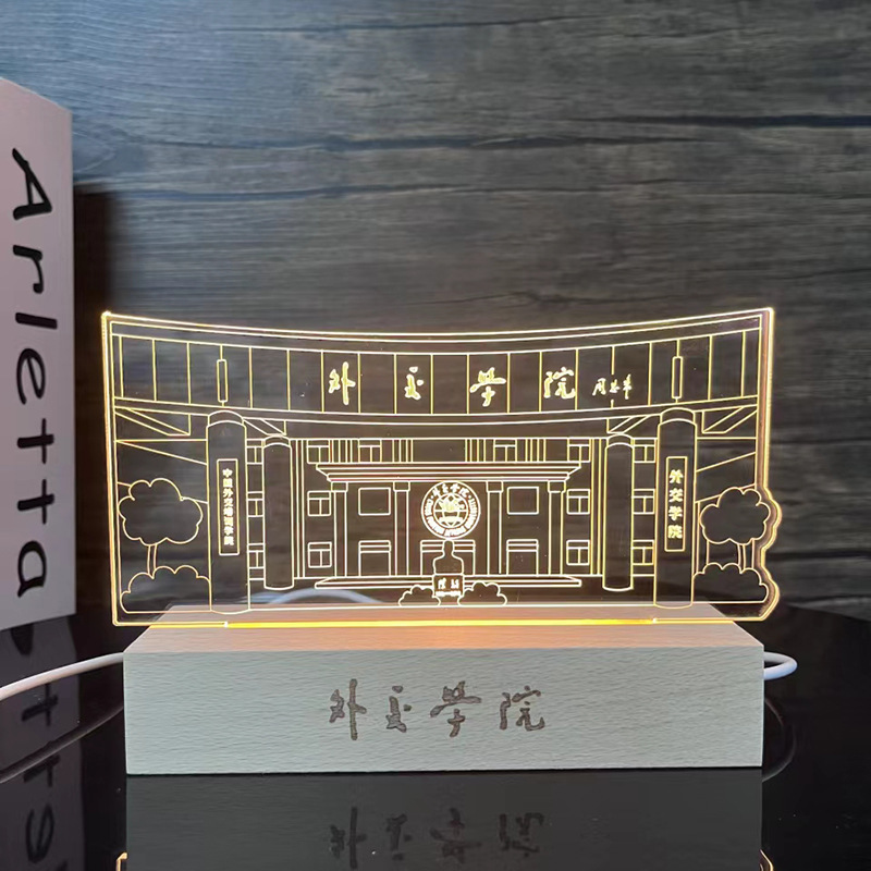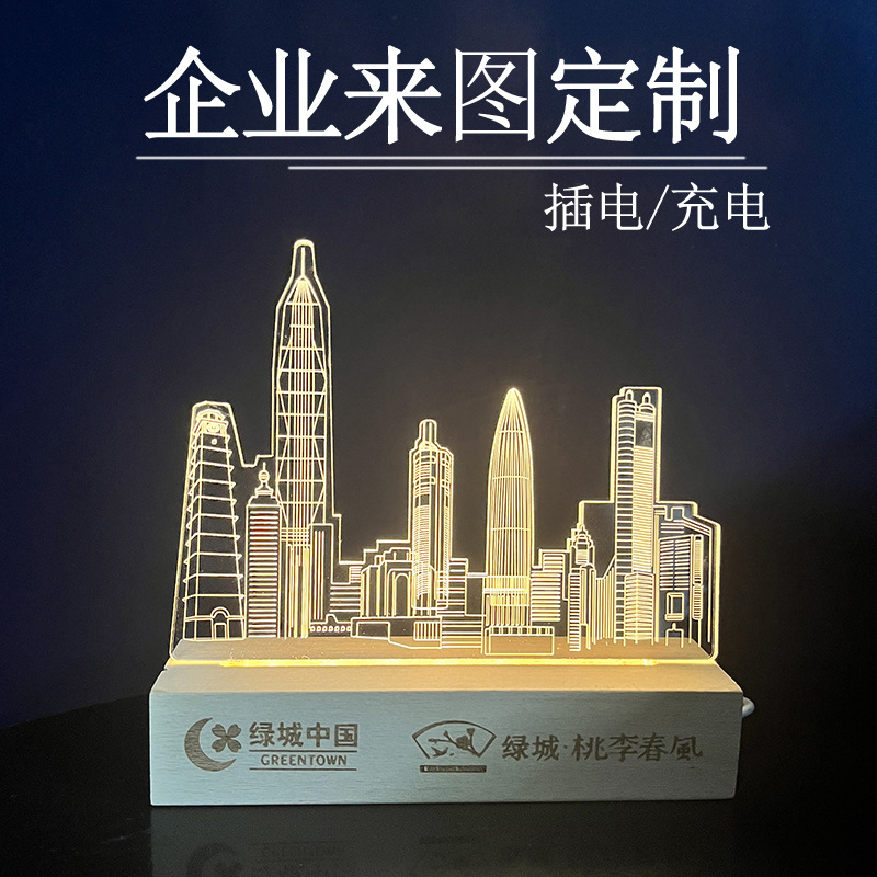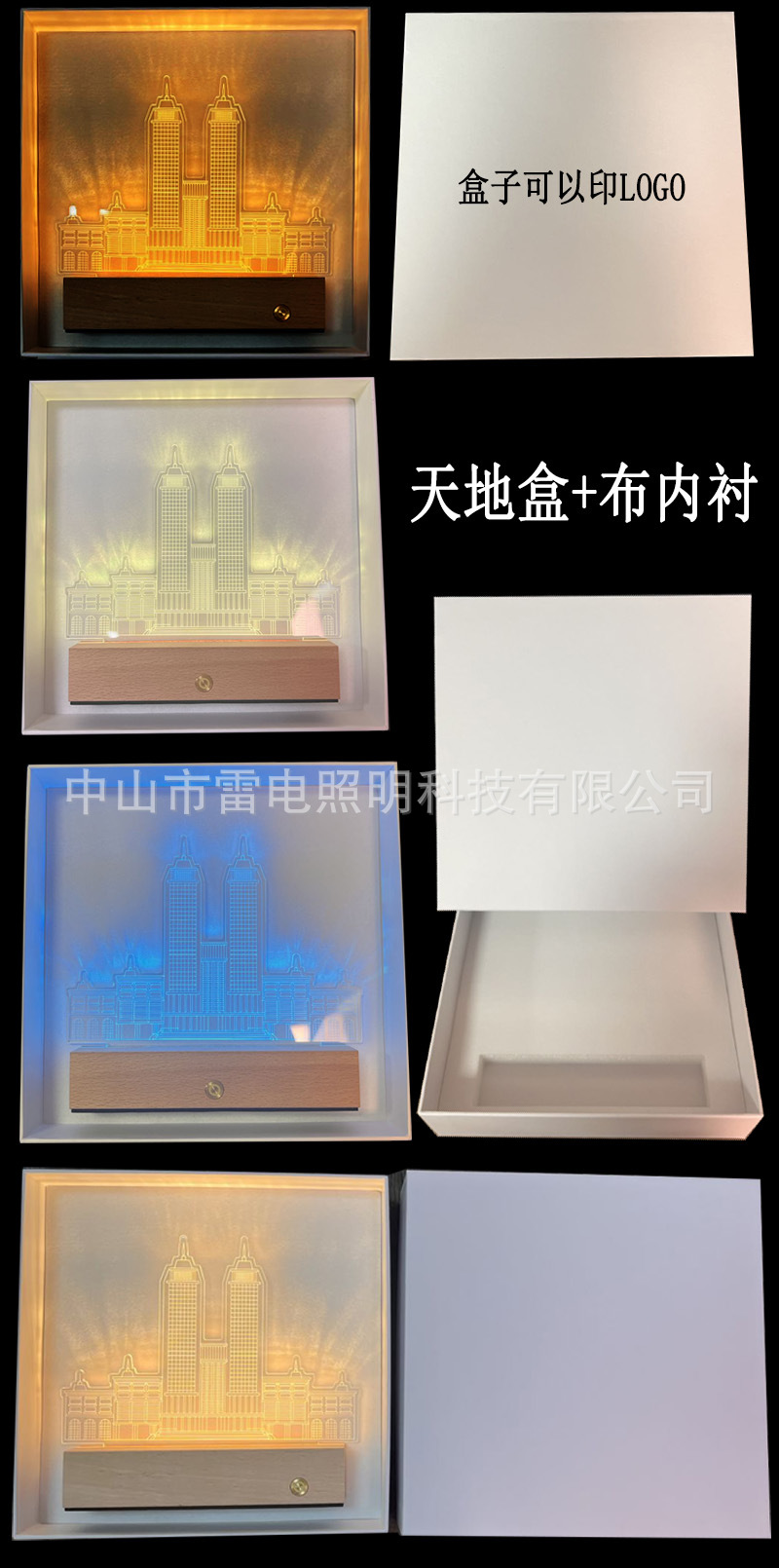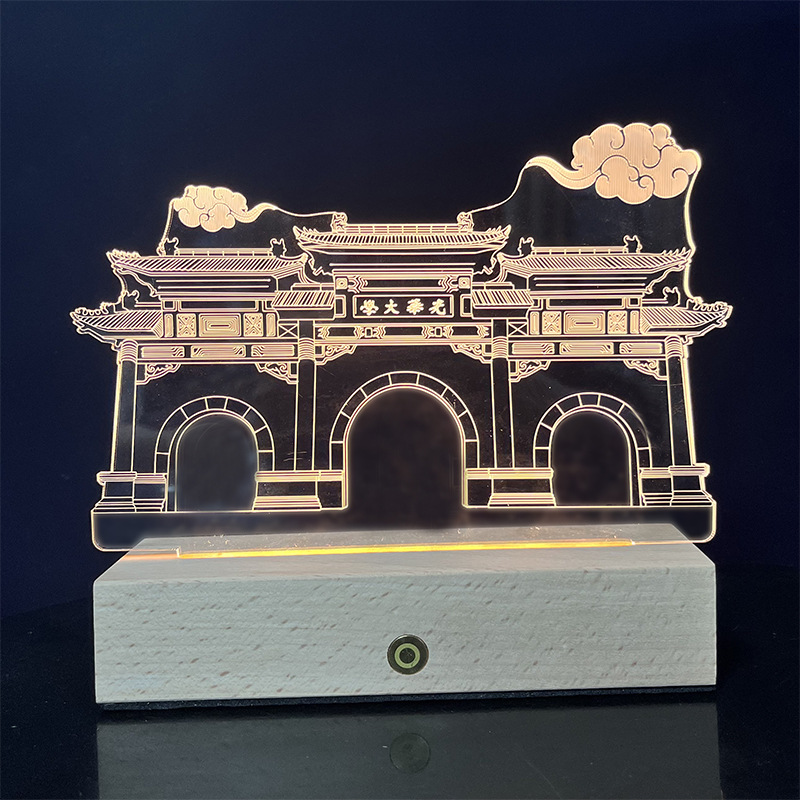 榉木3d小夜灯USB亚克力小台灯企业建筑物 学校纪念LOGO礼品led灯