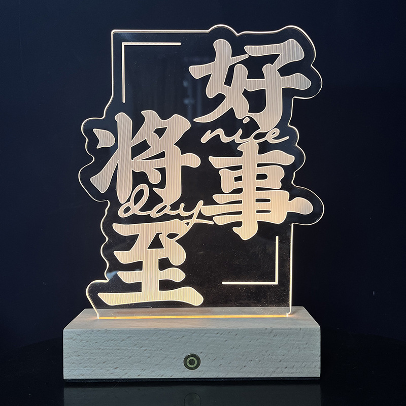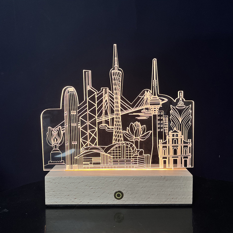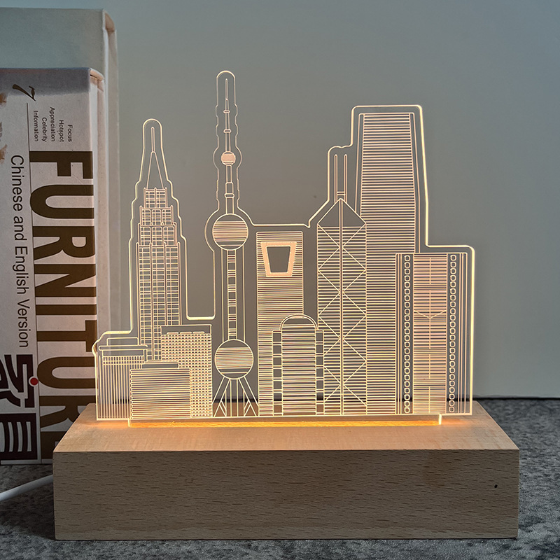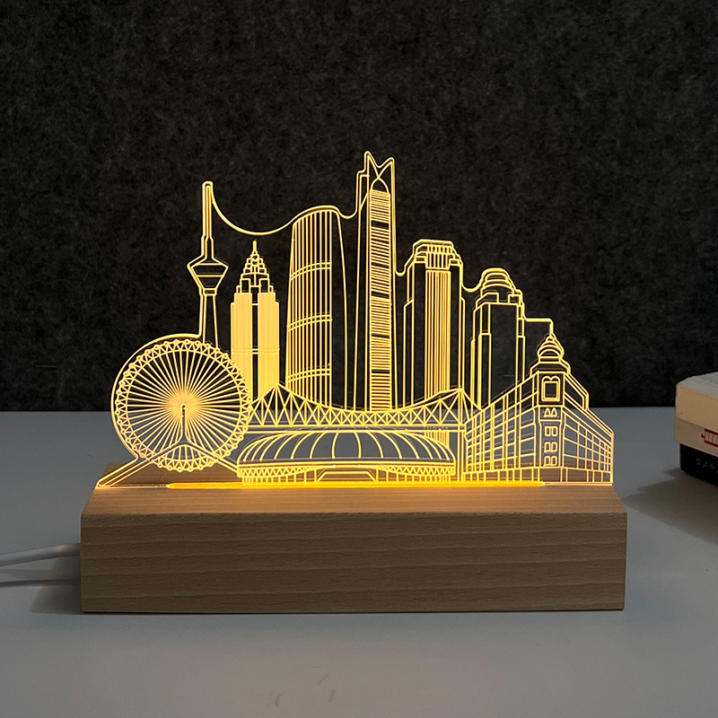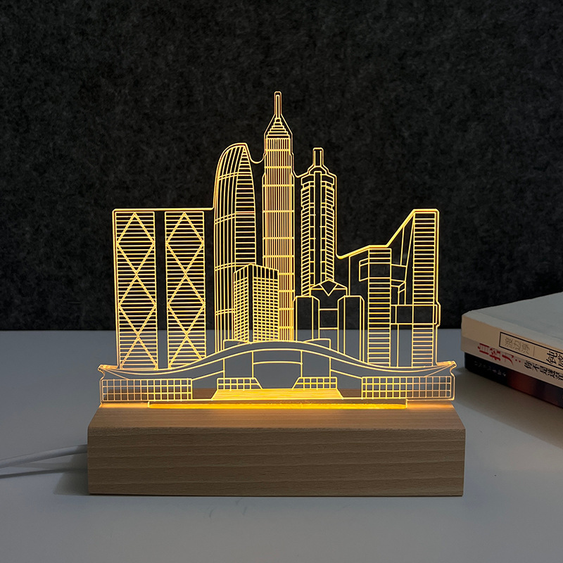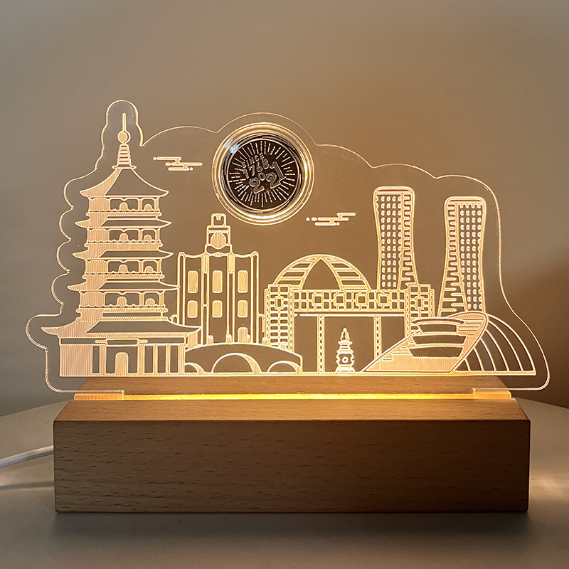 榉木3d小夜灯USB亚克力小台灯企业建筑物 学校纪念LOGO礼品led灯