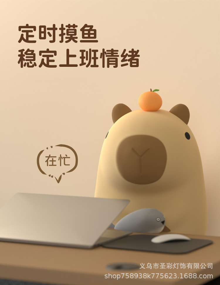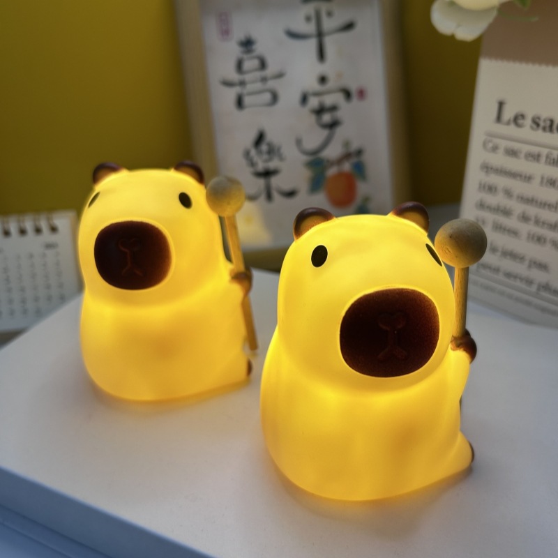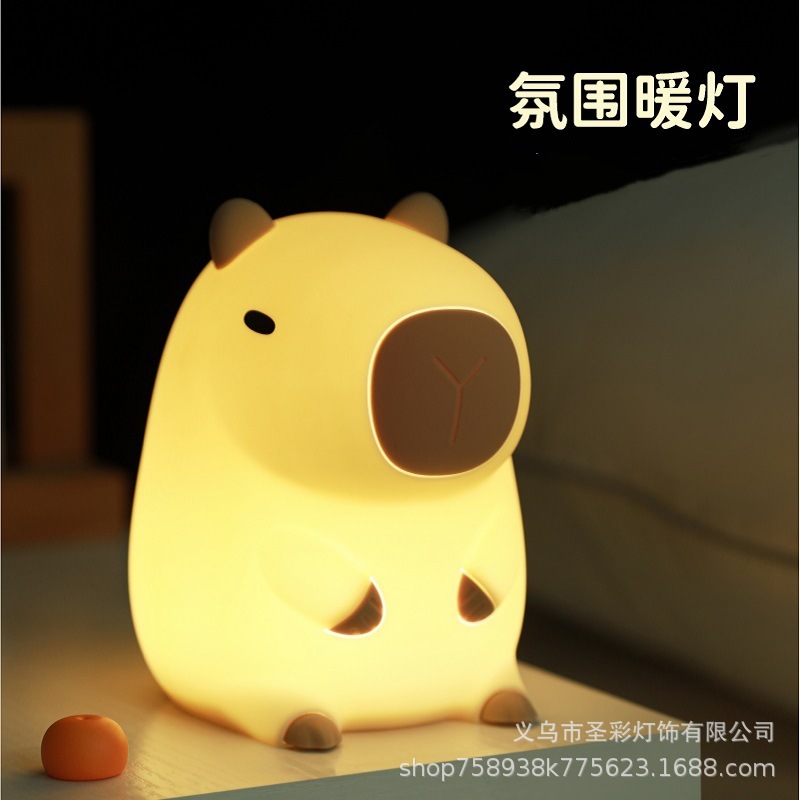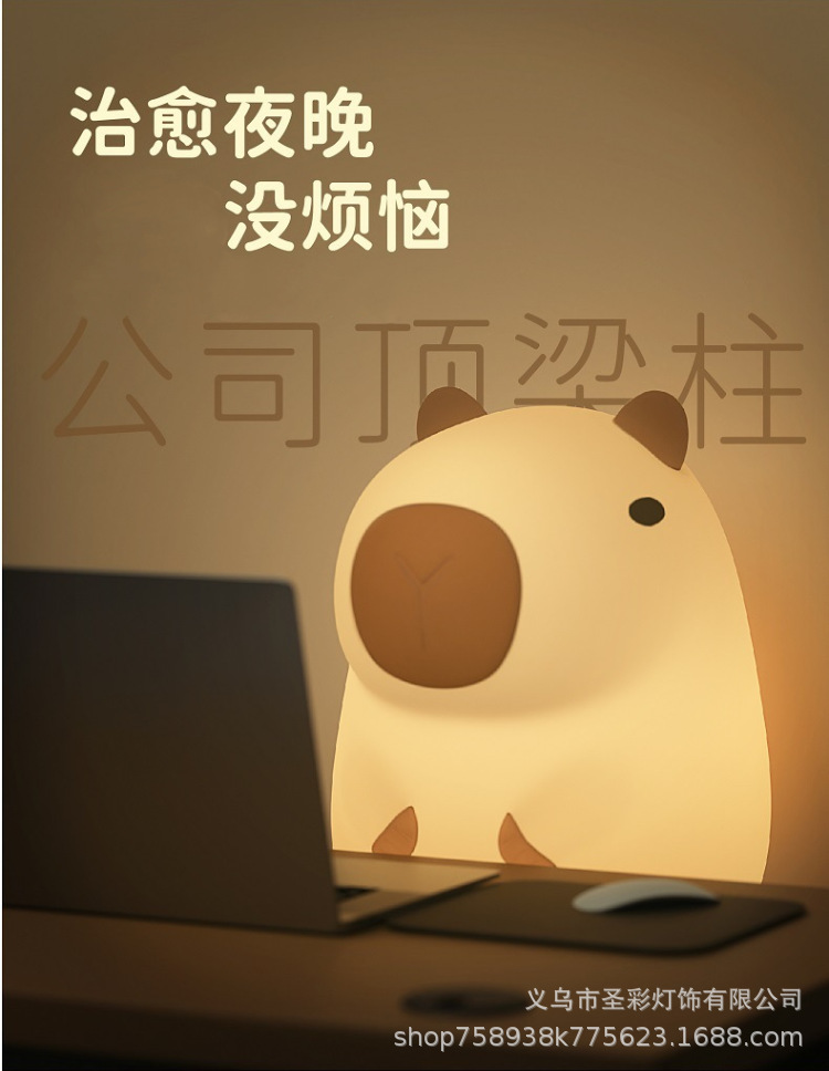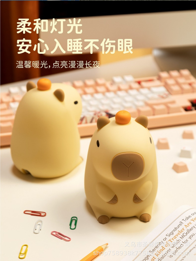 可爱卡皮巴拉小夜灯卡通公仔摆件灯儿童学习氛围灯家长陪伴台灯