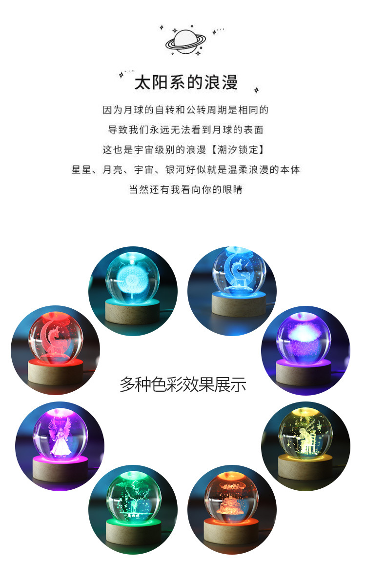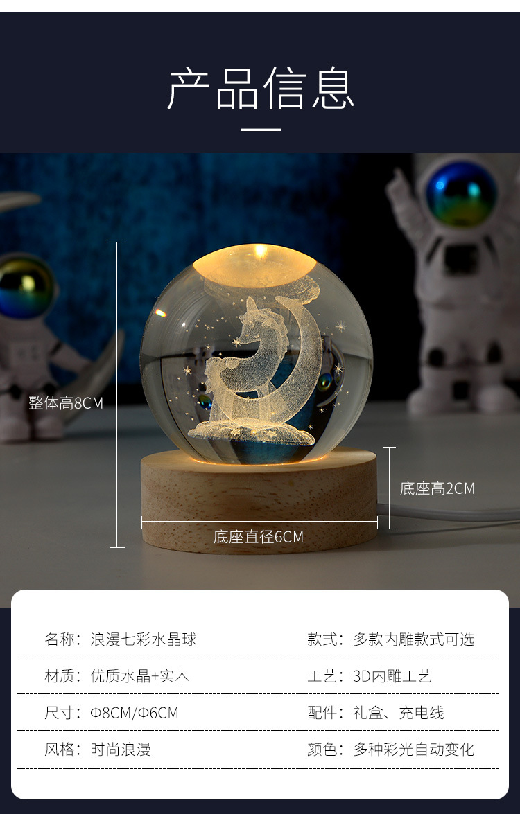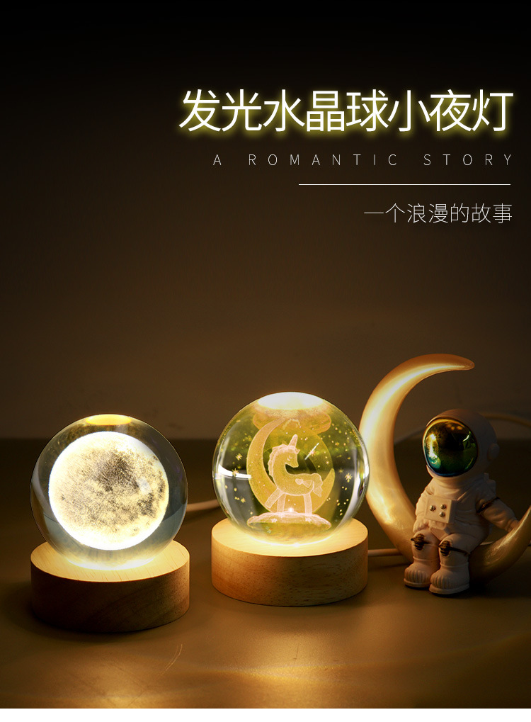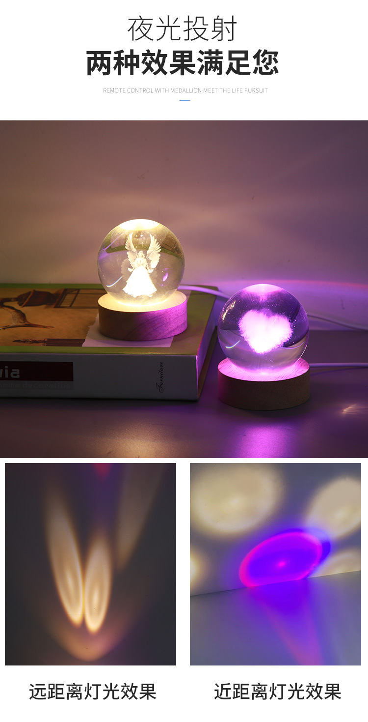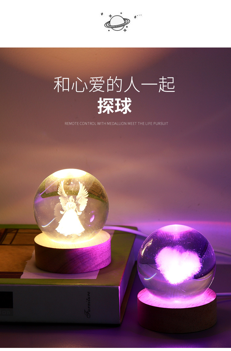 厂家批发水晶球3d小夜灯 usb遥控卧室彩色氛围灯公司logo活动礼品