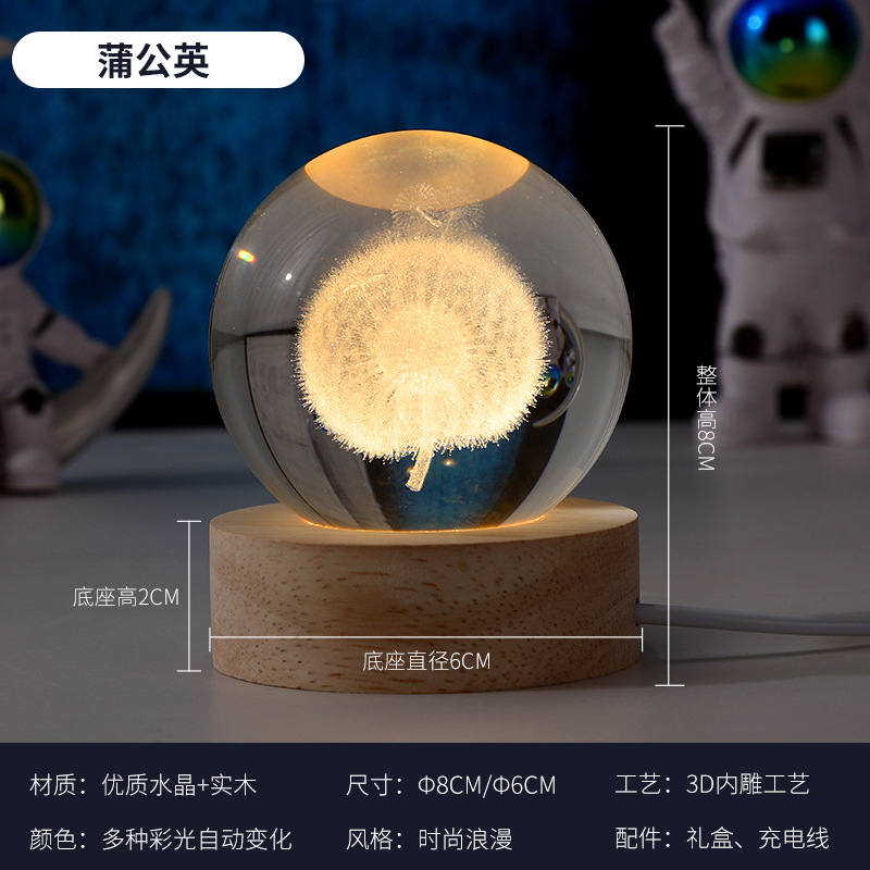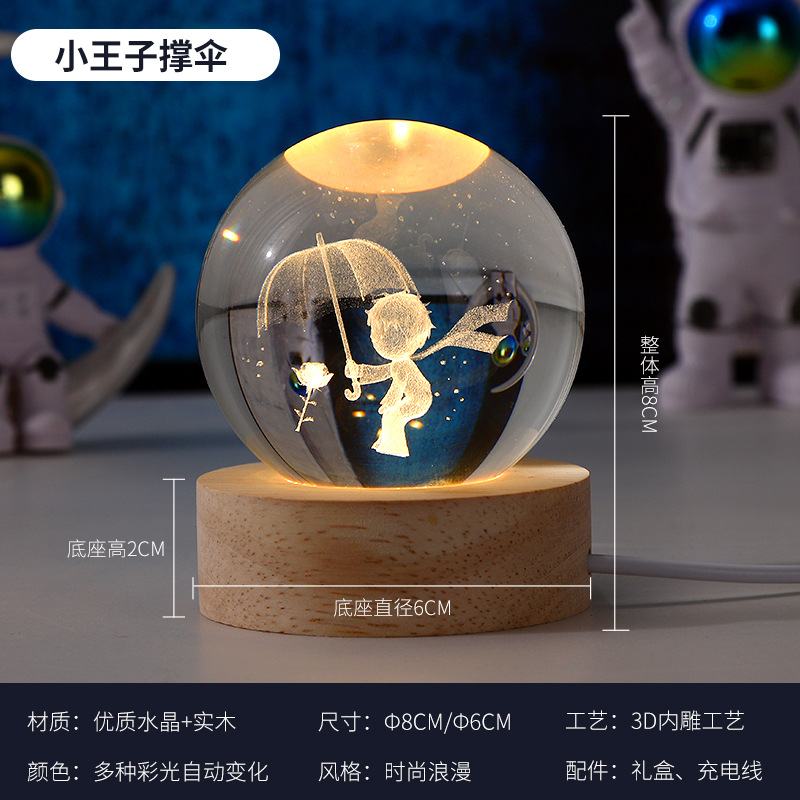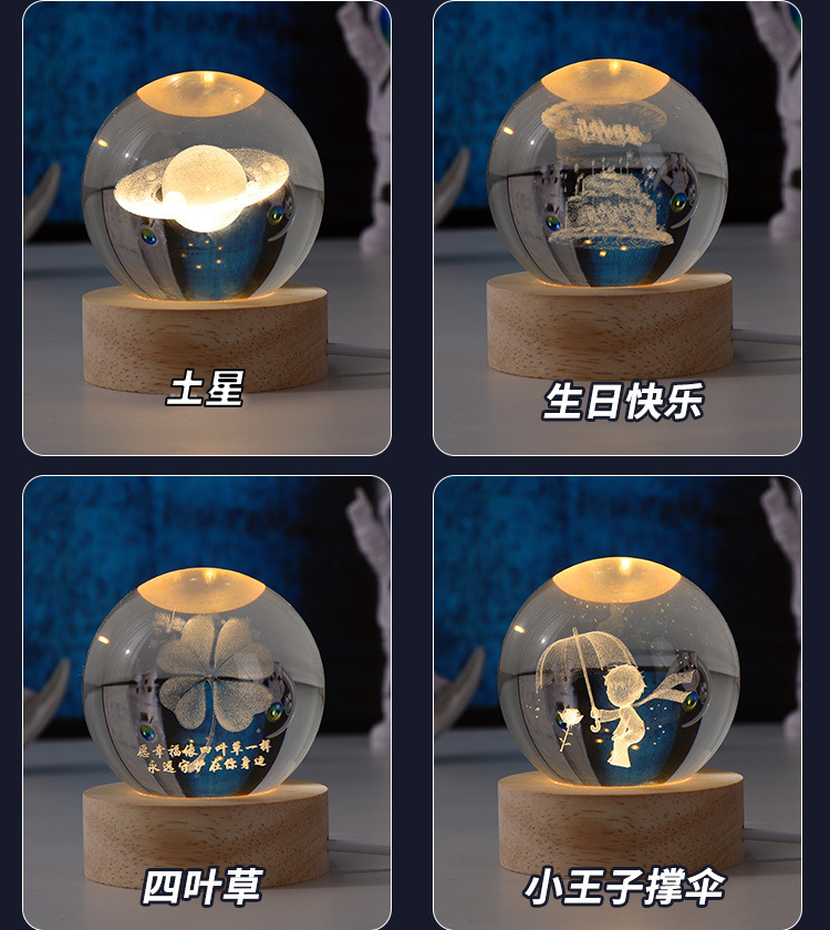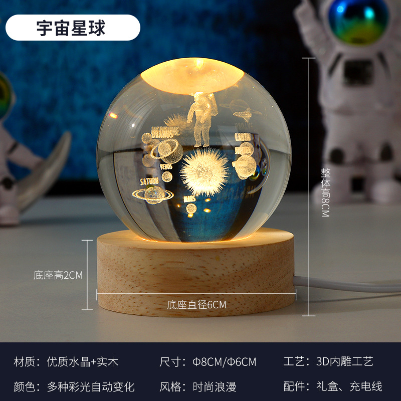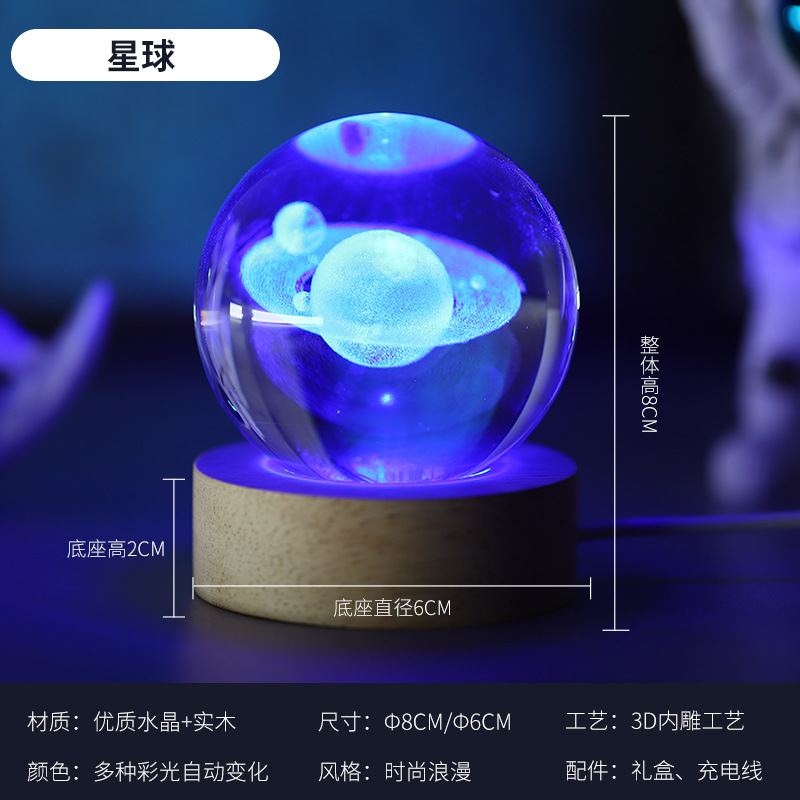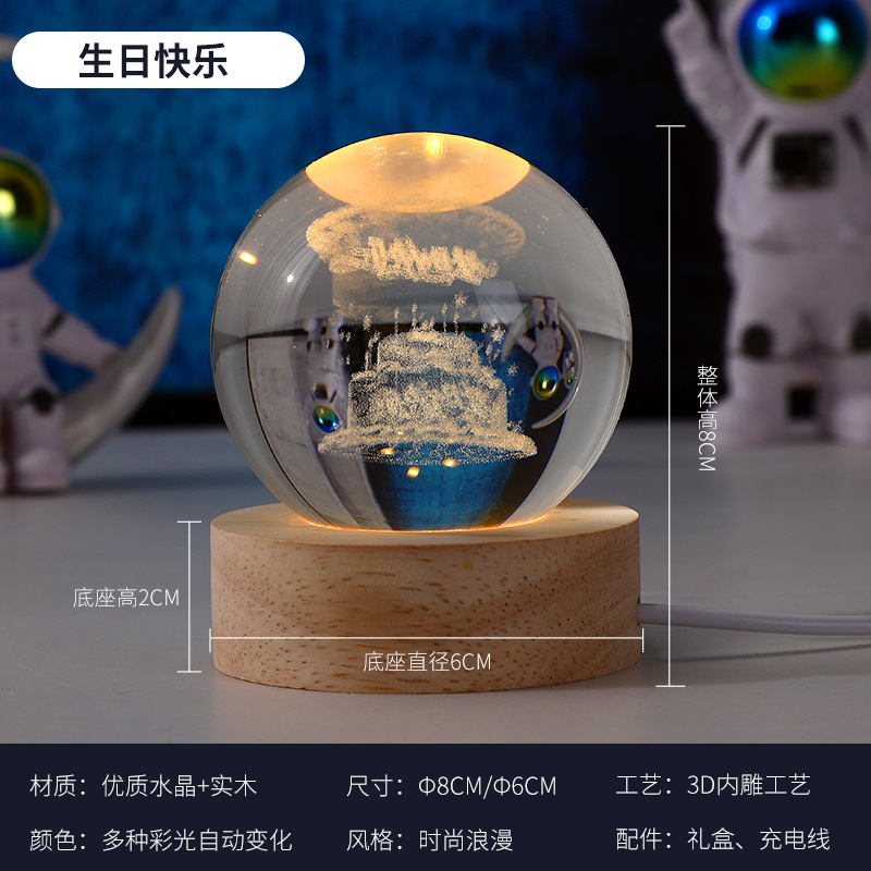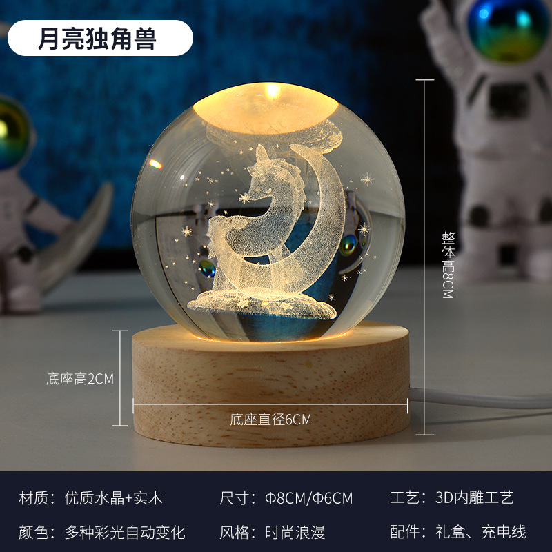 厂家批发水晶球3d小夜灯 usb遥控卧室彩色氛围灯公司logo活动礼品