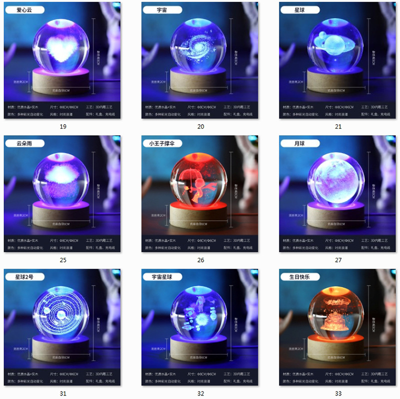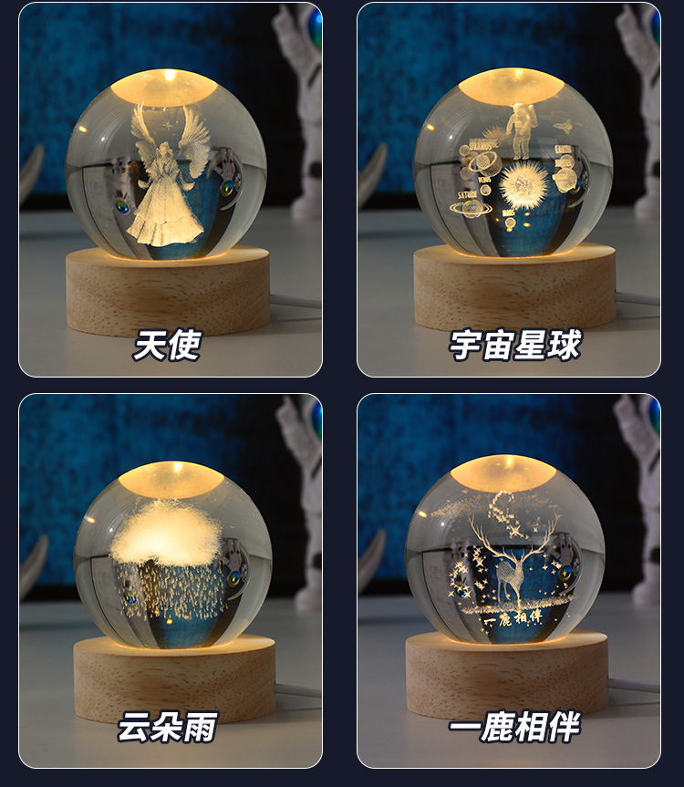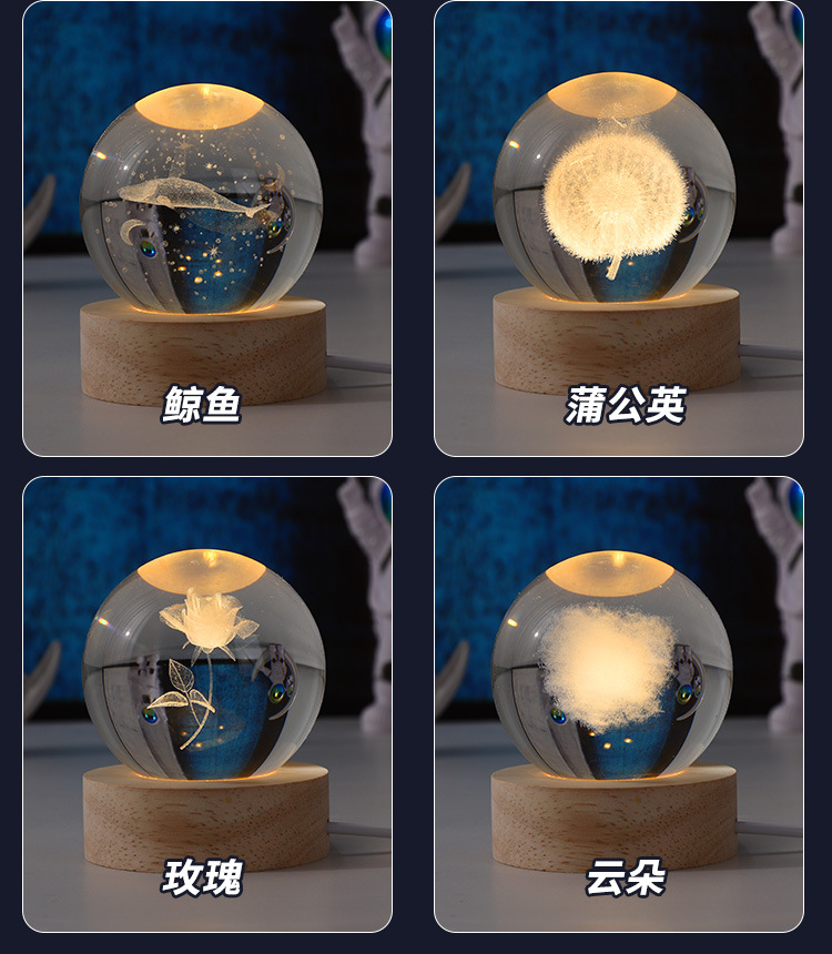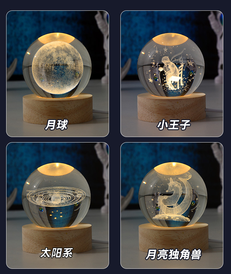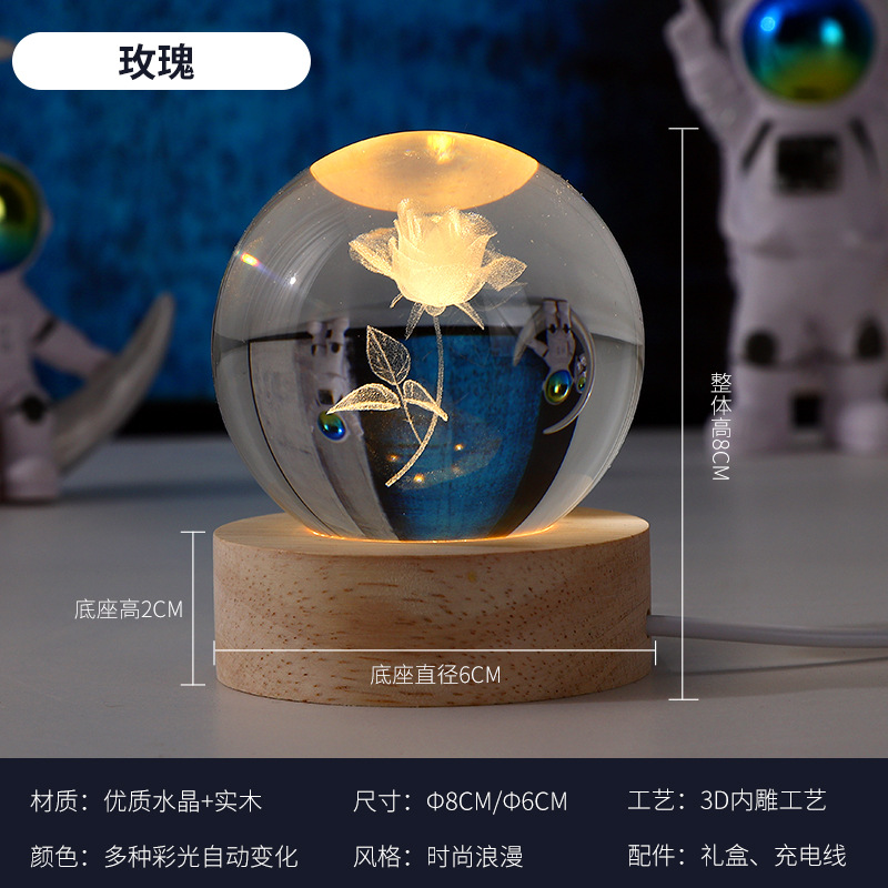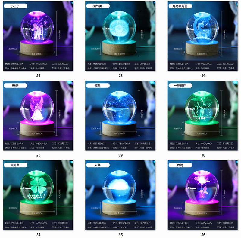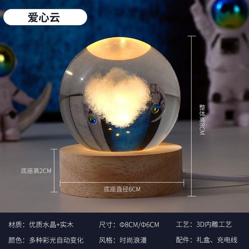 厂家批发水晶球3d小夜灯 usb遥控卧室彩色氛围灯公司logo活动礼品