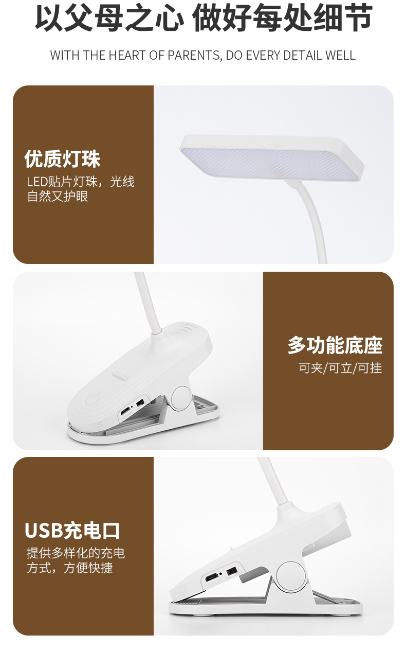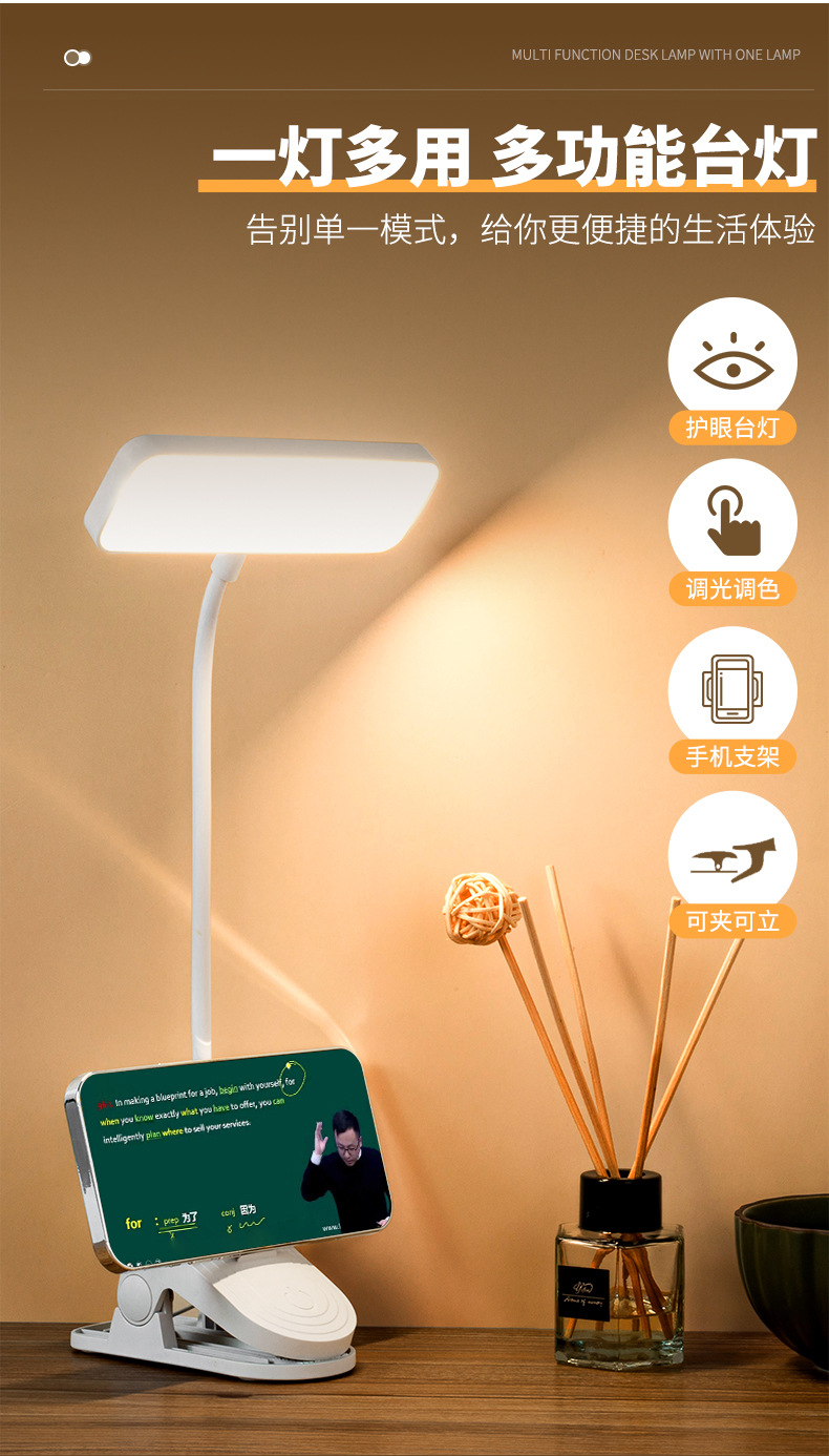 学生夹子台灯多功能护眼书桌充插两用小台灯礼品学习宿舍LED跨境