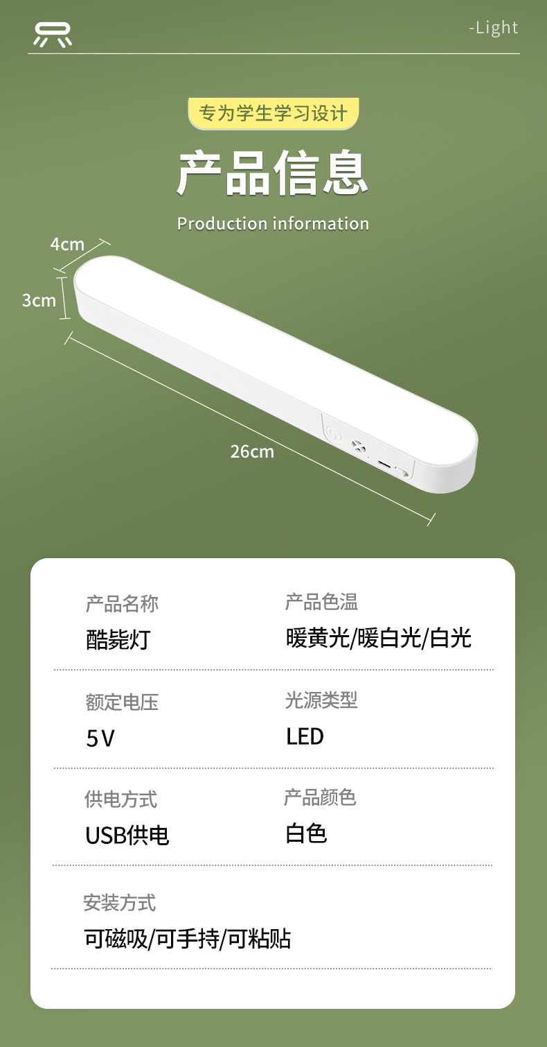 源头厂家宿舍酷毙灯管usb充电学习护眼led台灯书桌寝室磁吸阅读神