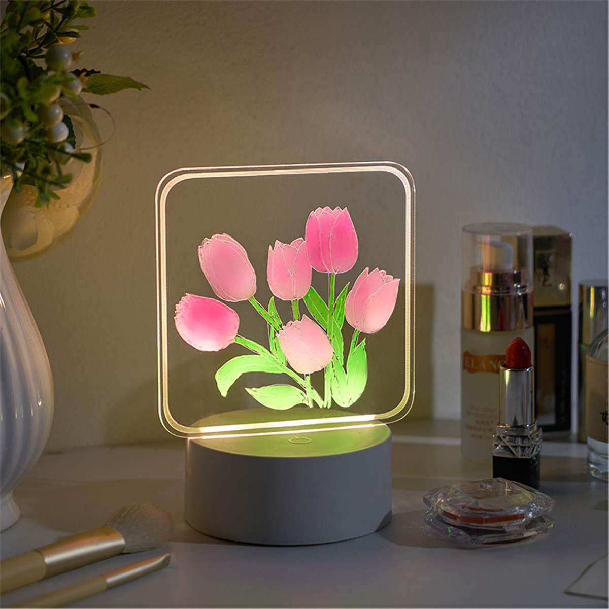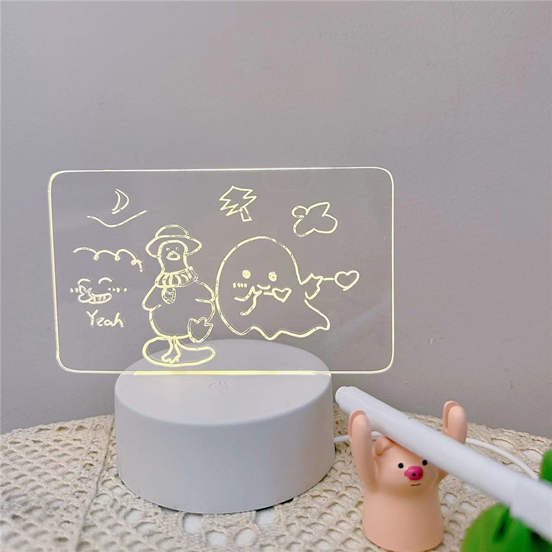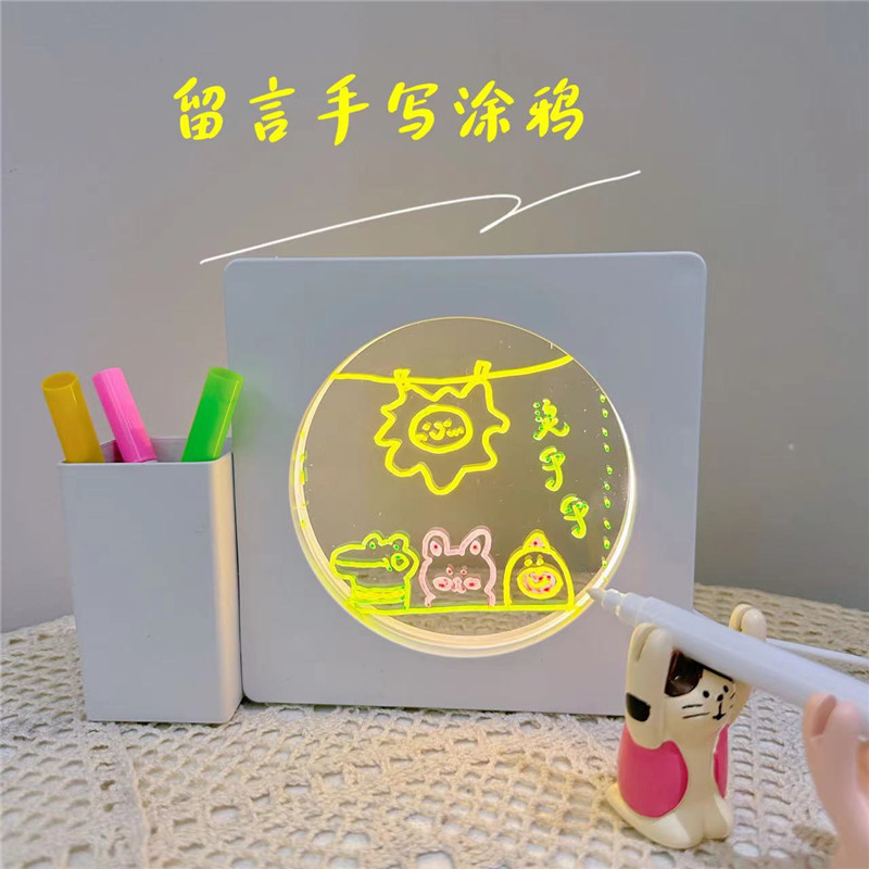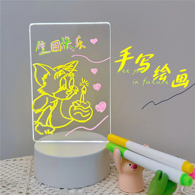 跨境网红DIY手写板小夜灯 涂色3D小夜灯亚克力可擦写发光留言板