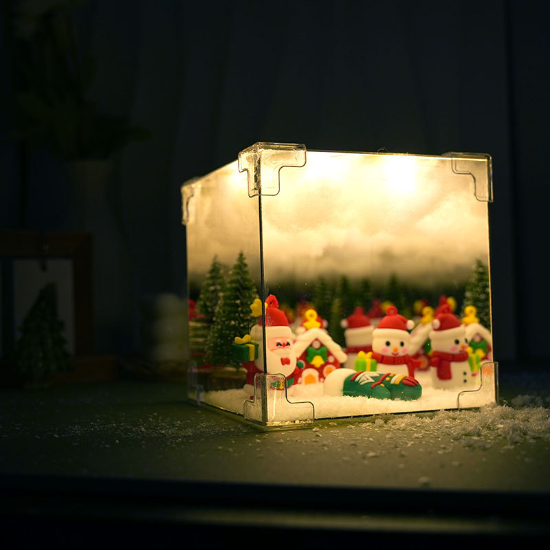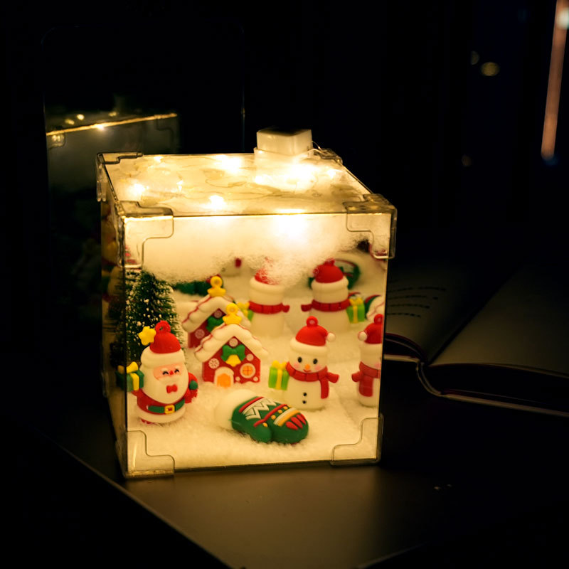 圣诞魔方小夜灯镜子装饰创意DIY桌面摆件爆款节日礼物跨境创意灯