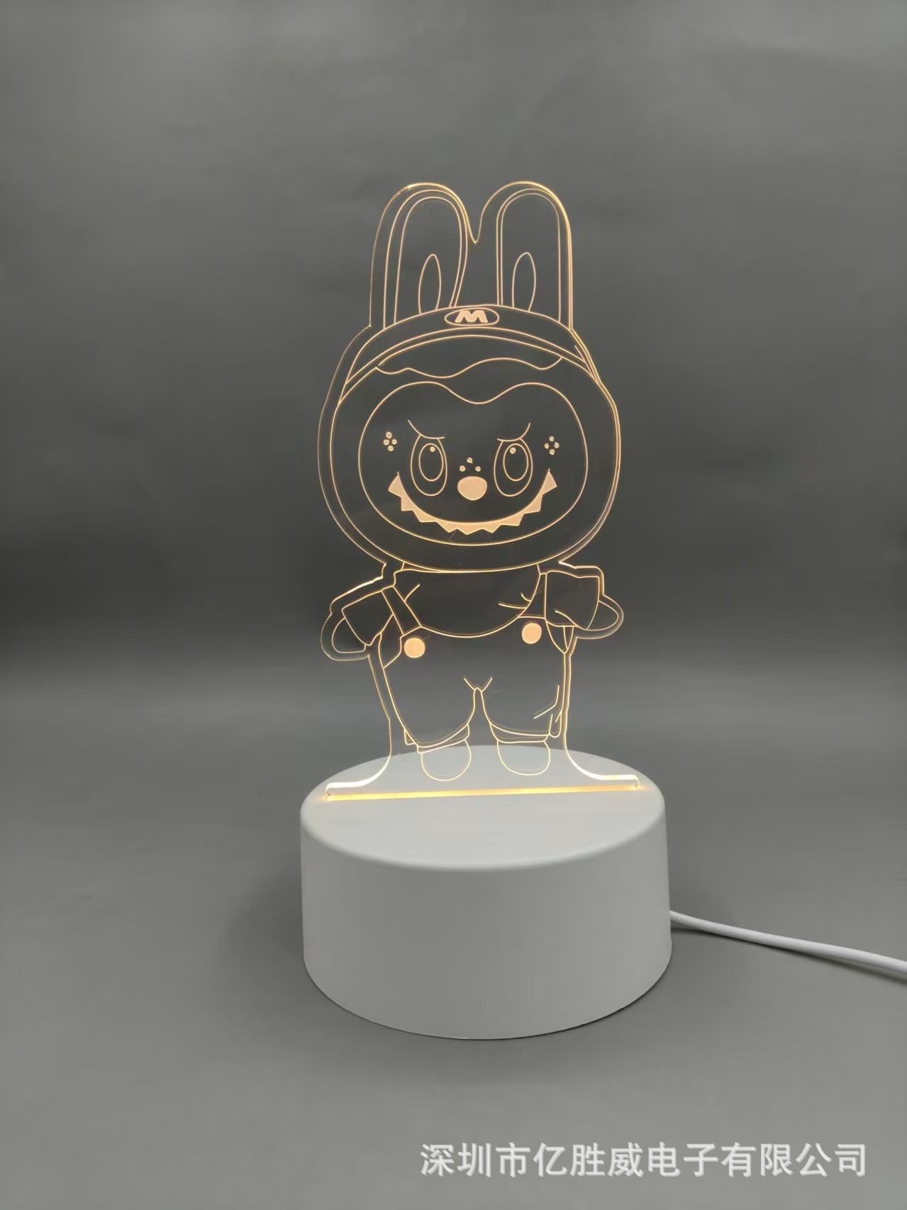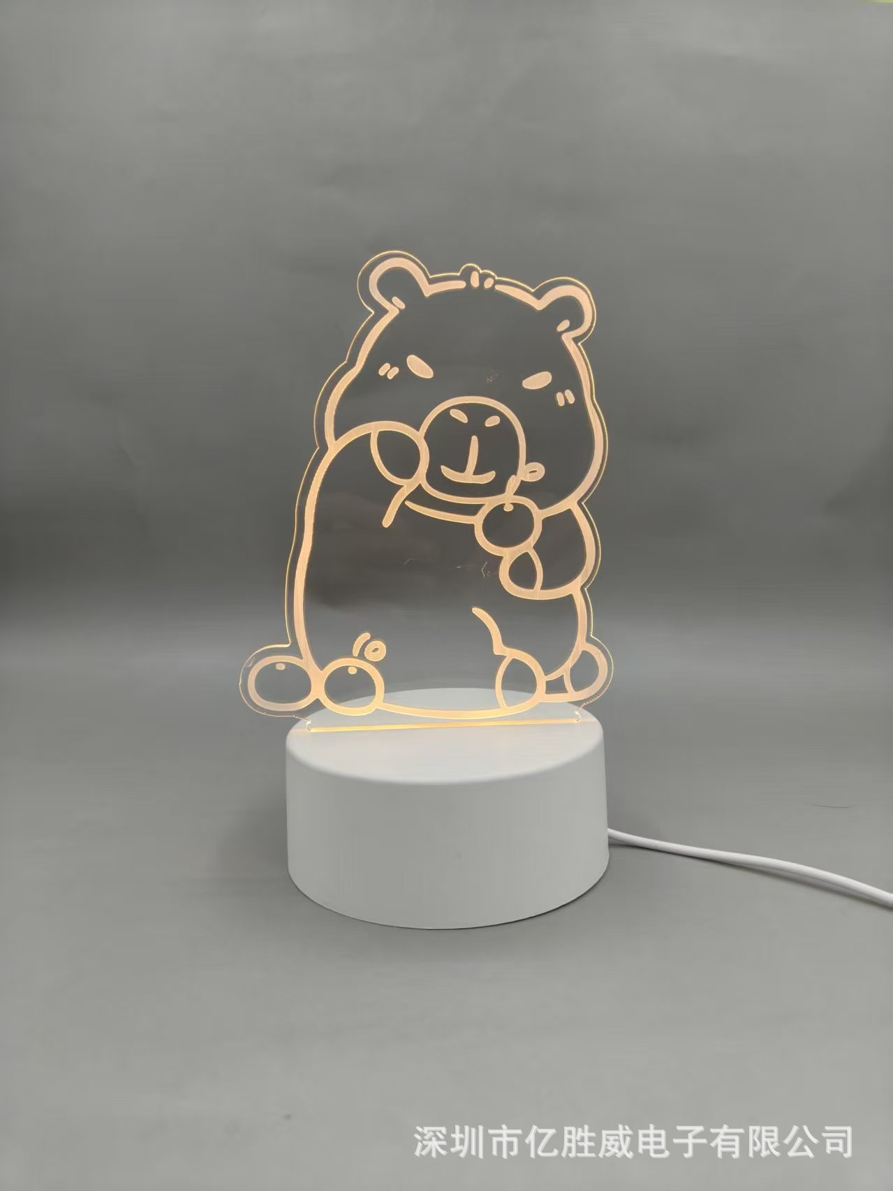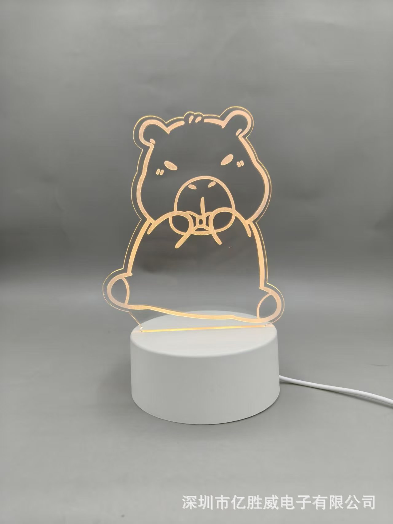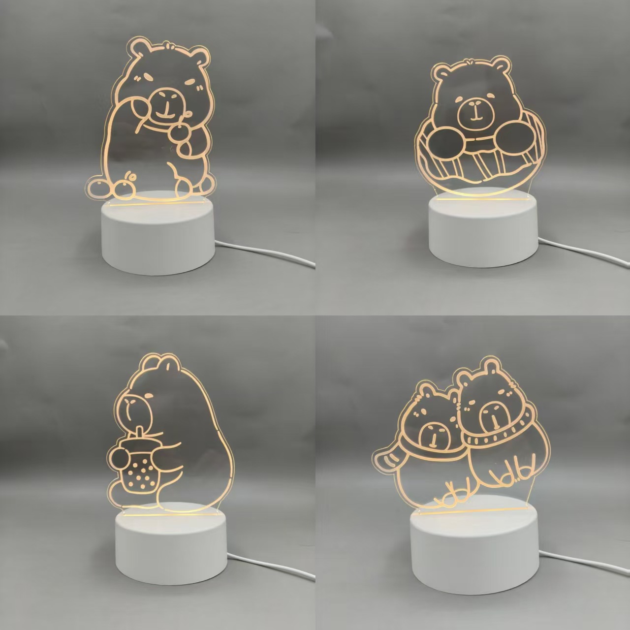 跨境新款卡通拉布布卡皮巴拉系列亚克力3D小夜灯创意外贸礼品台灯