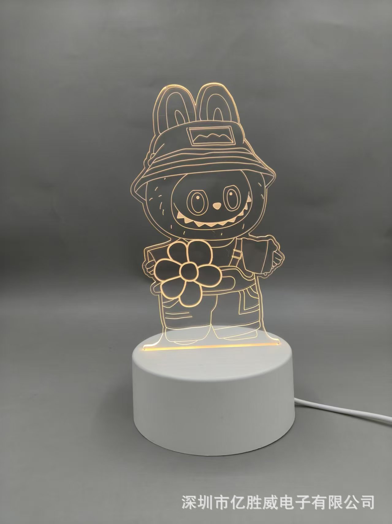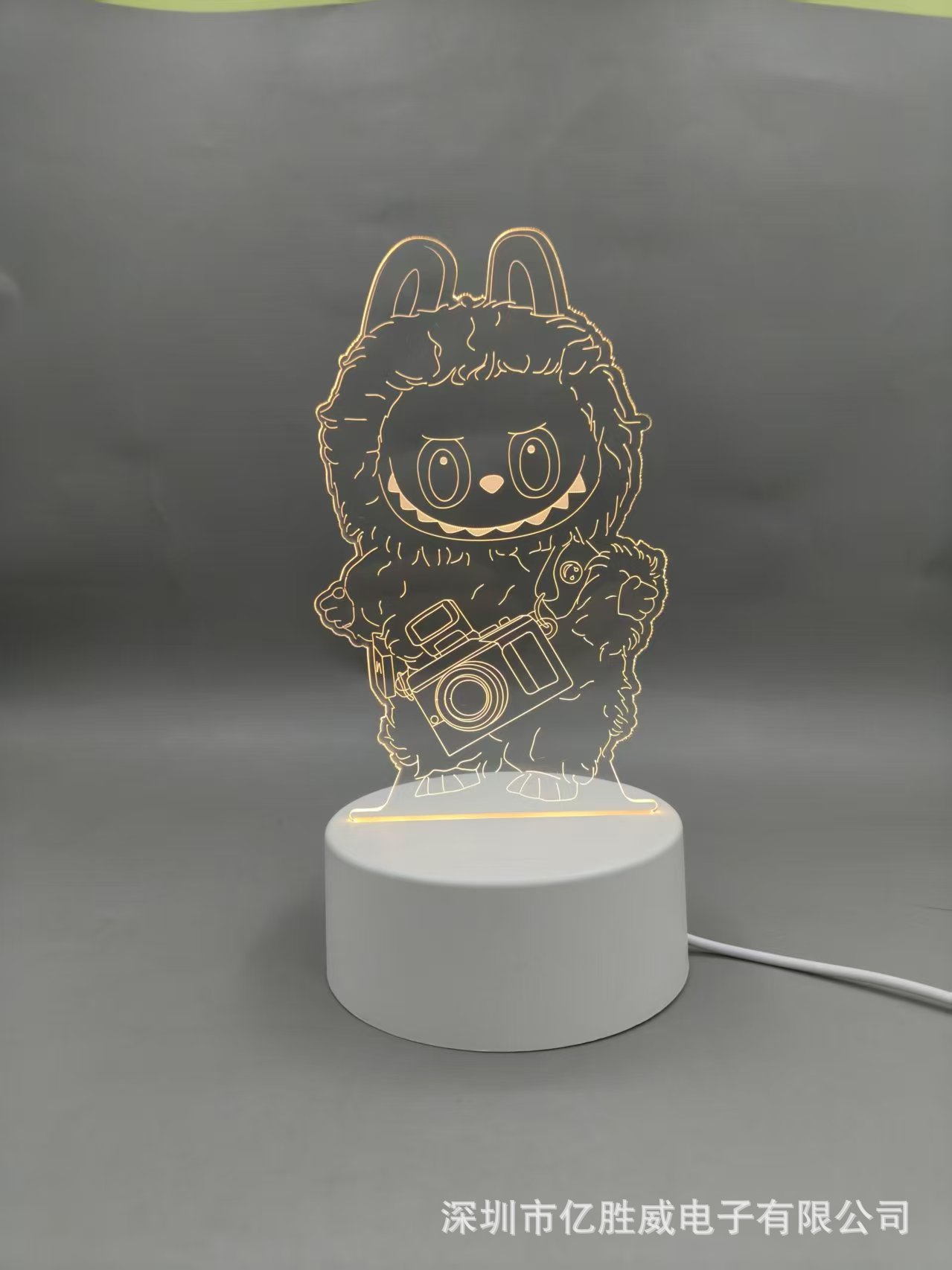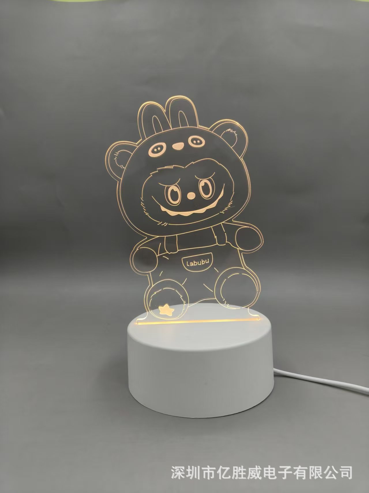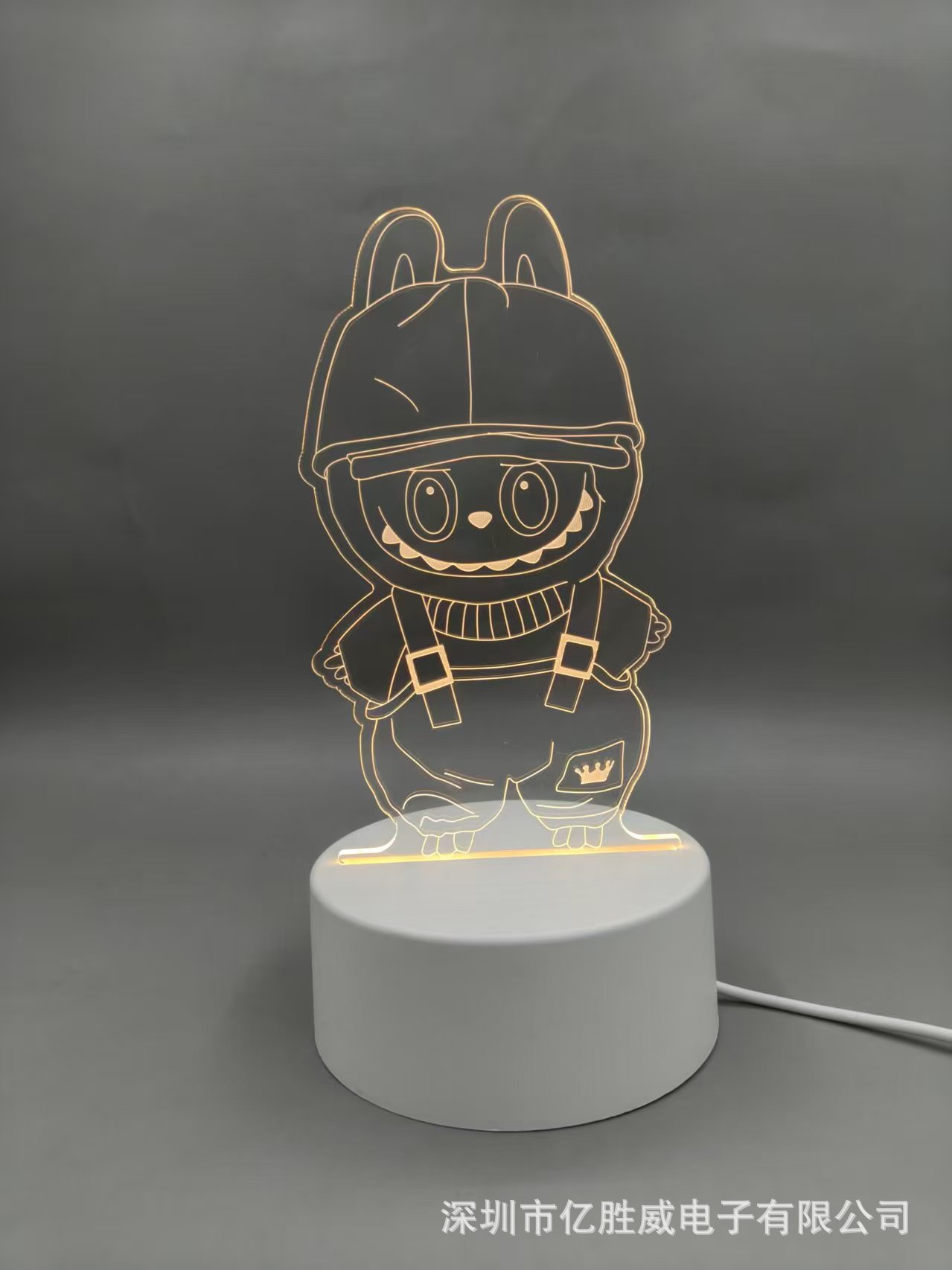 跨境新款卡通拉布布卡皮巴拉系列亚克力3D小夜灯创意外贸礼品台灯