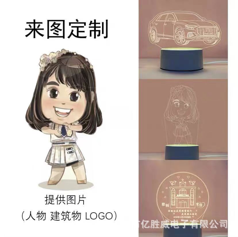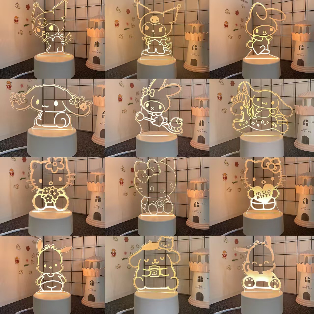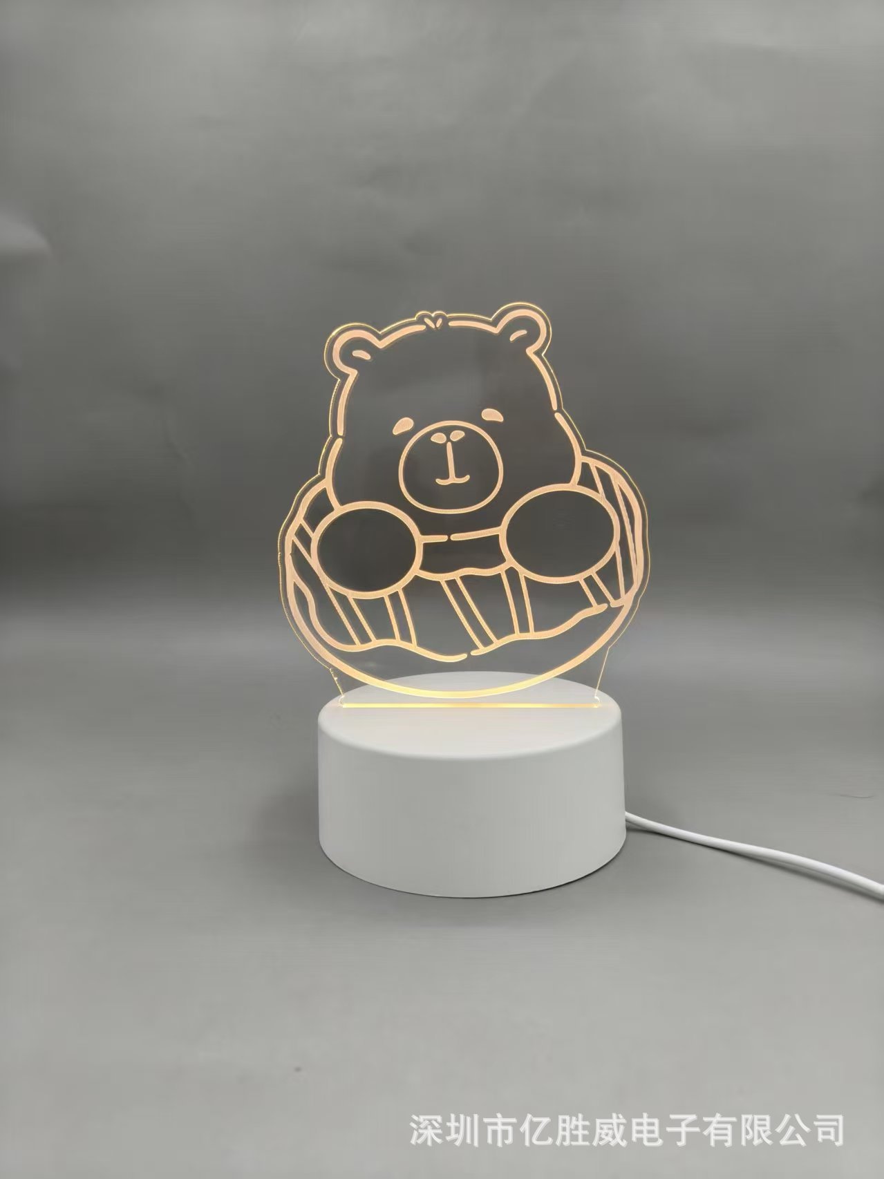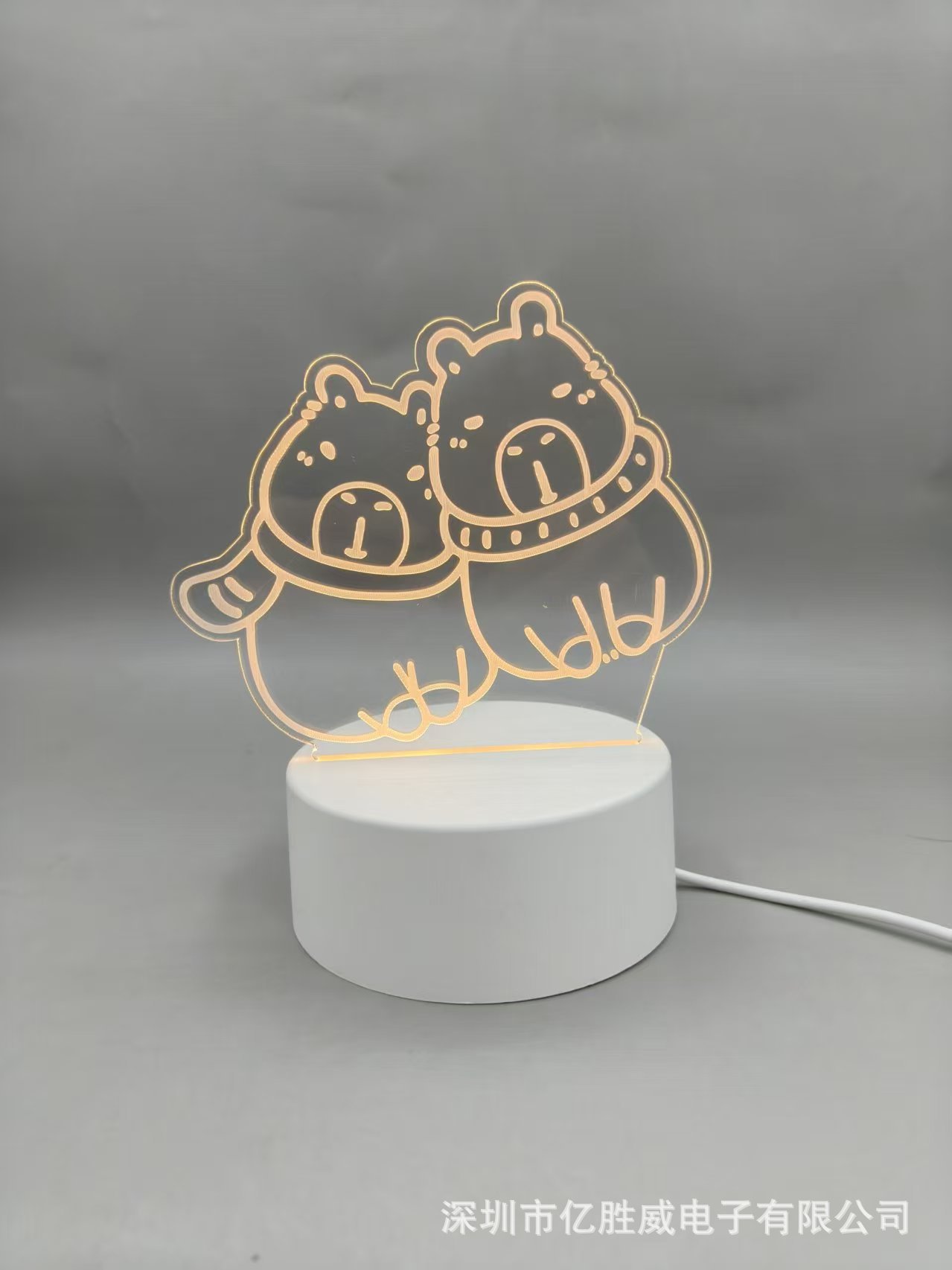 跨境新款卡通拉布布卡皮巴拉系列亚克力3D小夜灯创意外贸礼品台灯
