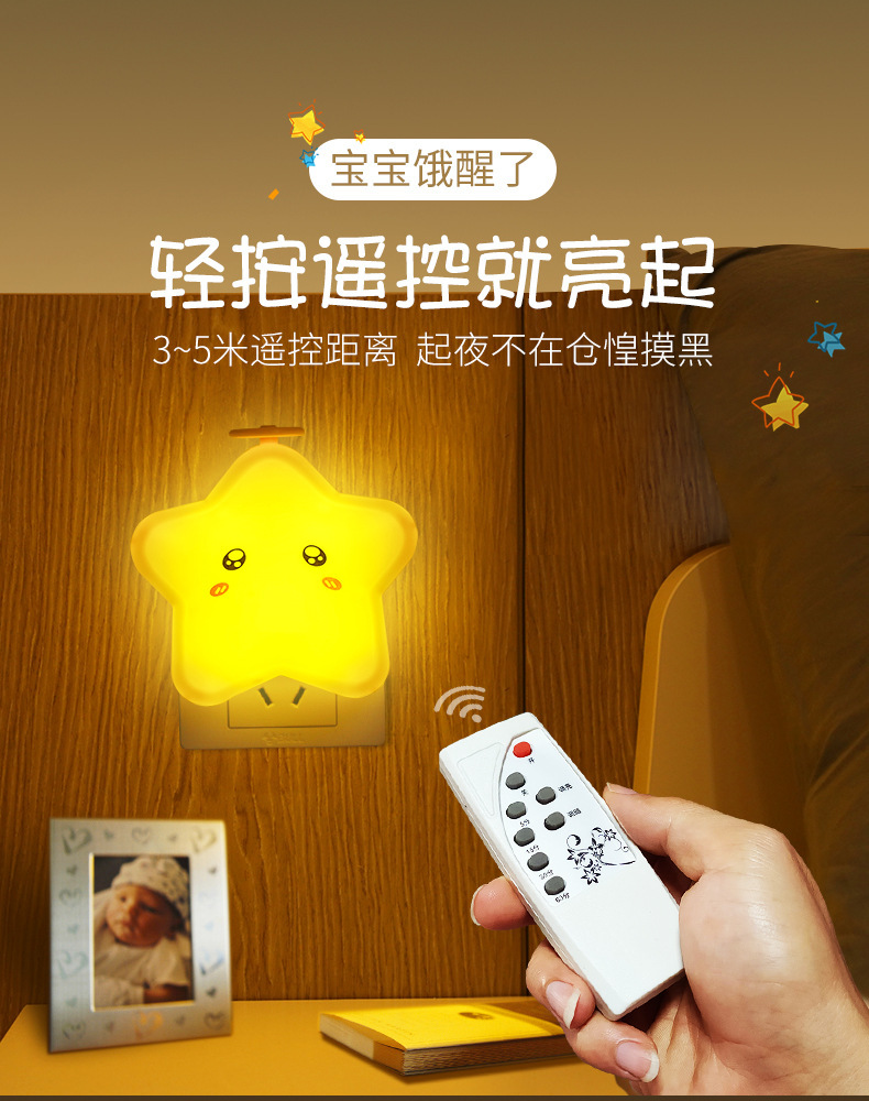 五角星遥控小夜灯卡通卧室床头灯婴儿喂奶台灯插电式护眼睡眠小灯