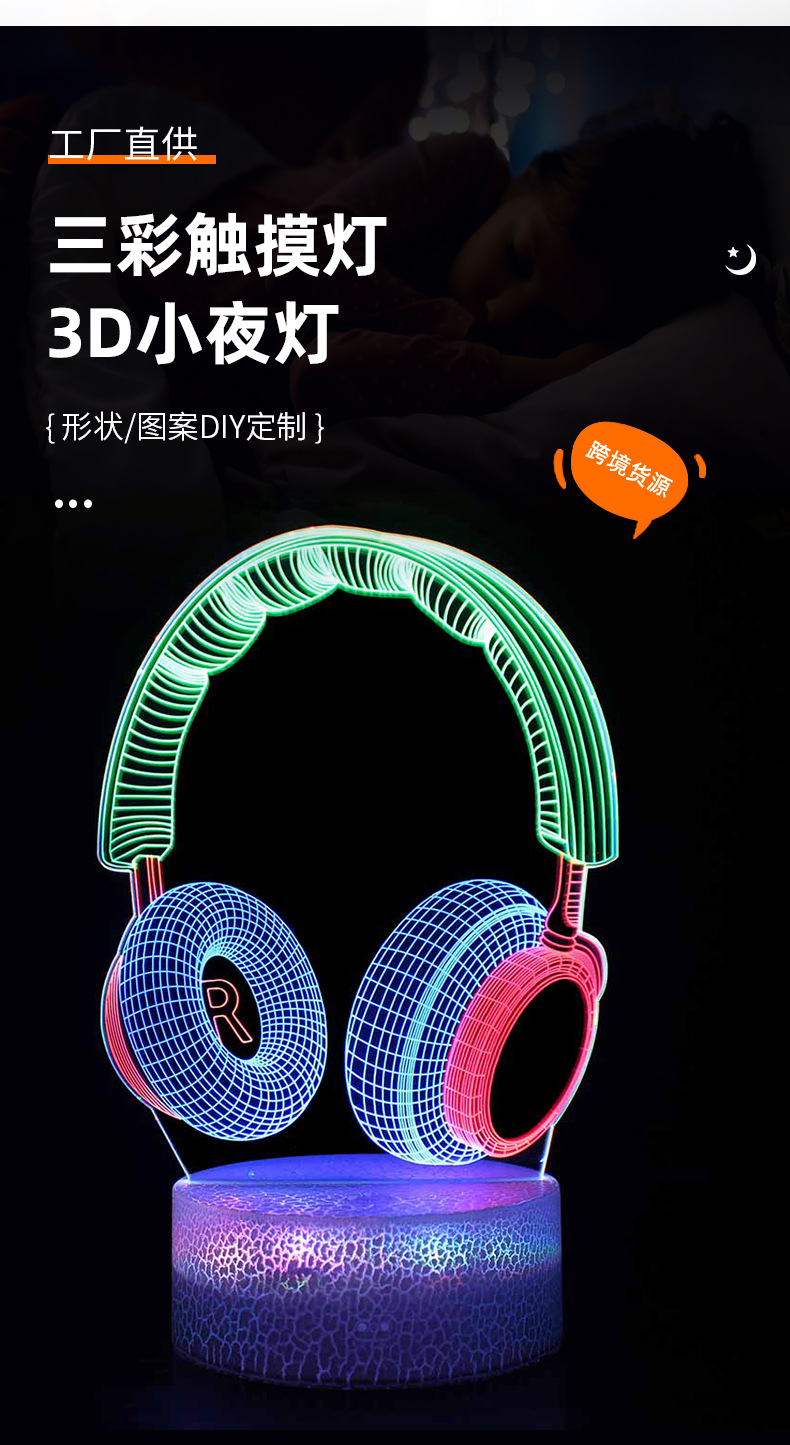 音乐泰勒吉他音符耳机系列氛围灯usb七彩rgb小夜灯亚马逊小台灯