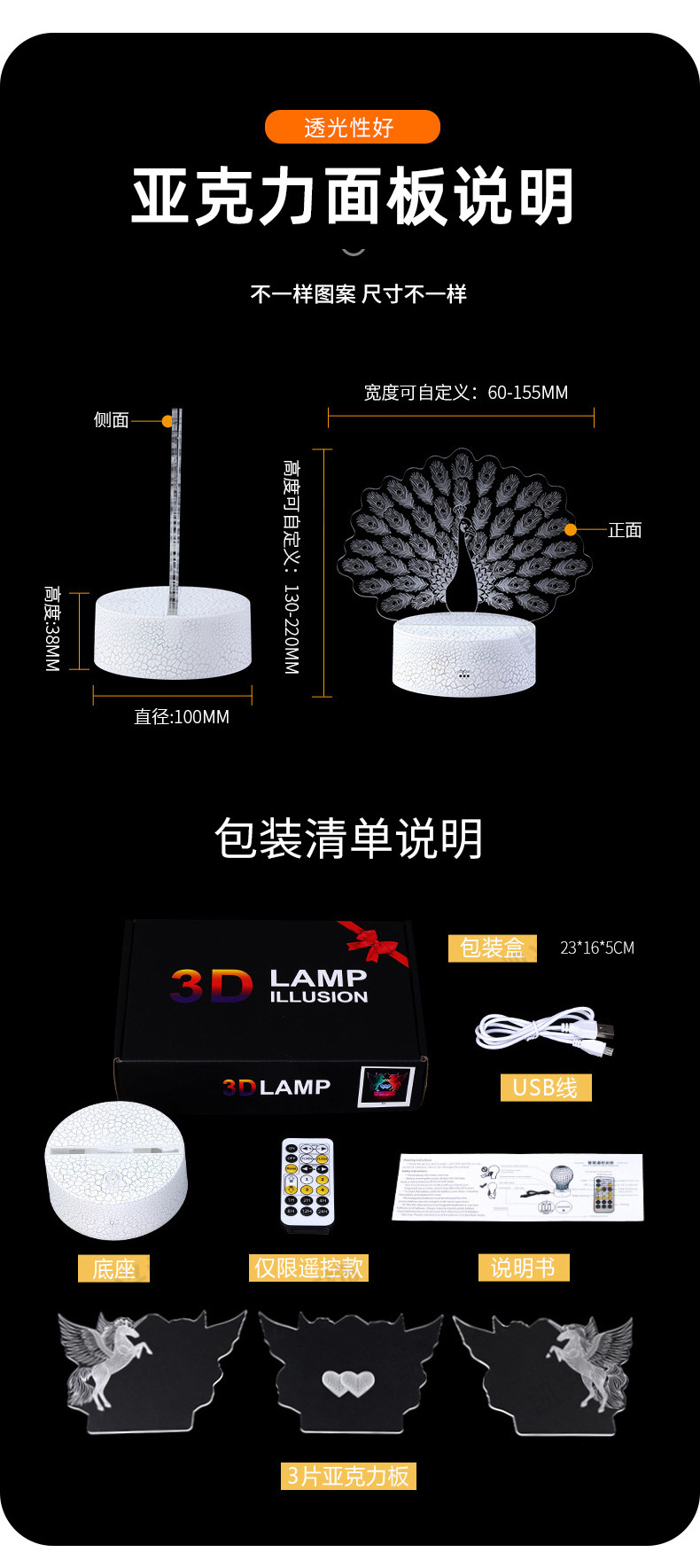 | black base: three-color touch + timing remote control +3 boards(黑色底座:三色触摸+定时遥控+3片板) | USD $5.02 | 50000 piece available |