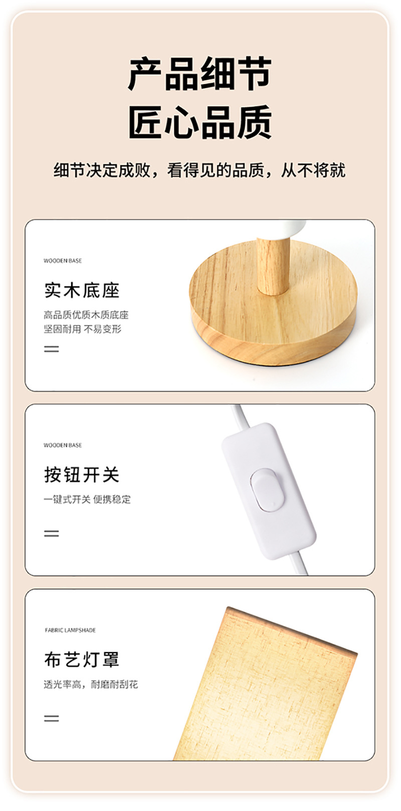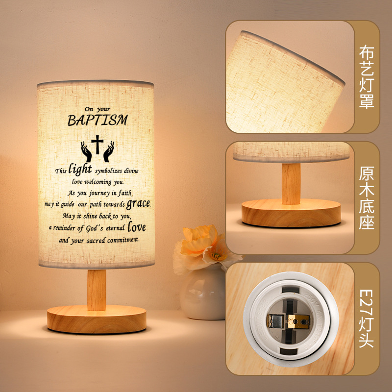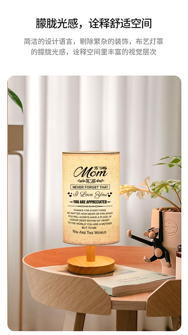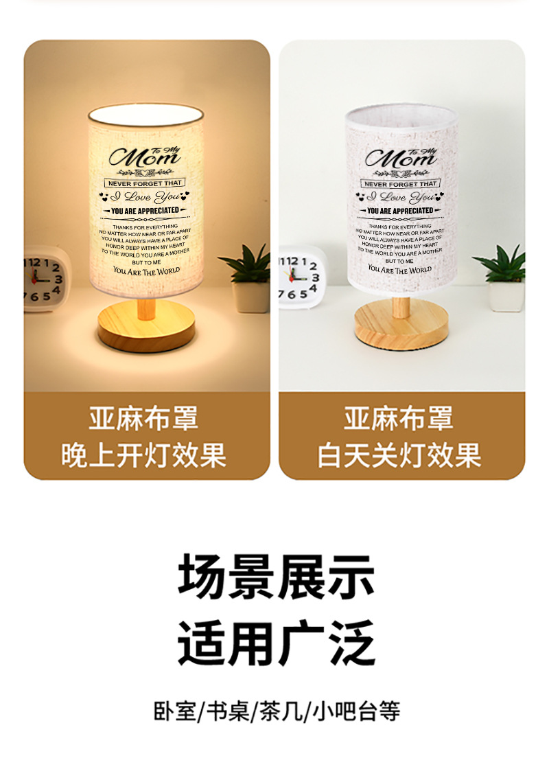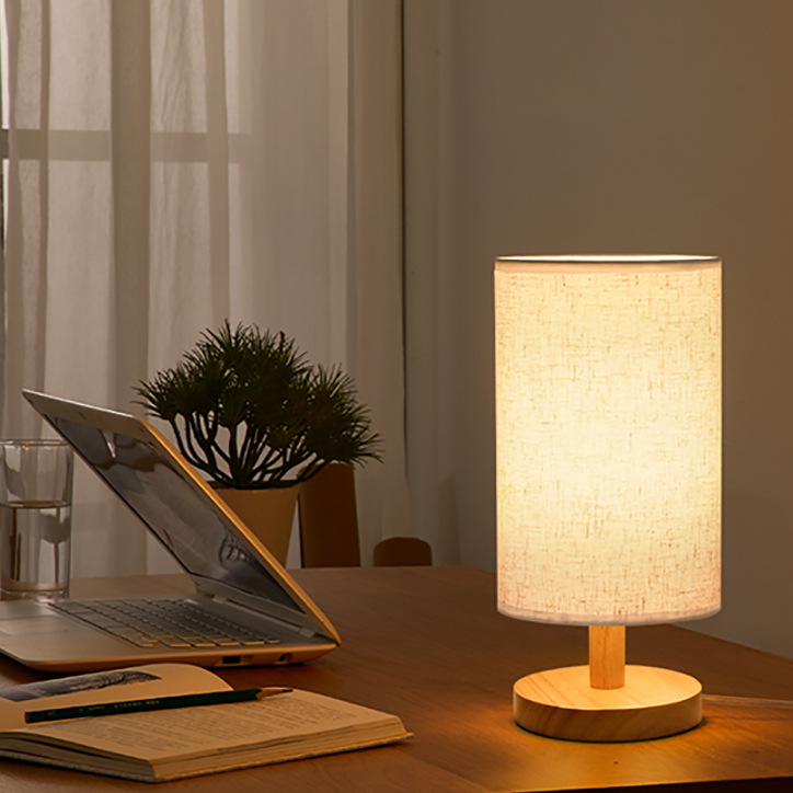 北欧原木布罩台灯现代ins创意装饰卧室USB充电遥控温馨护眼小夜灯