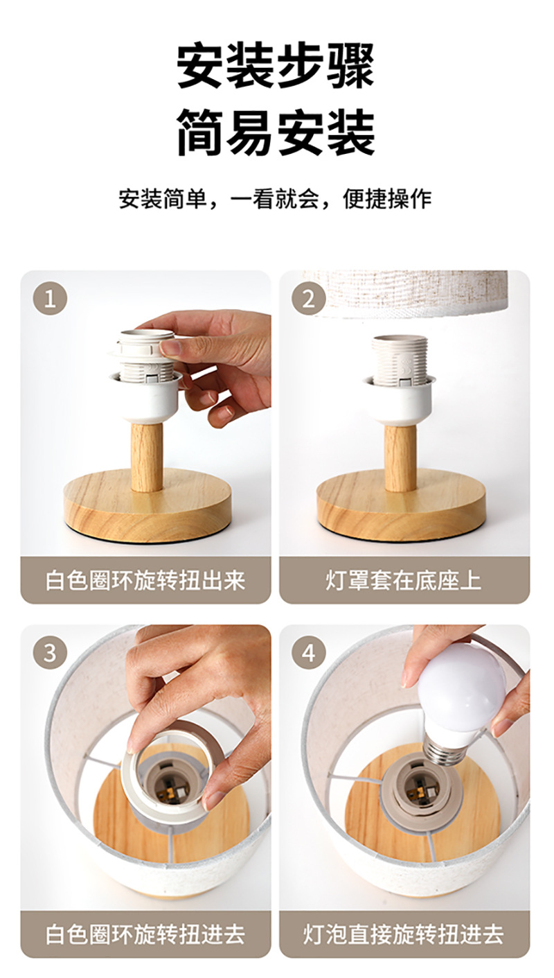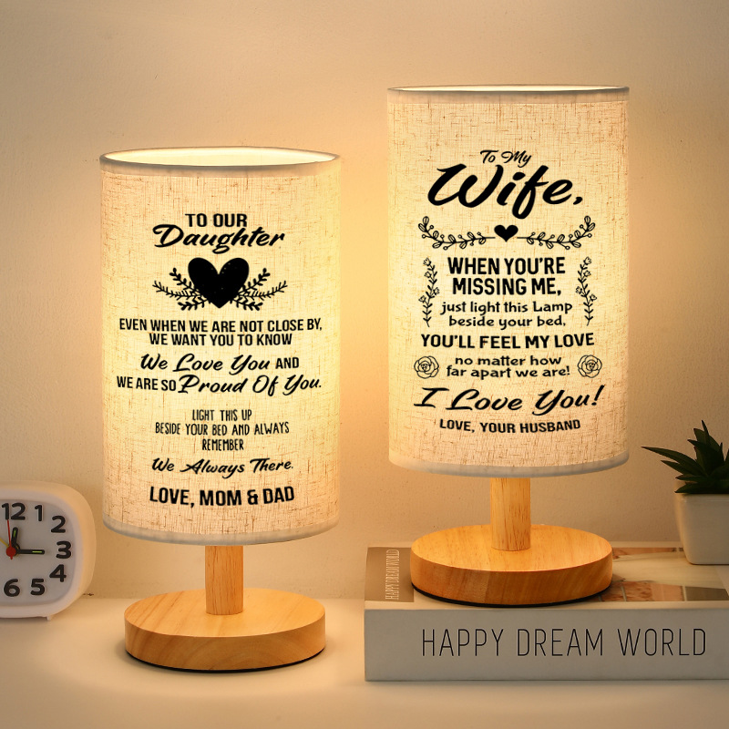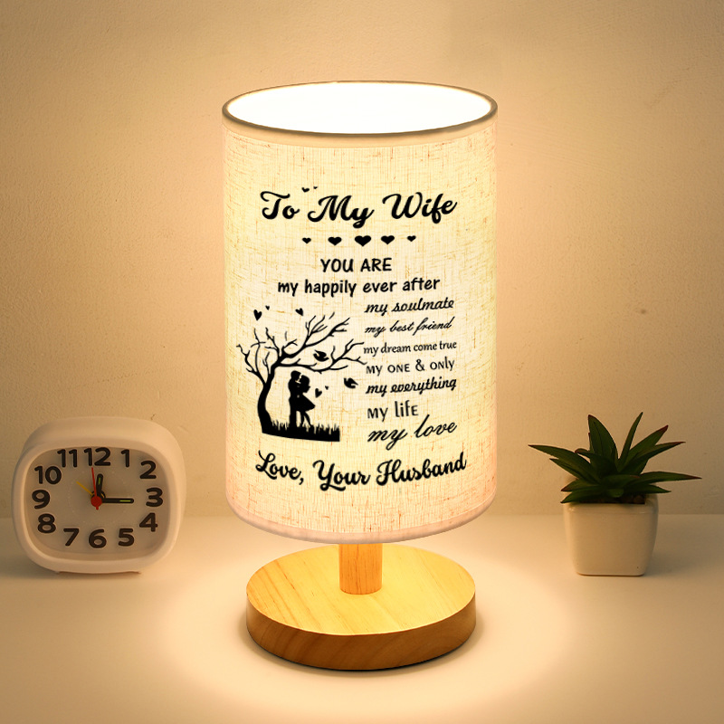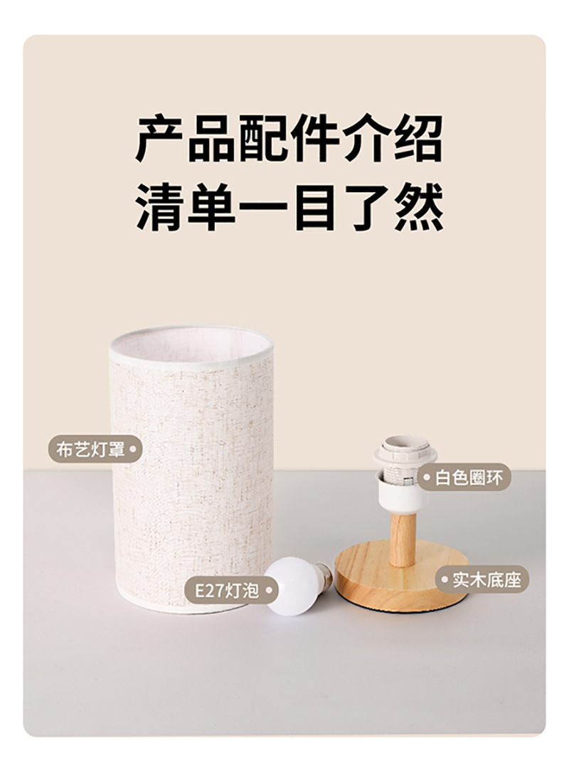 北欧原木布罩台灯现代ins创意装饰卧室USB充电遥控温馨护眼小夜灯