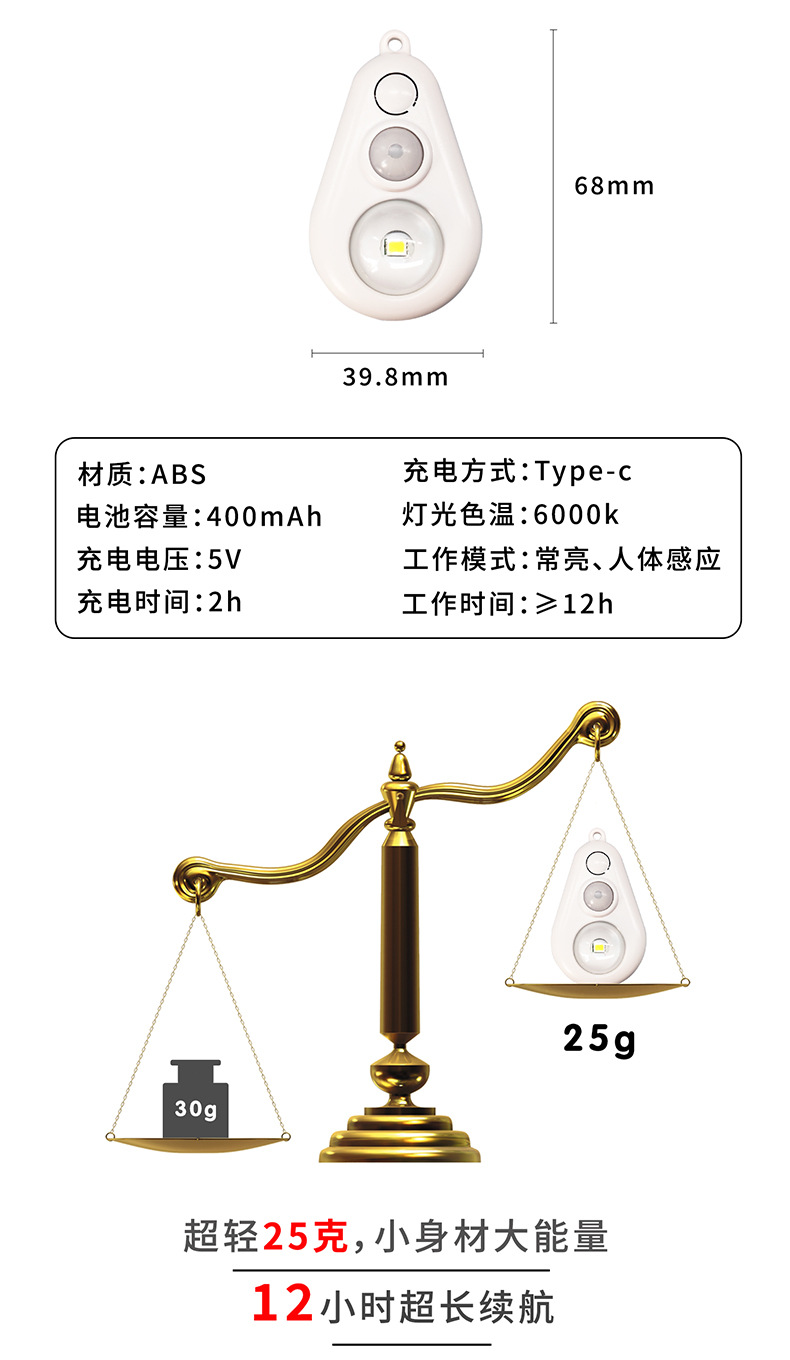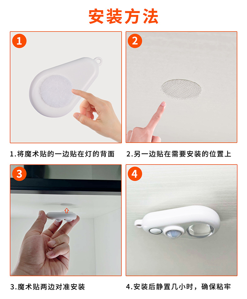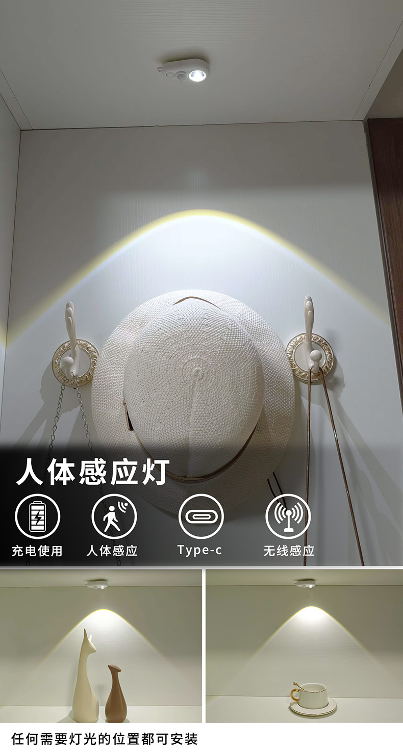 客厅免布线手办展示柜灯长续航充电感应射灯人体感应酒柜灯小夜灯
