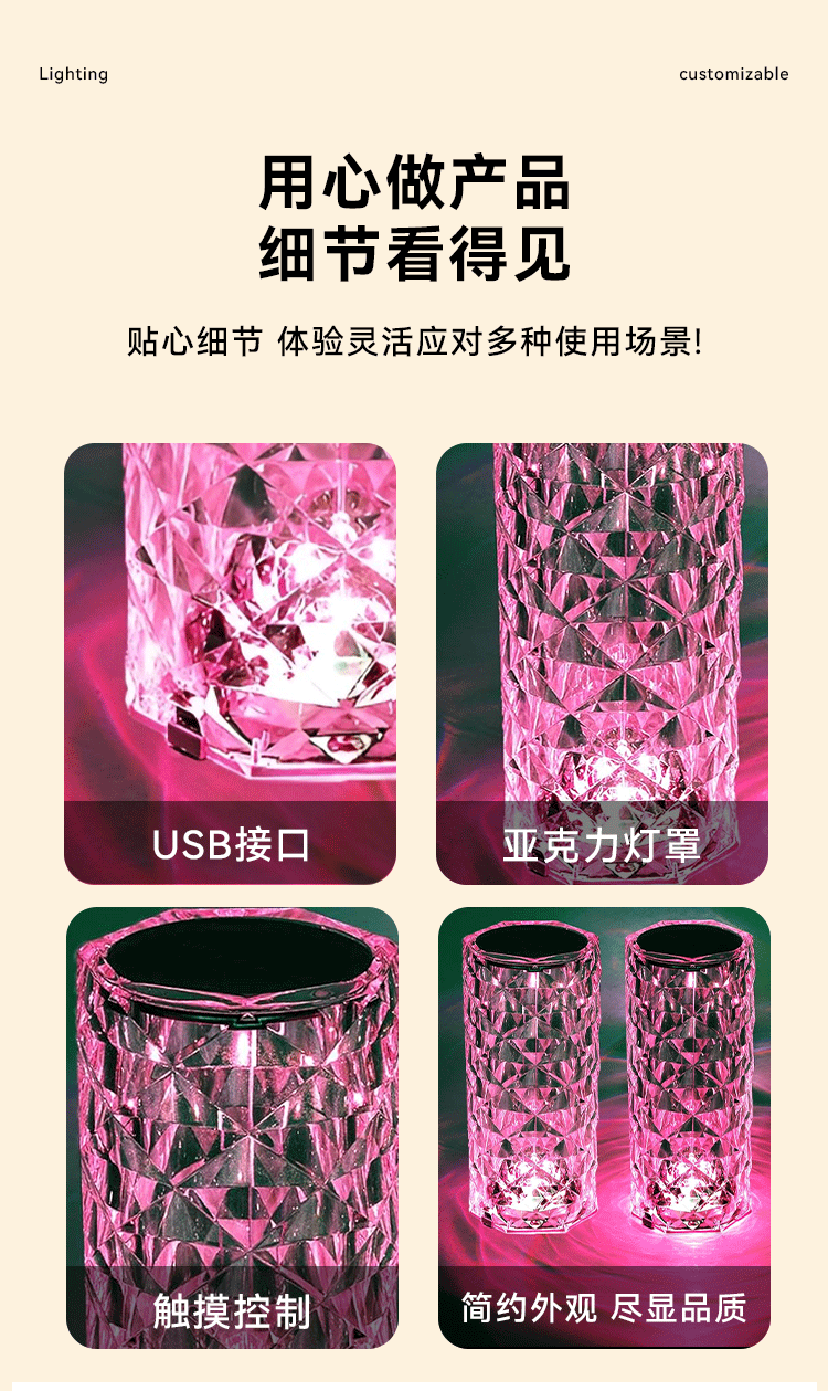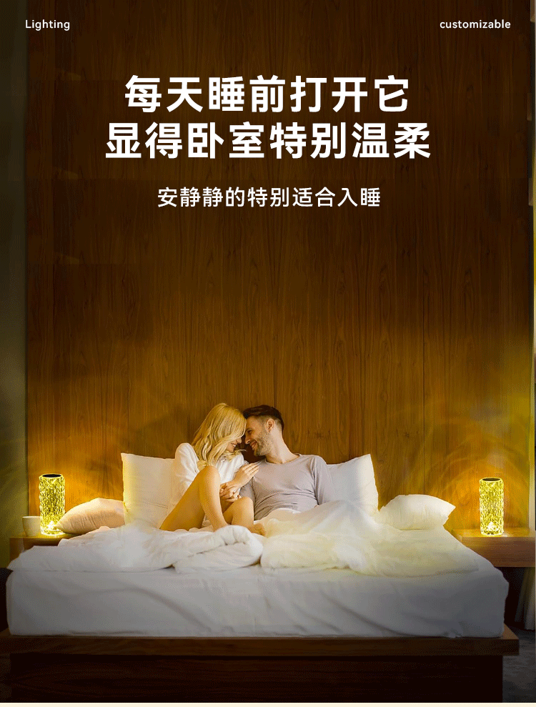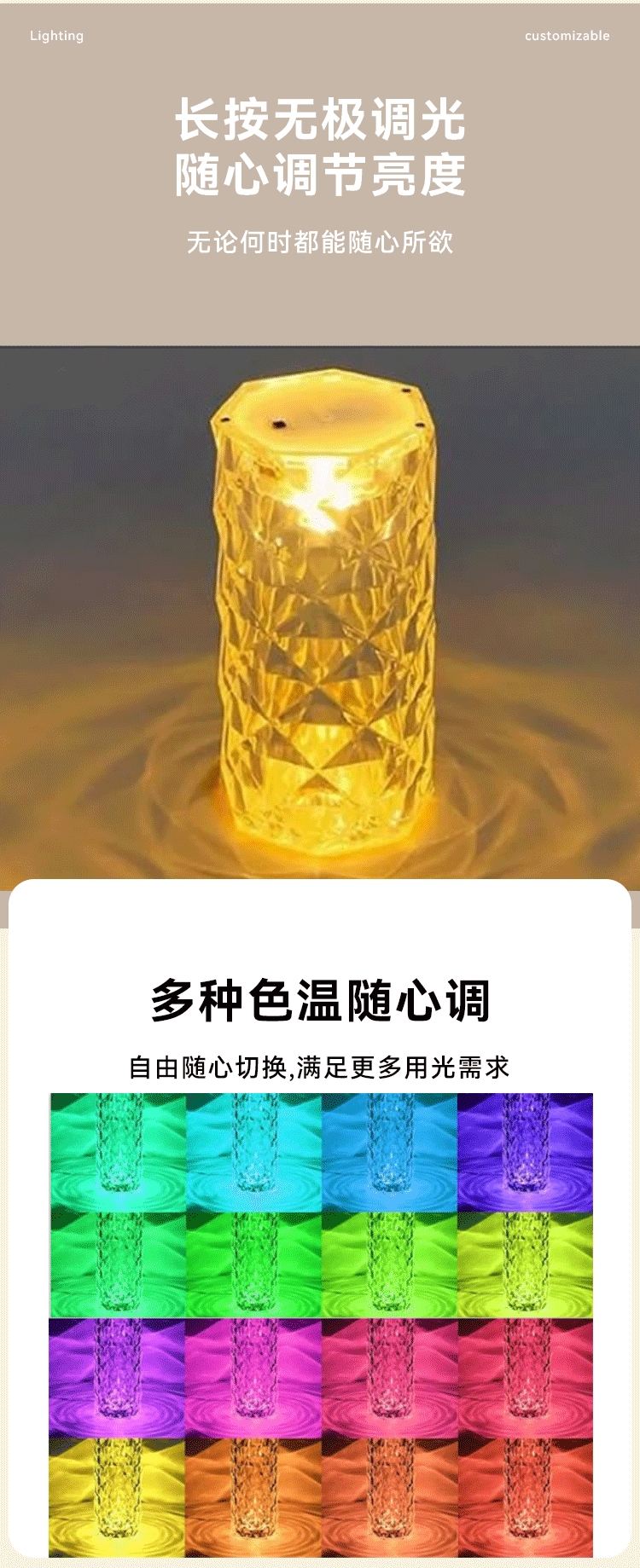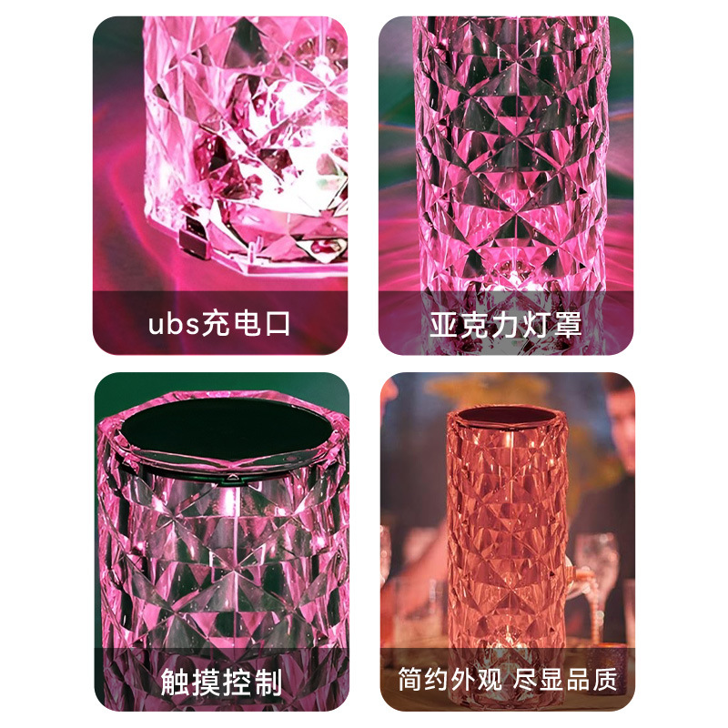 跨境玫瑰台灯床头高级感小夜灯网红爆款氛围灯卧室简约创意摆件灯