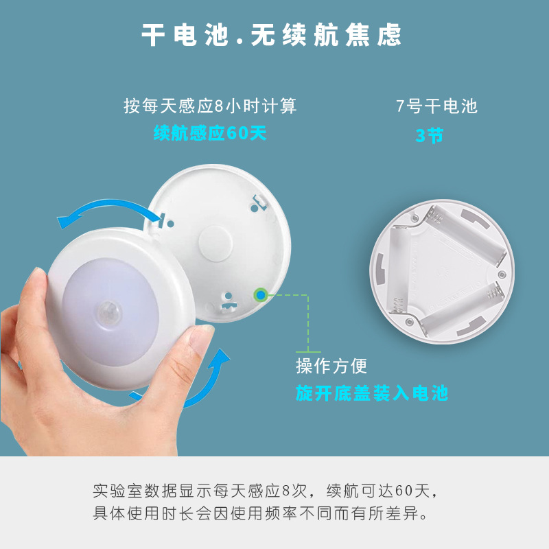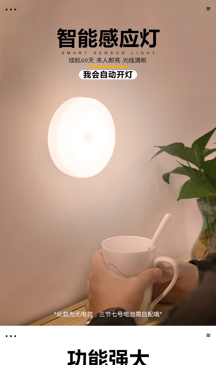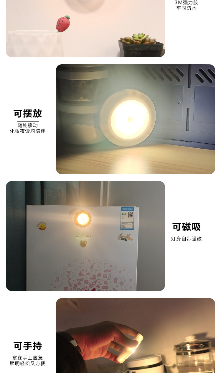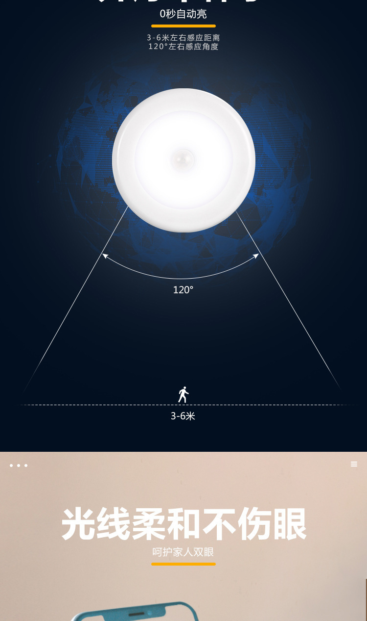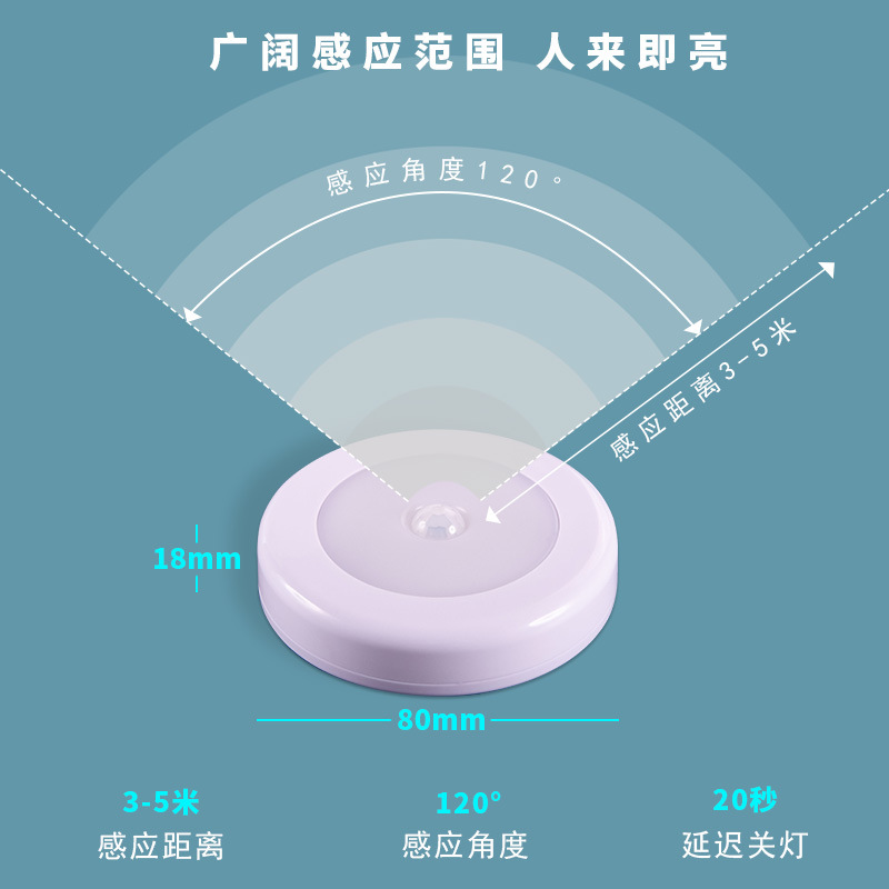 跨境热销无线人体感应小夜灯 卧室床头灯led创意干电池磁吸橱柜灯