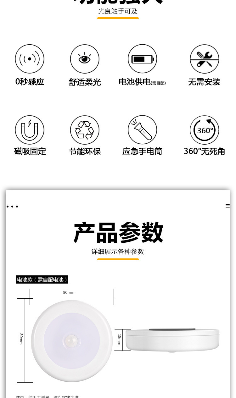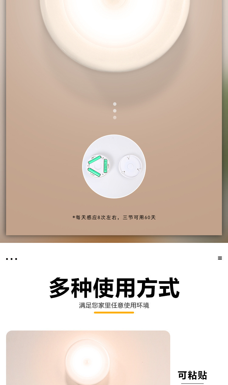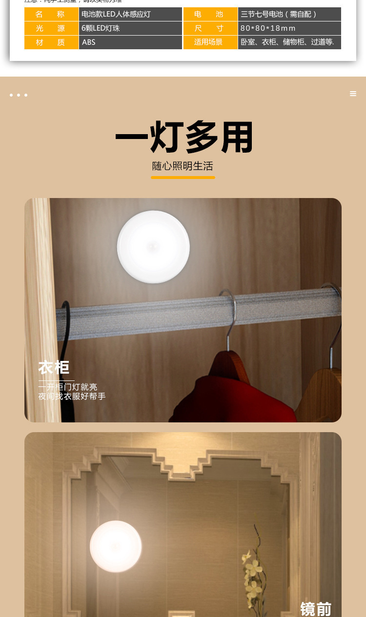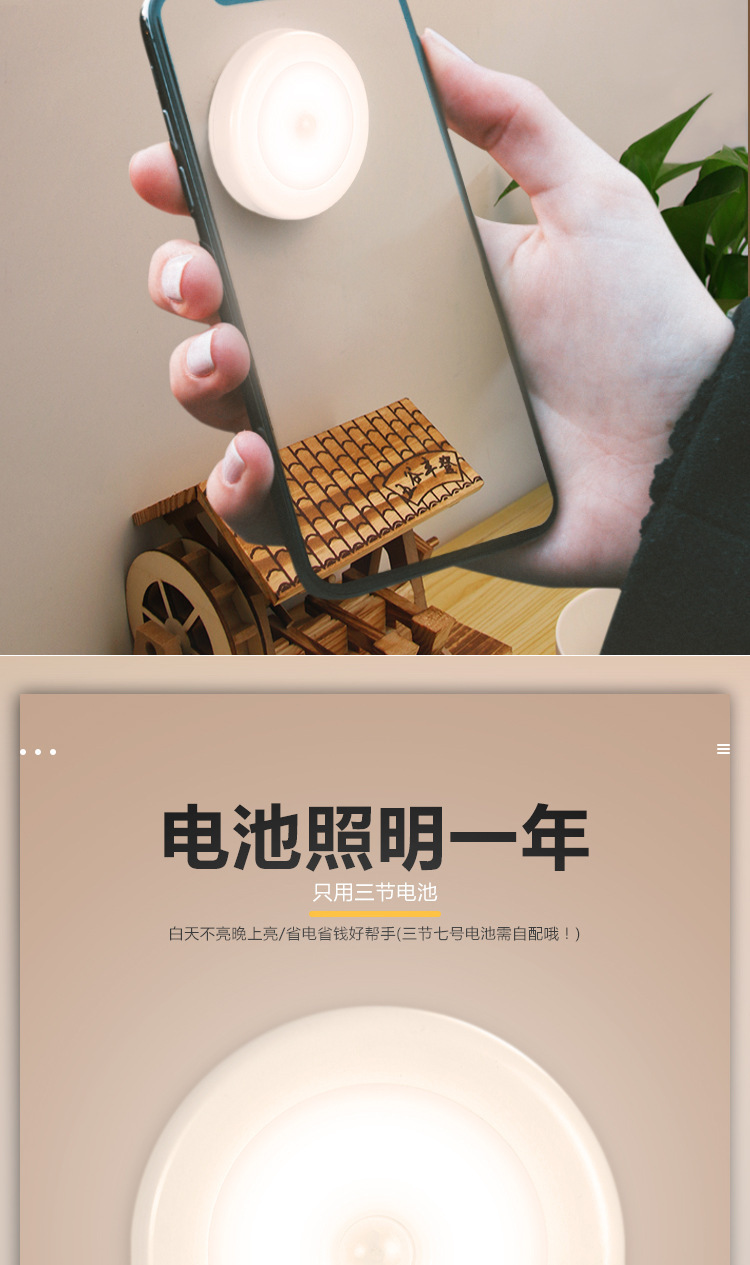 跨境热销无线人体感应小夜灯 卧室床头灯led创意干电池磁吸橱柜灯