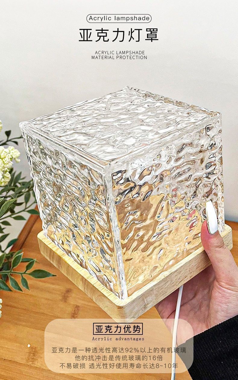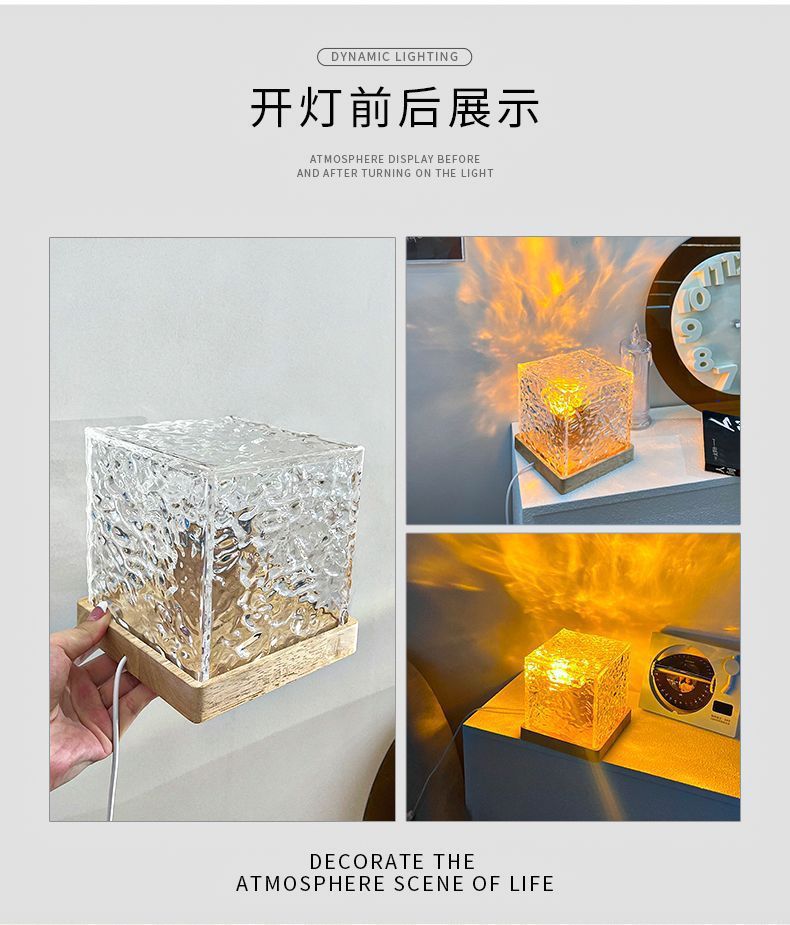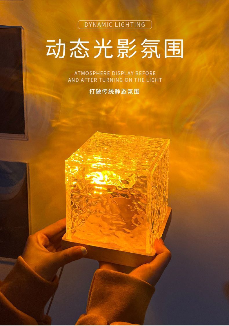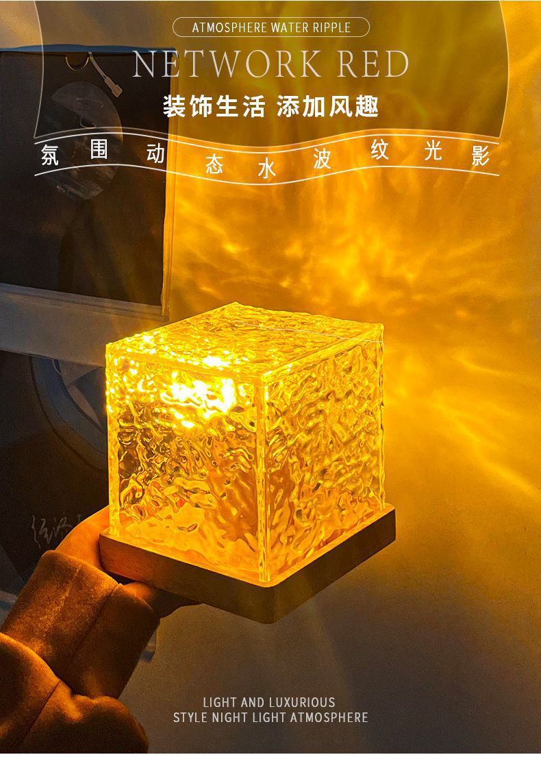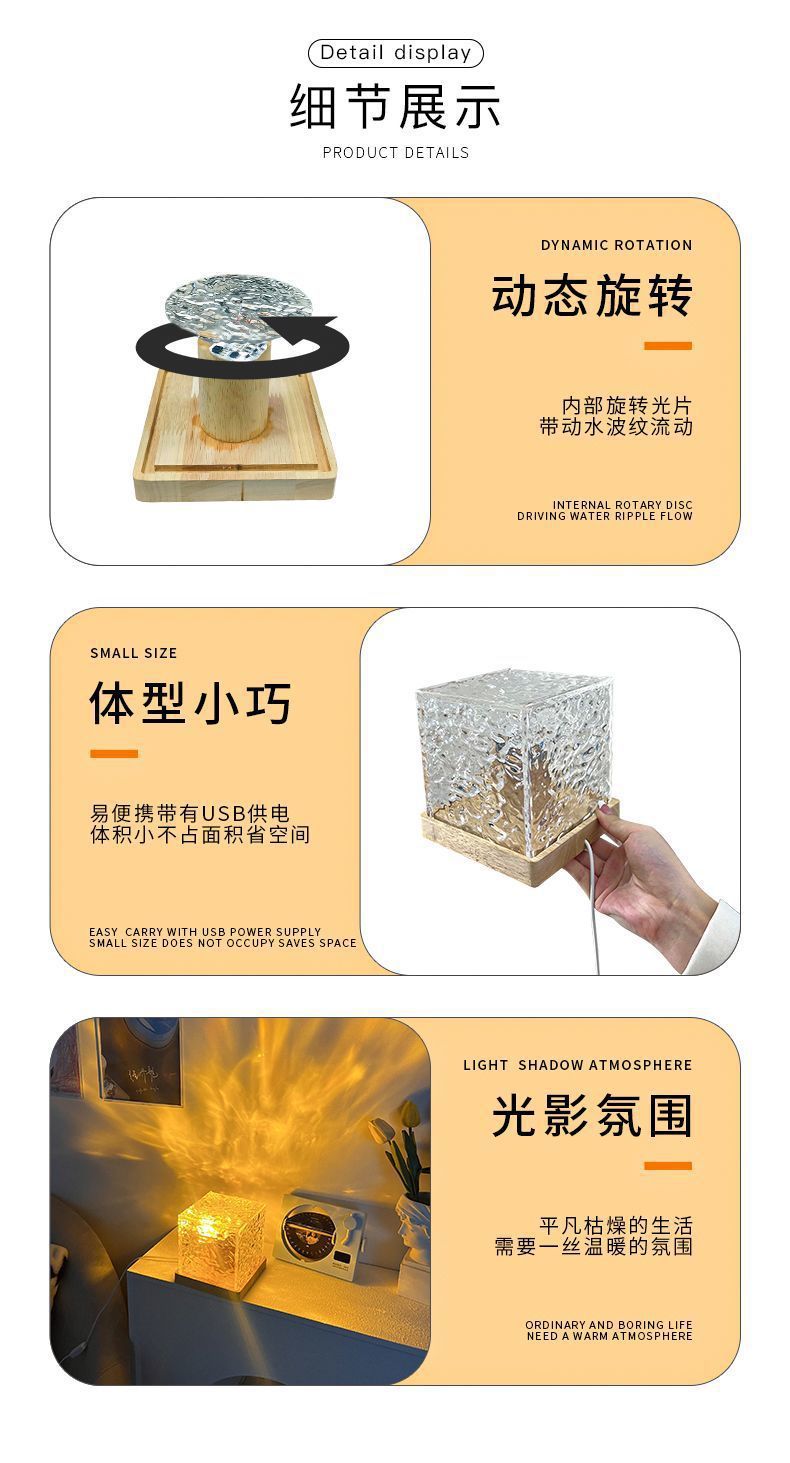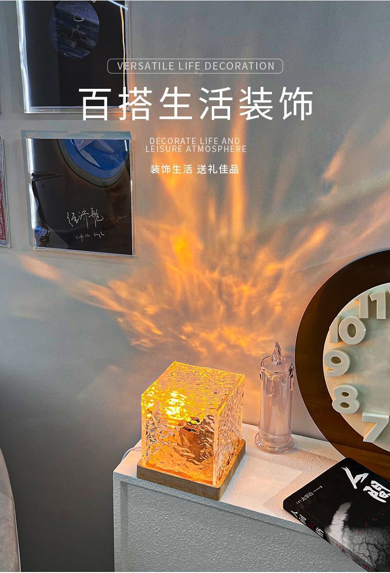 网红水纹小夜灯创意床头火焰水波纹旋转氛围灯动态台灯星空投影灯