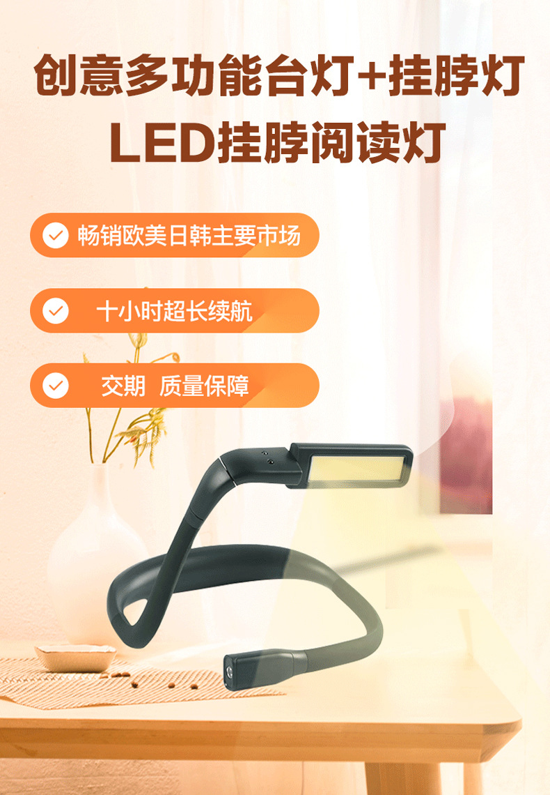 跨境爆款床头阅读灯挂颈大学生宿舍充电led儿童专用护眼学习台灯