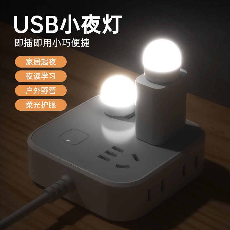 LED护眼灯USB口小夜灯随身便携家用灯泡充电宝充电头插排适用