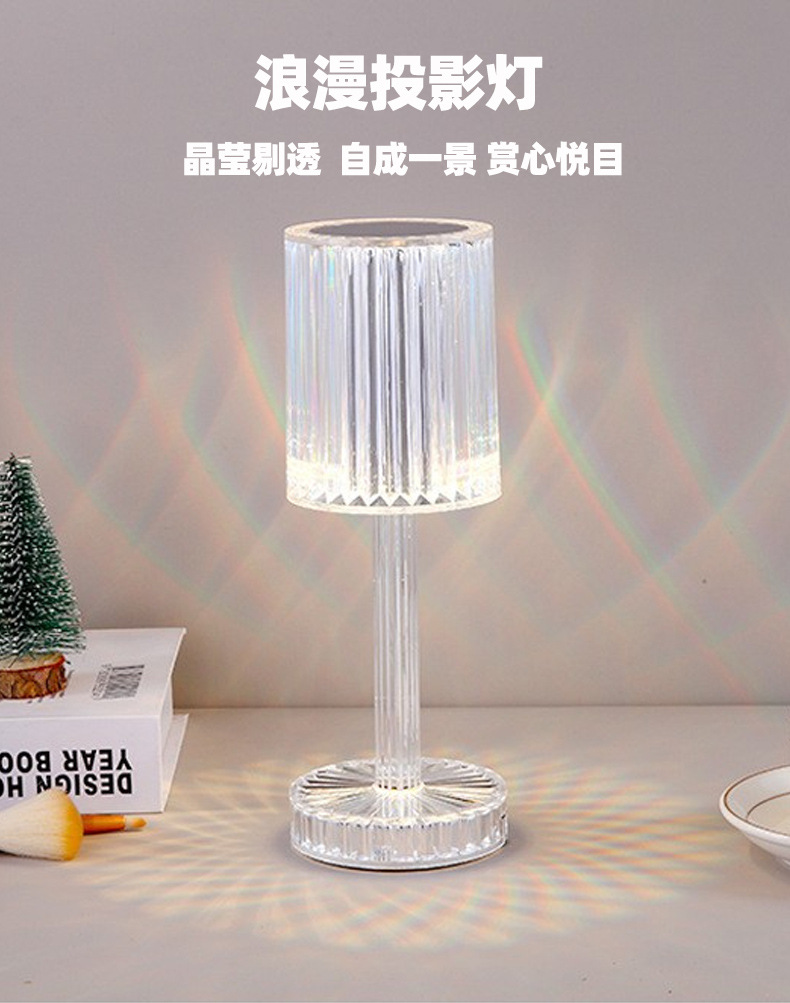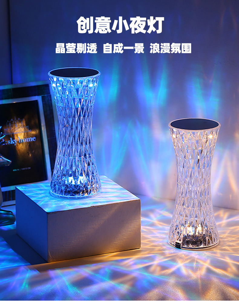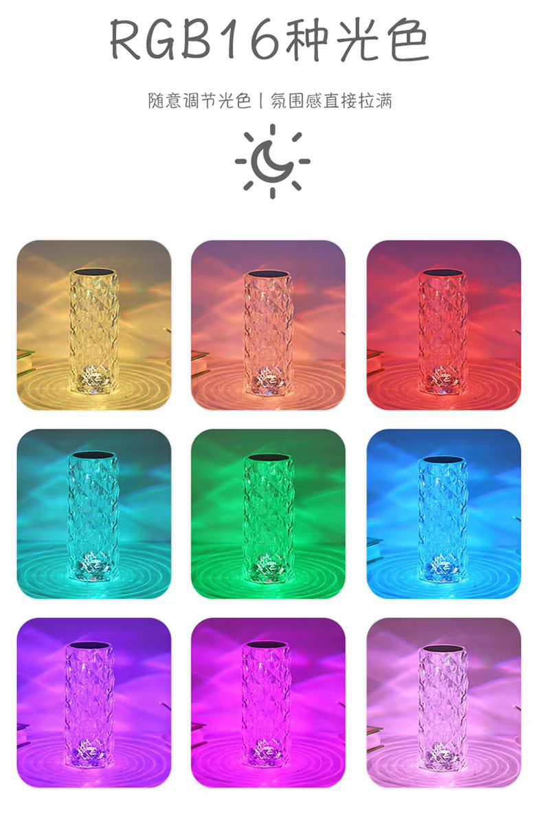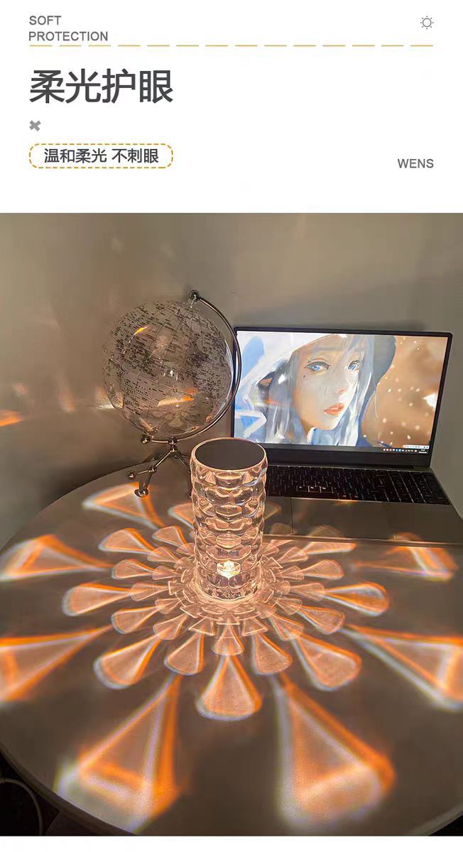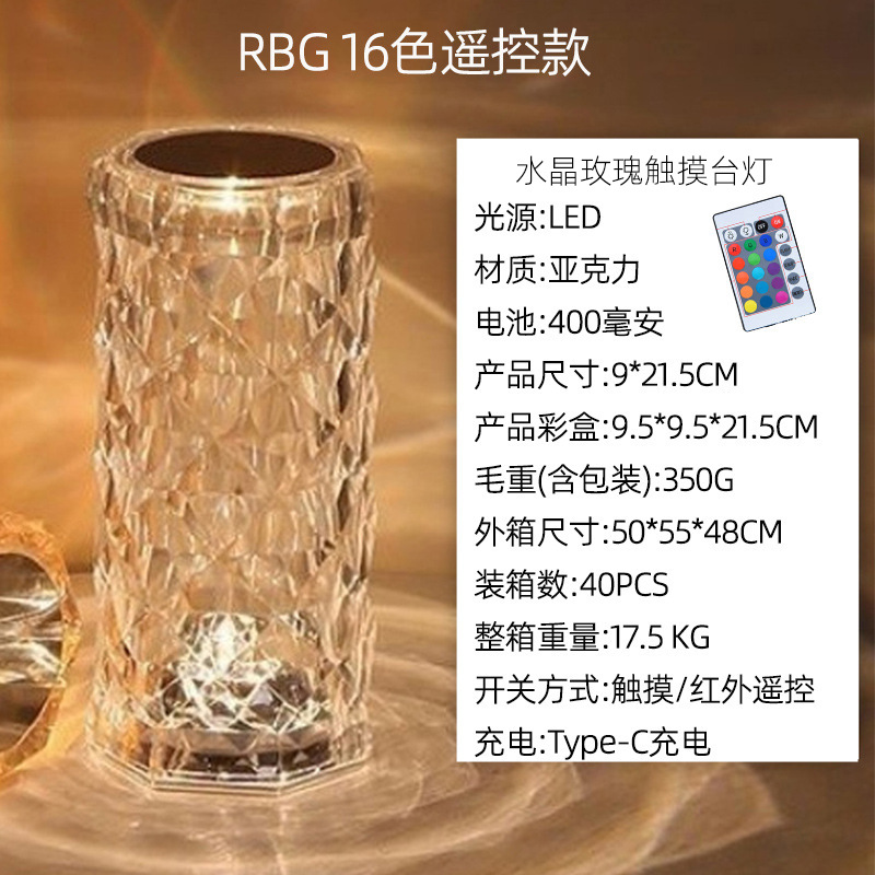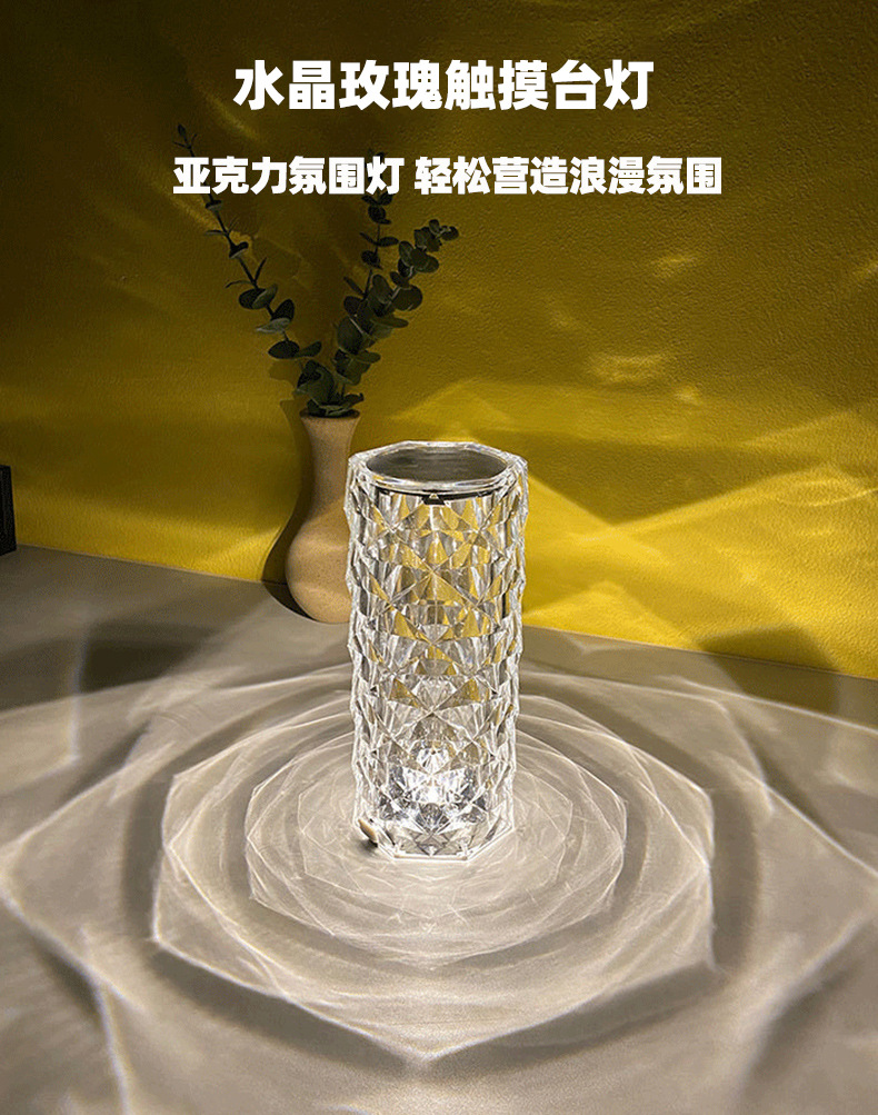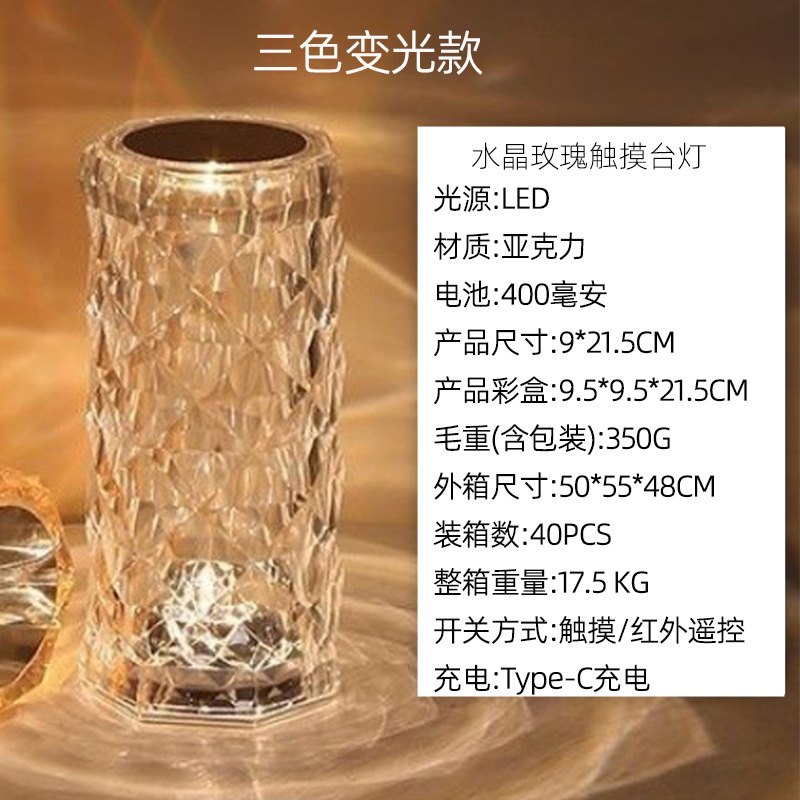 水晶玫瑰氛围台灯跨境民宿卧室餐厅网红浪漫可调光触摸充电装饰