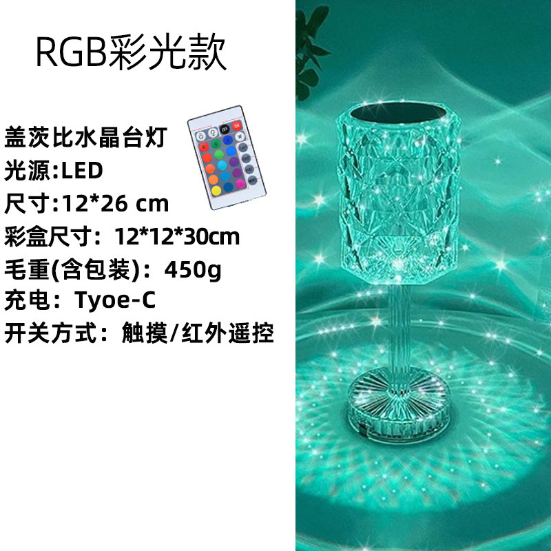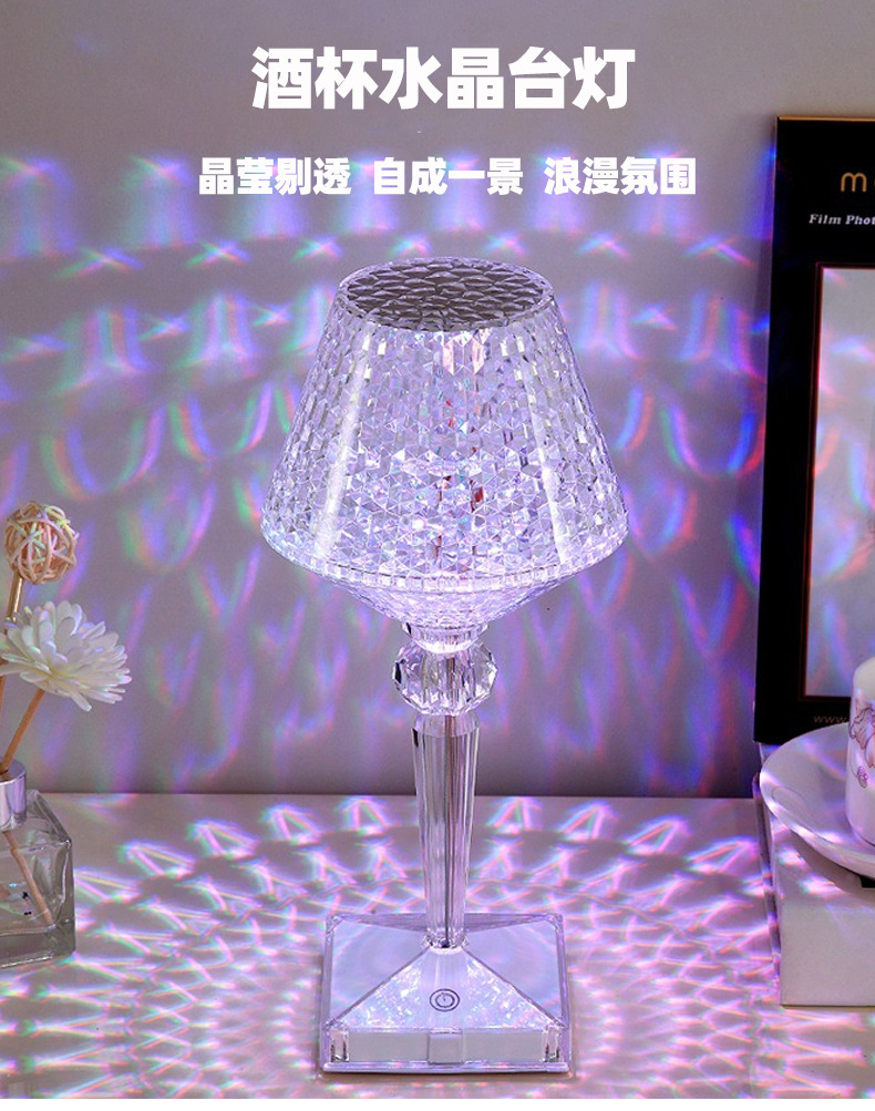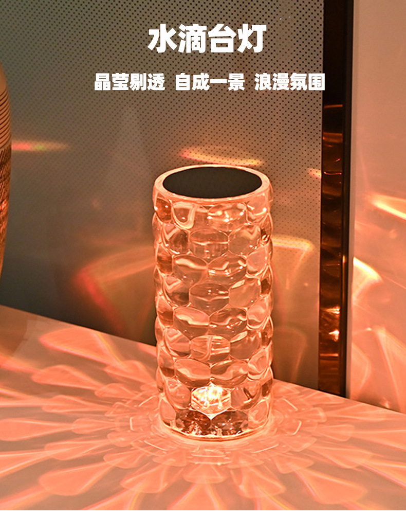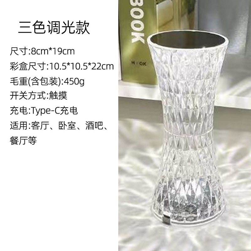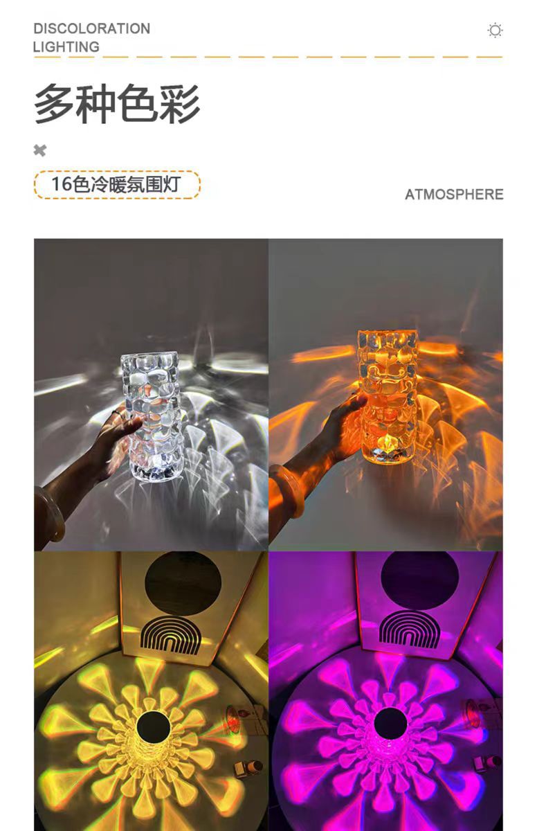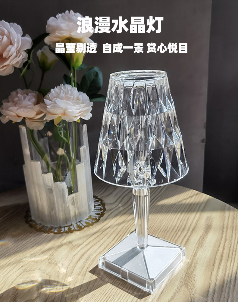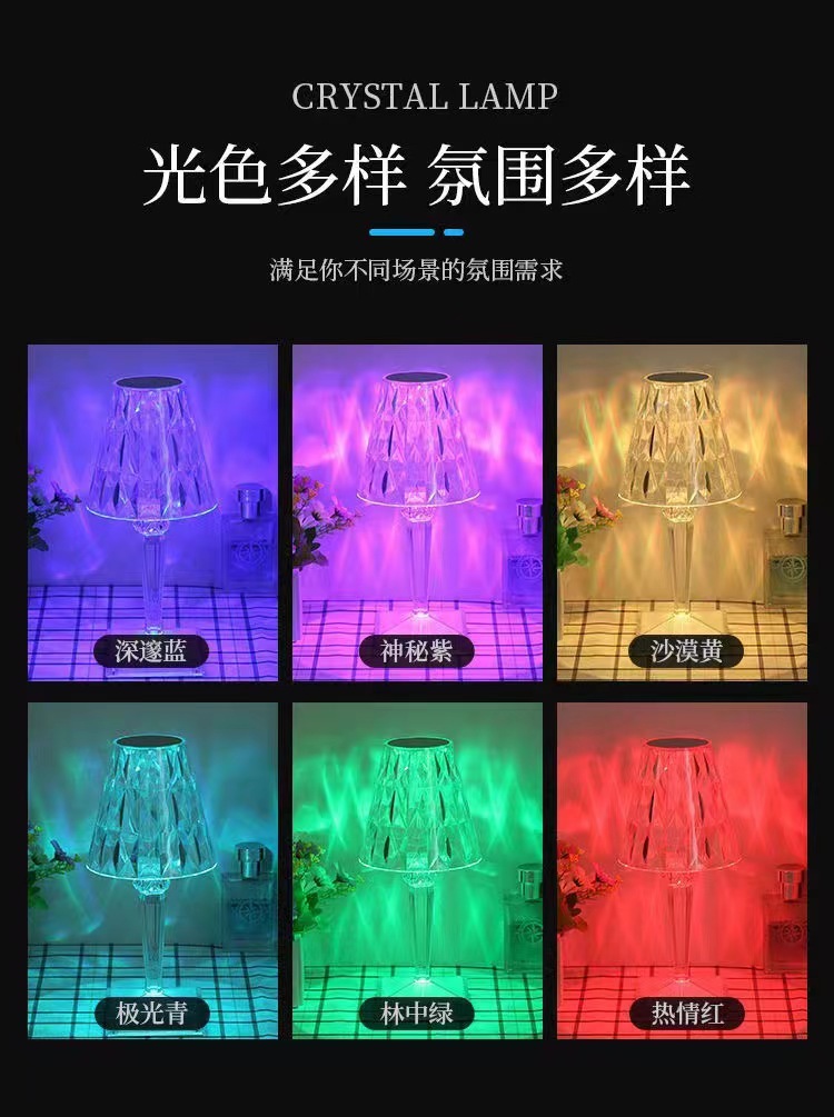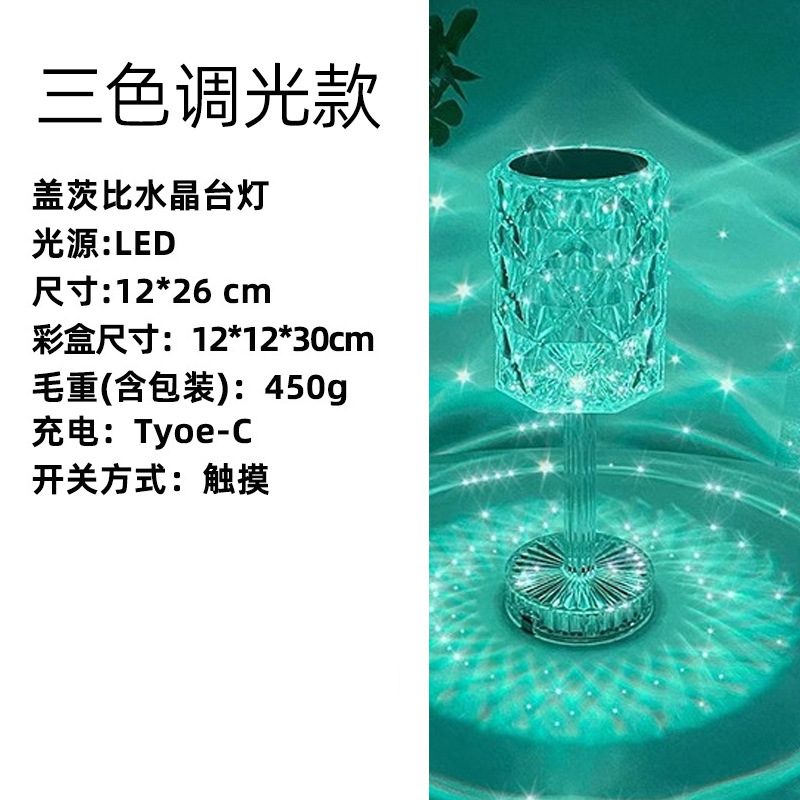 水晶玫瑰氛围台灯跨境民宿卧室餐厅网红浪漫可调光触摸充电装饰