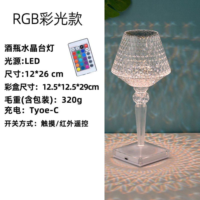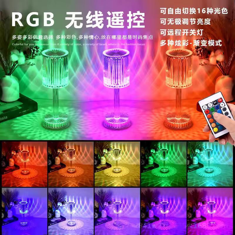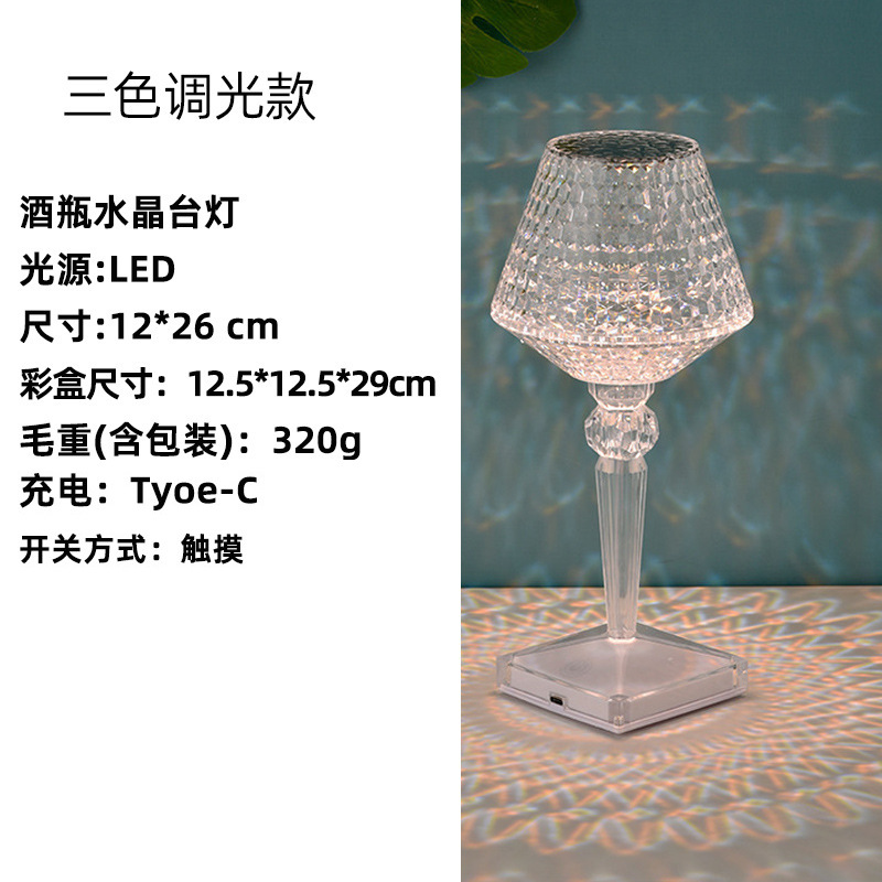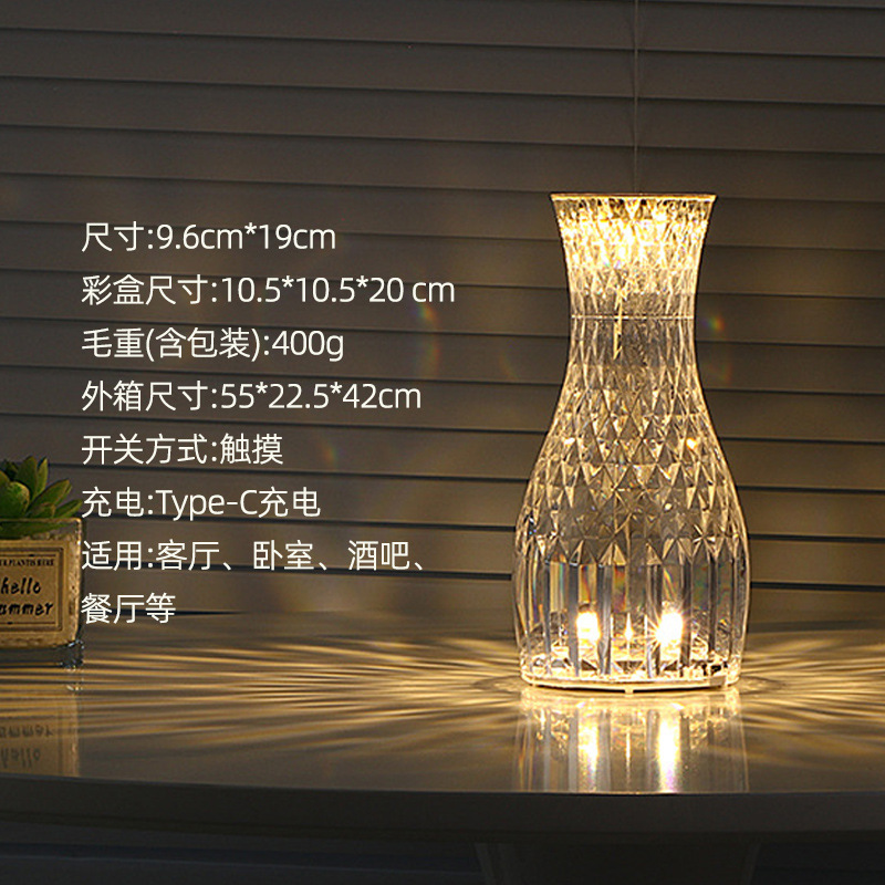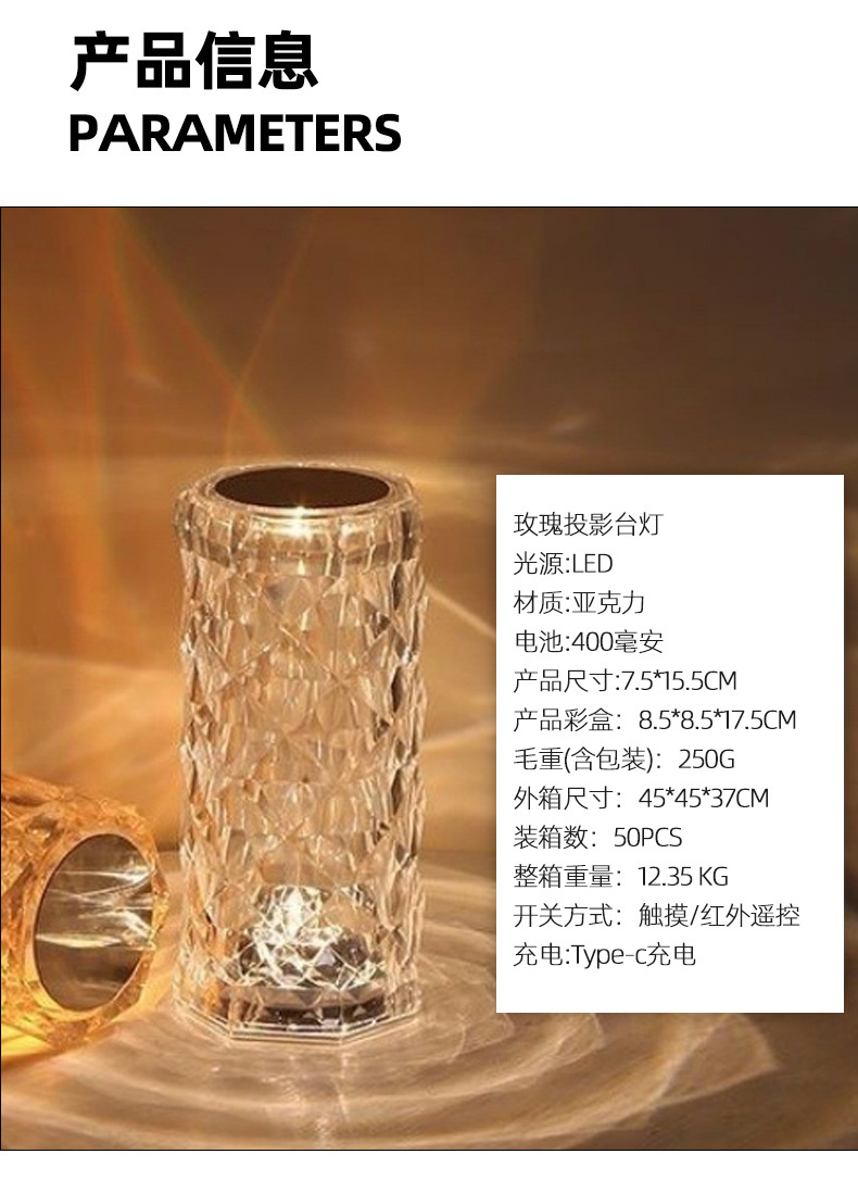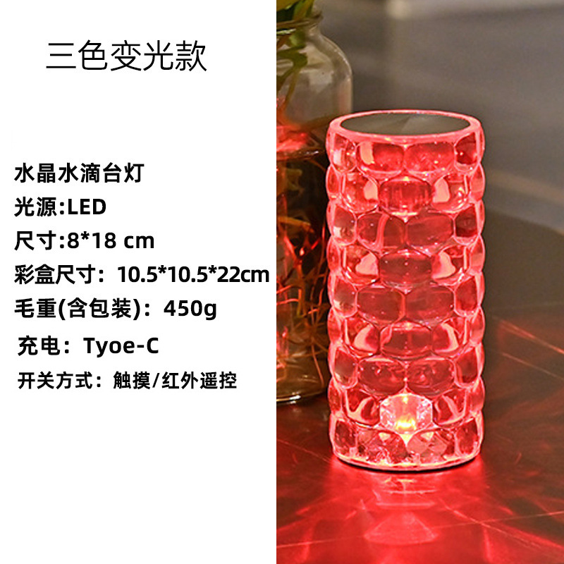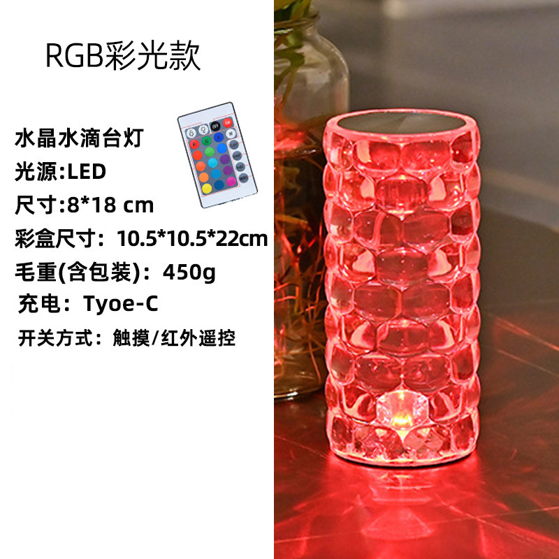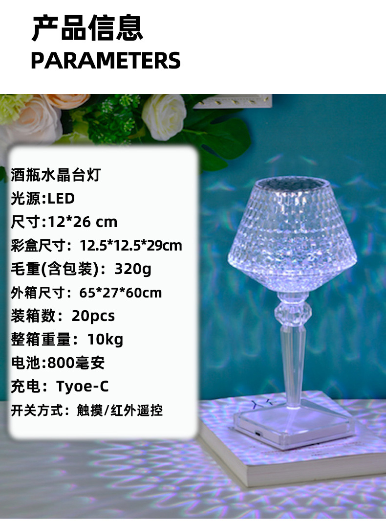 水晶玫瑰氛围台灯跨境民宿卧室餐厅网红浪漫可调光触摸充电装饰
