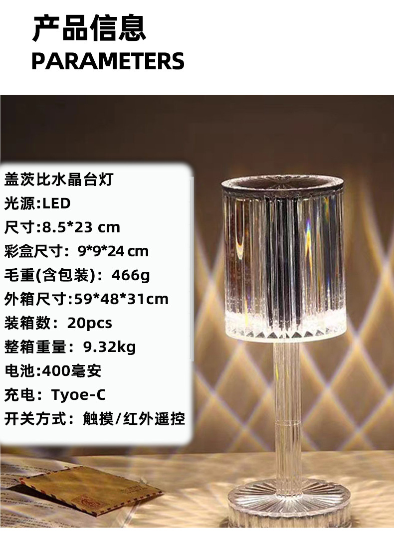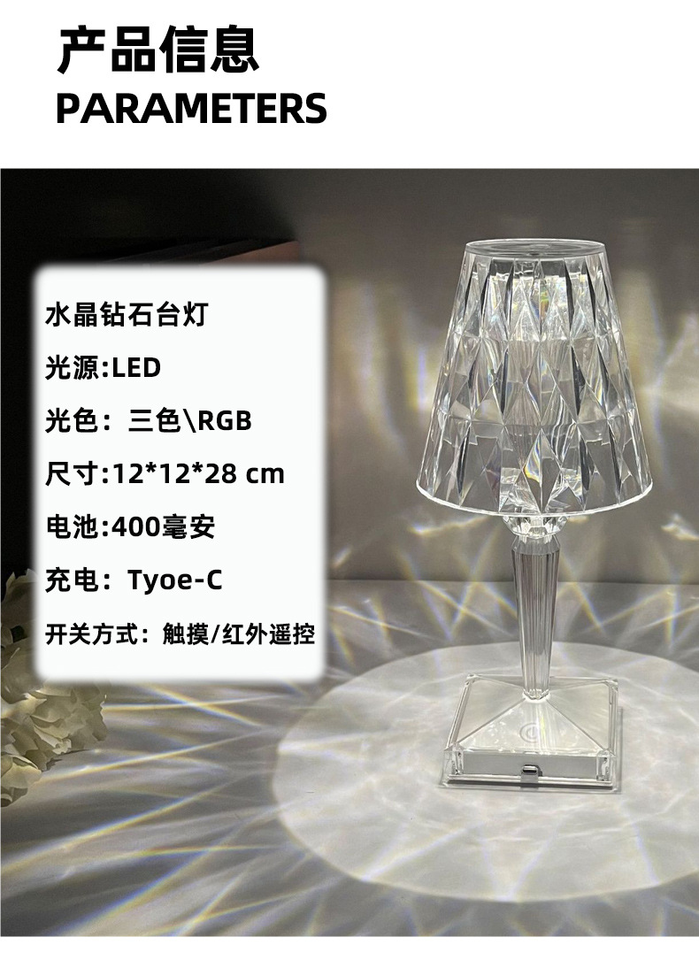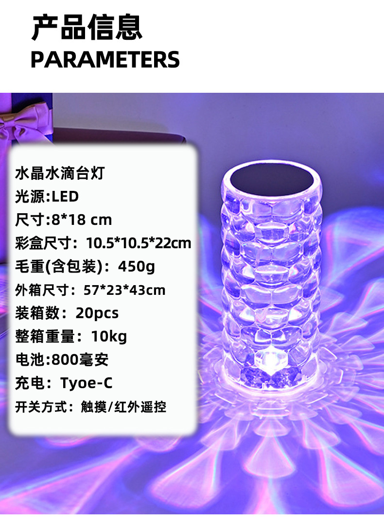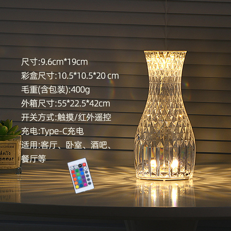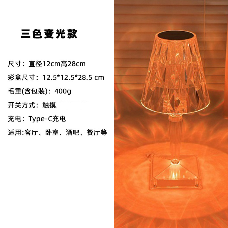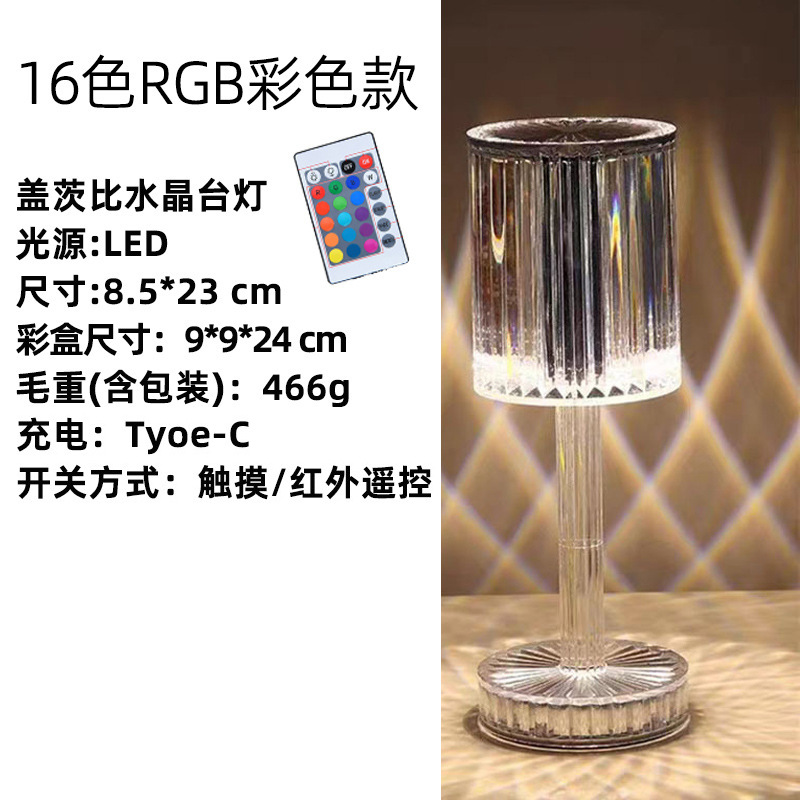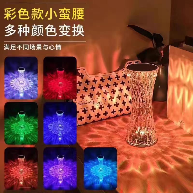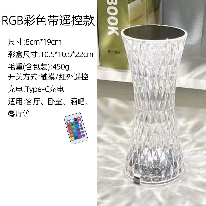 水晶玫瑰氛围台灯跨境民宿卧室餐厅网红浪漫可调光触摸充电装饰