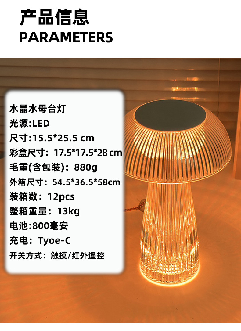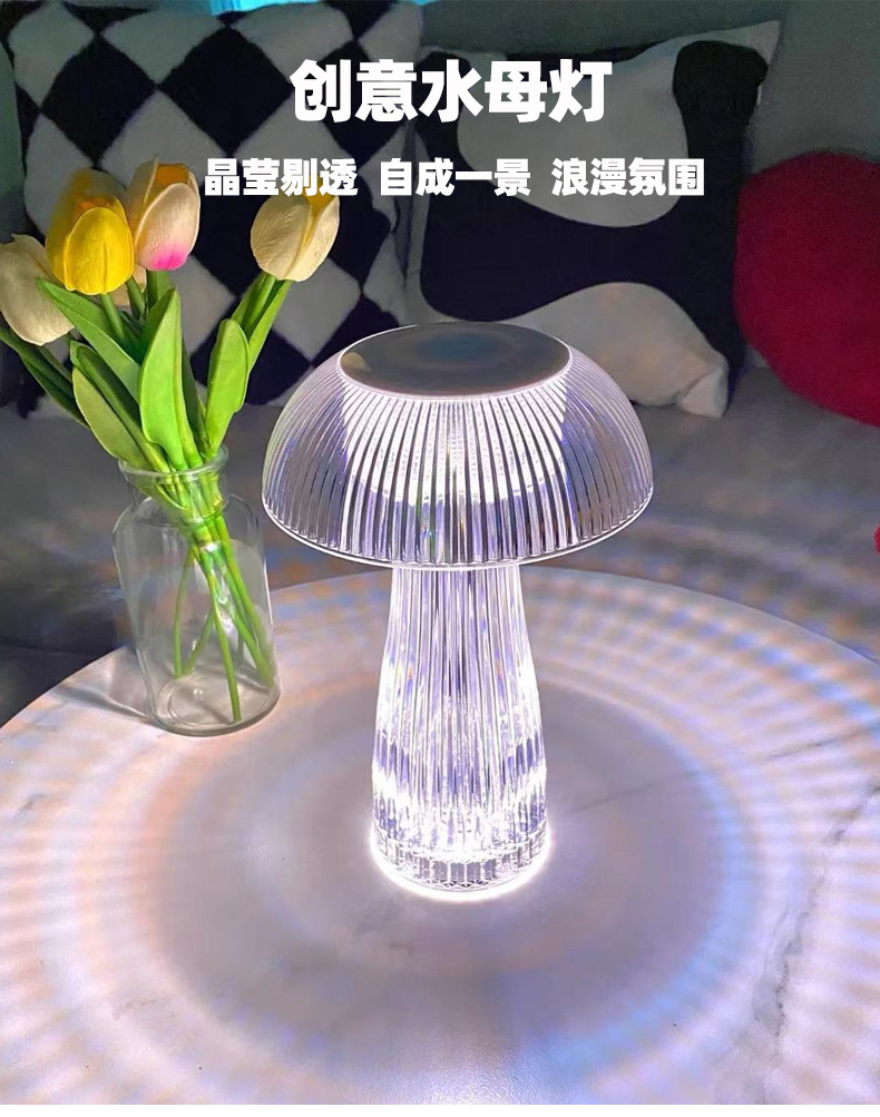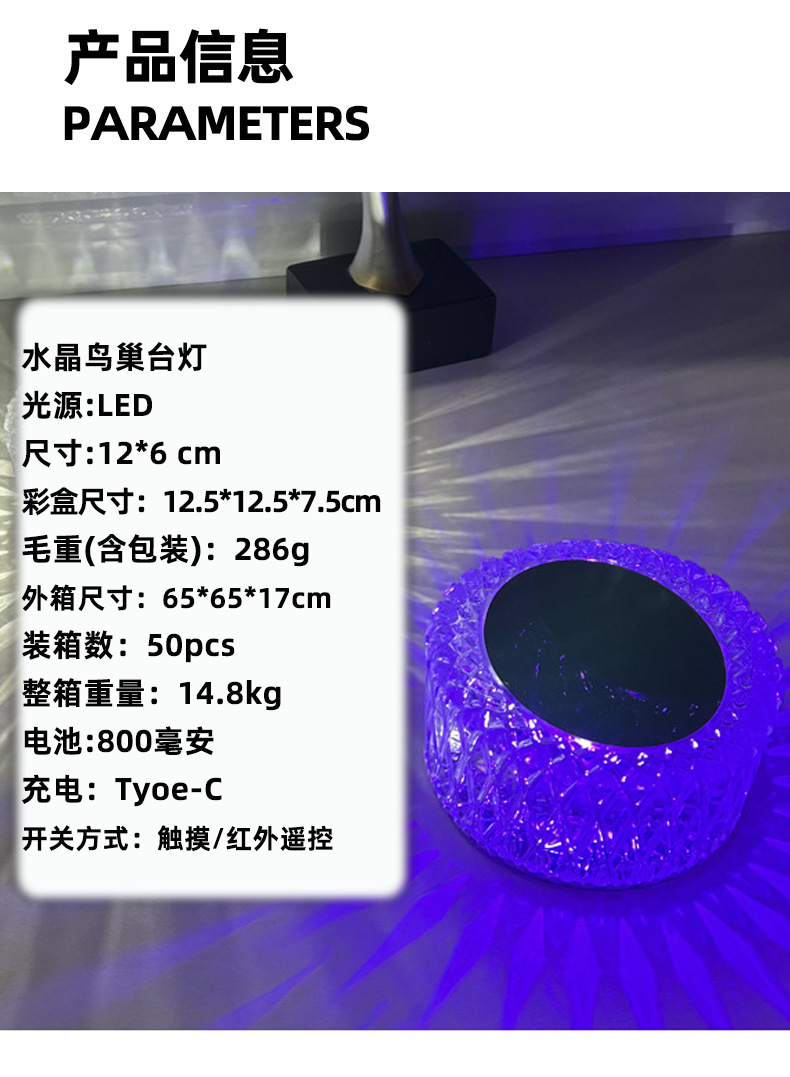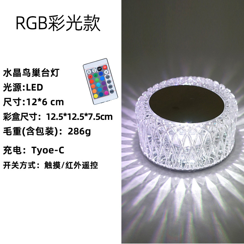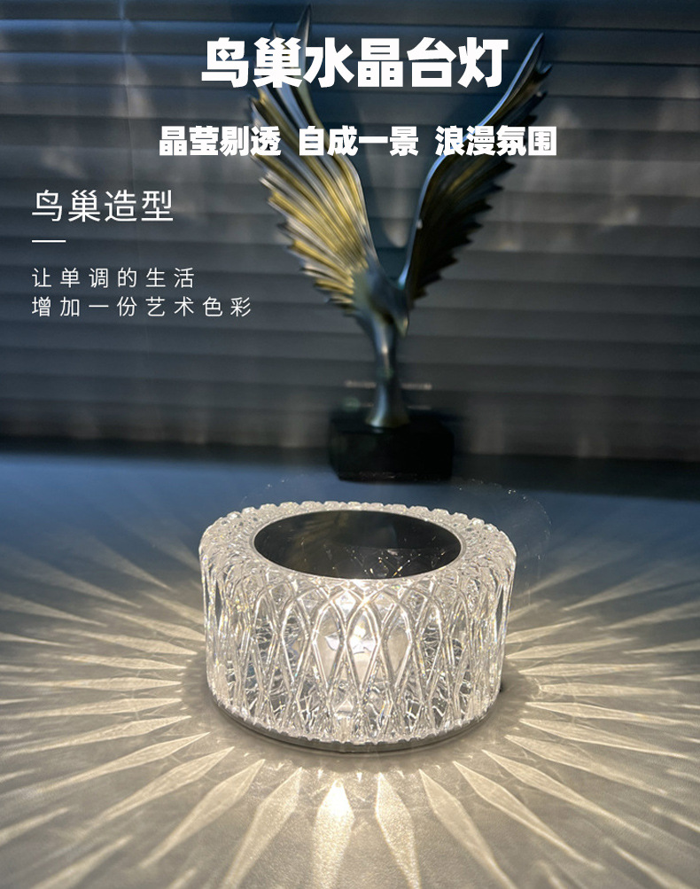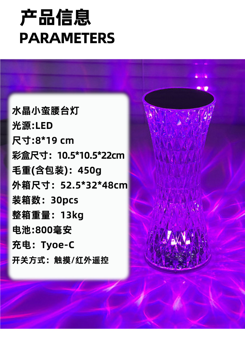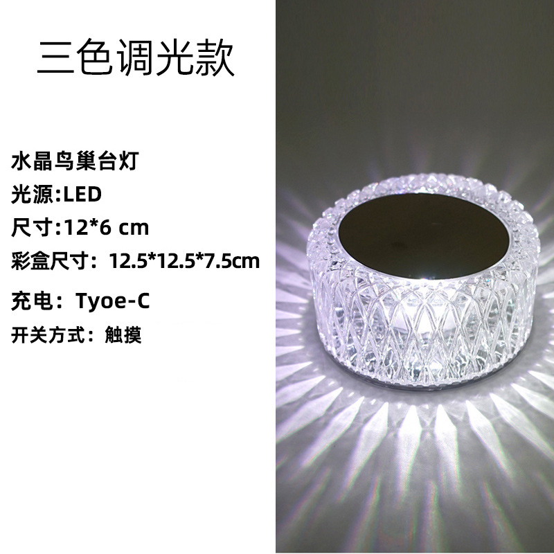 水晶玫瑰氛围台灯跨境民宿卧室餐厅网红浪漫可调光触摸充电装饰