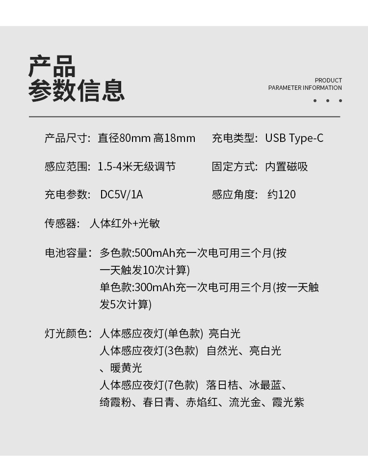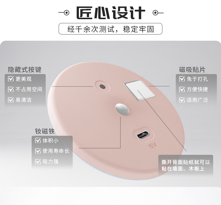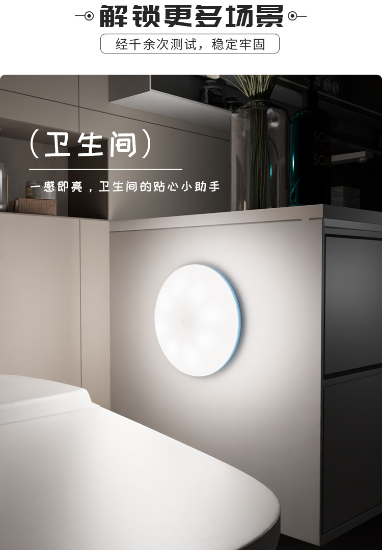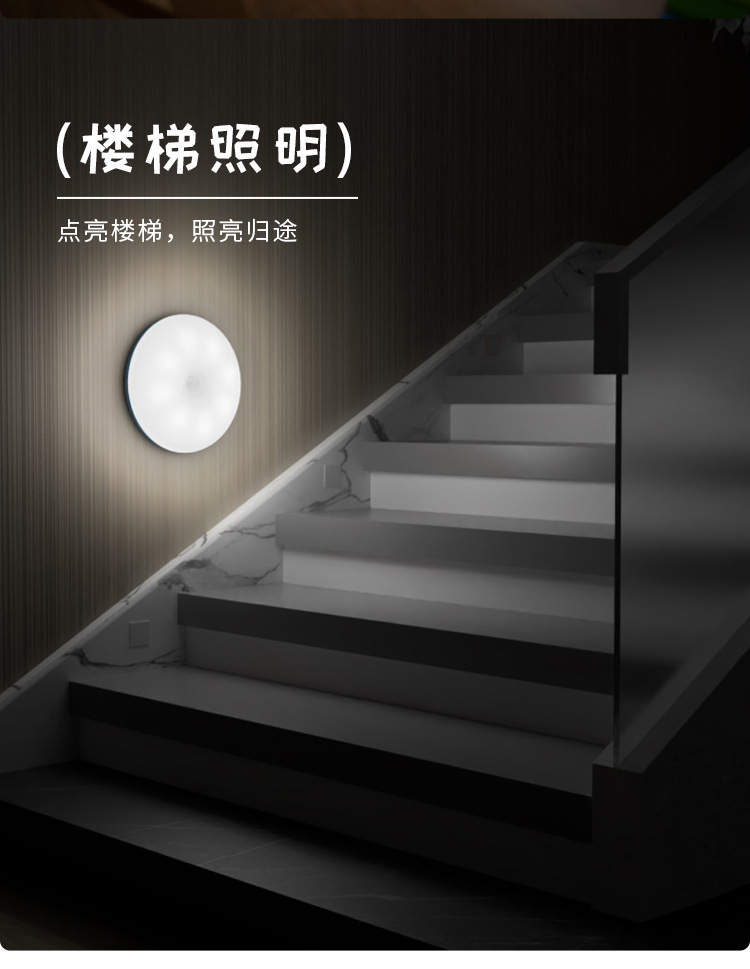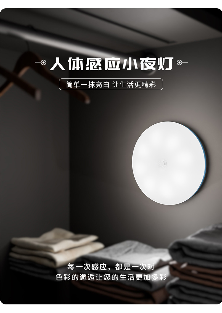 智能人体感应灯泡节能家无线自粘充电式小夜灯宿舍免充电床头灯