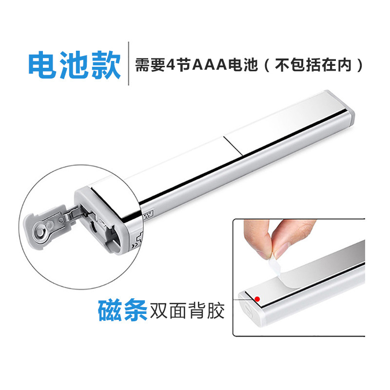 智能人体感应灯条USB电池充电LED橱柜灯衣柜灯无线光控led小夜灯