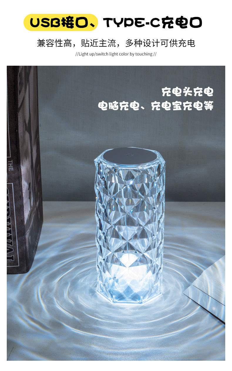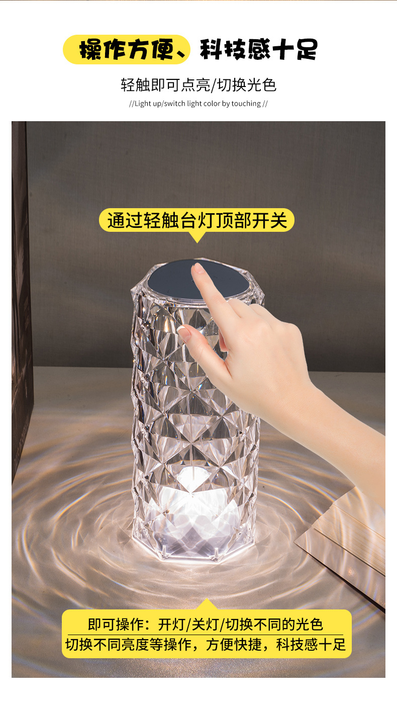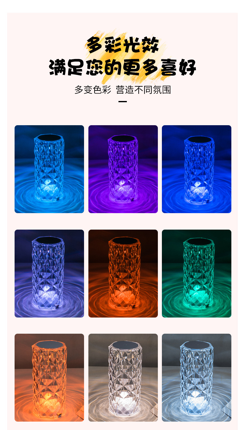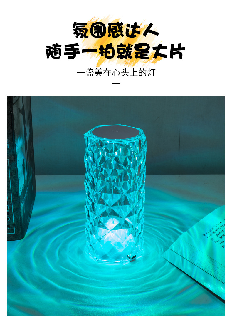 玫瑰水晶台灯跨境创意氛围灯卧室充电16色柔光网红灯浪漫情调花瓣