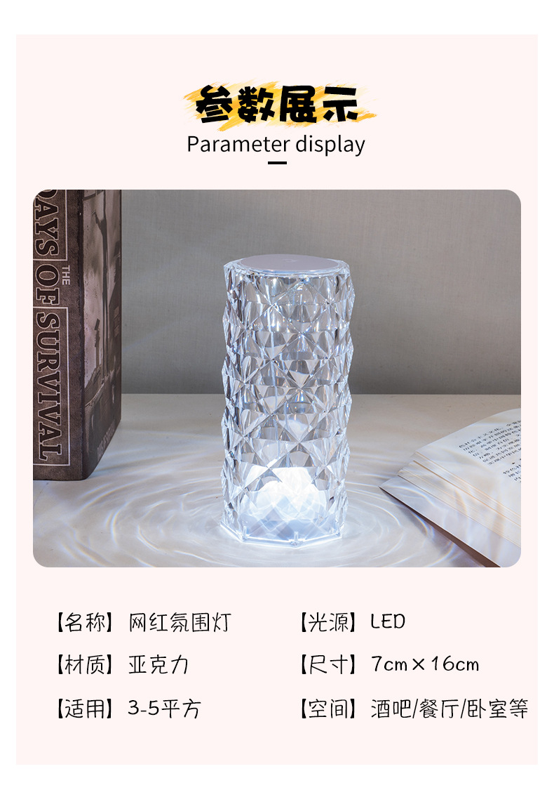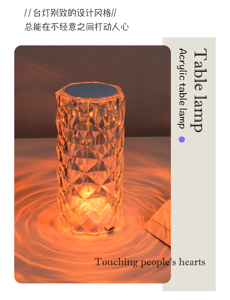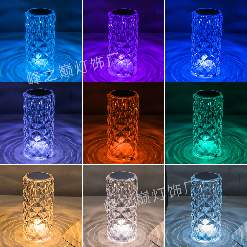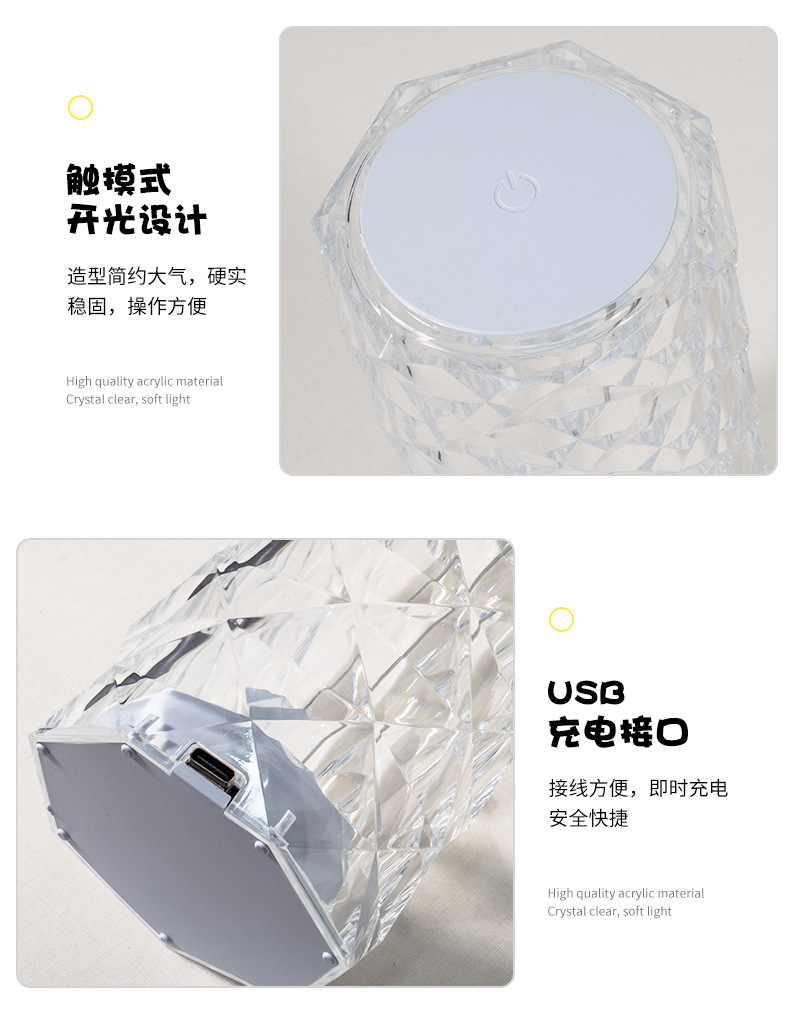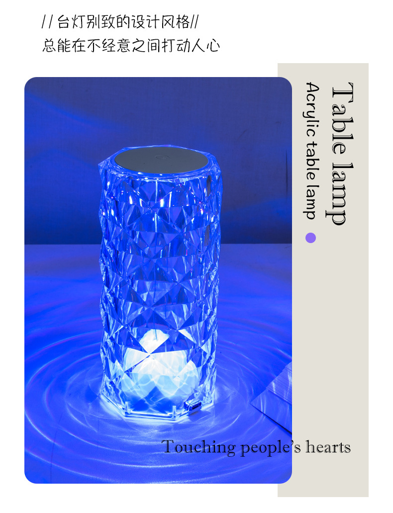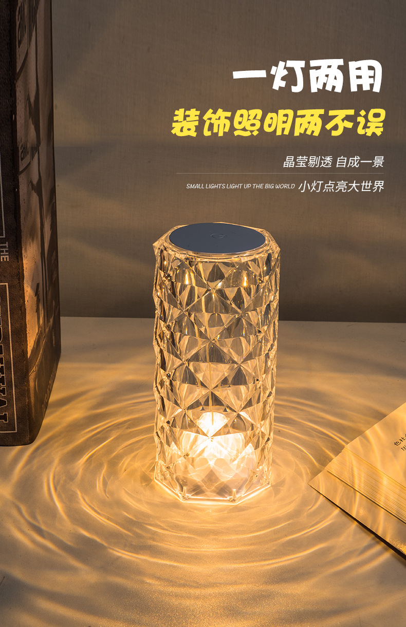 玫瑰水晶台灯跨境创意氛围灯卧室充电16色柔光网红灯浪漫情调花瓣
