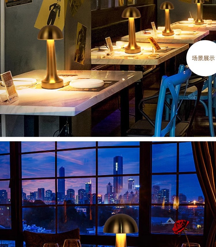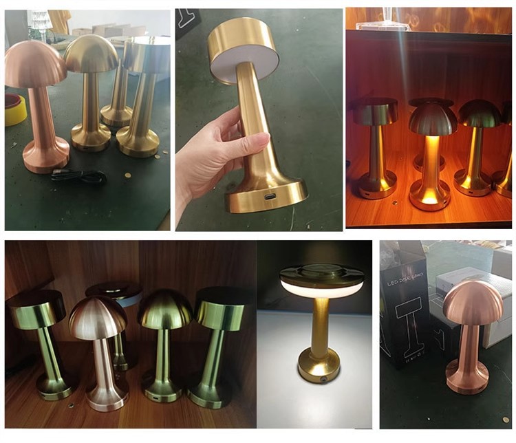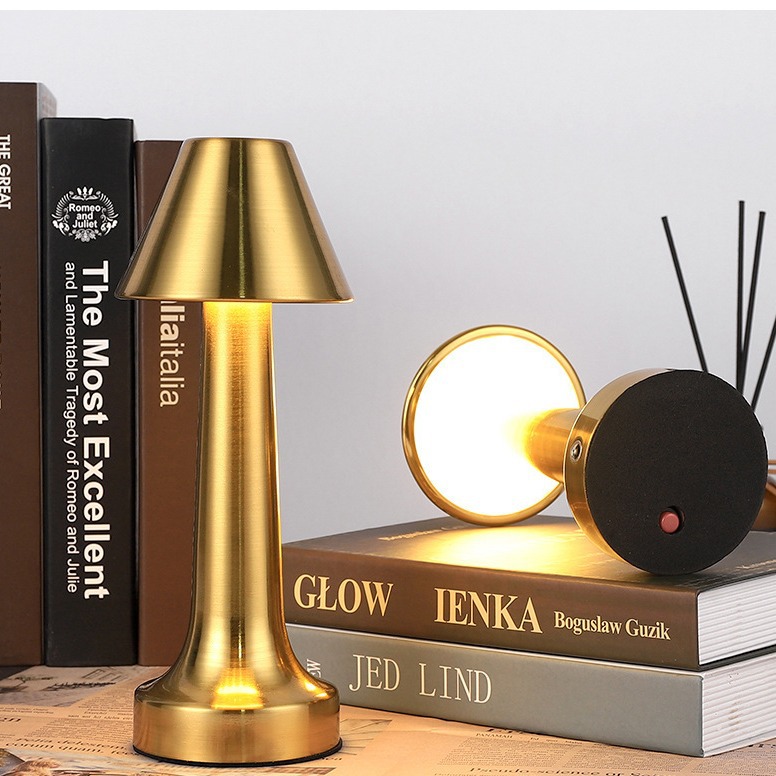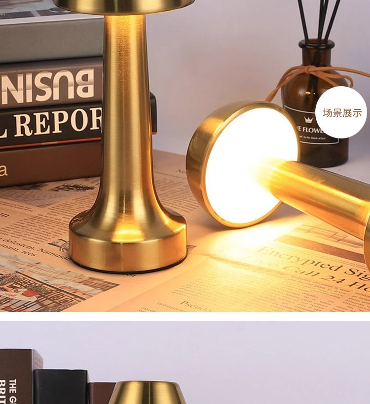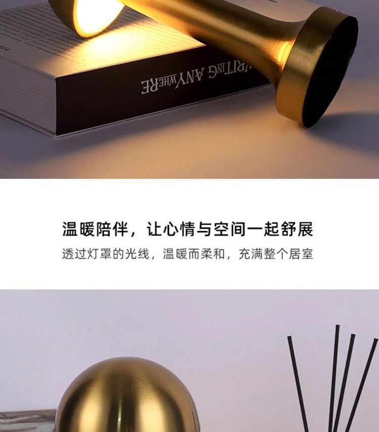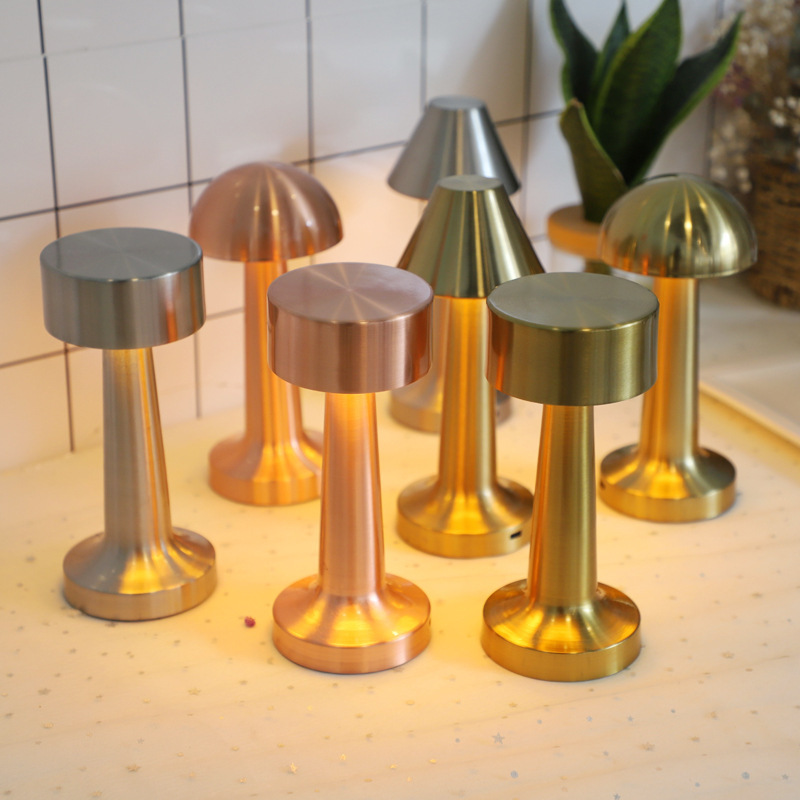 跨境北欧复古铜色书房蘑菇充电台灯哑铃高端餐厅床头便携氛围灯